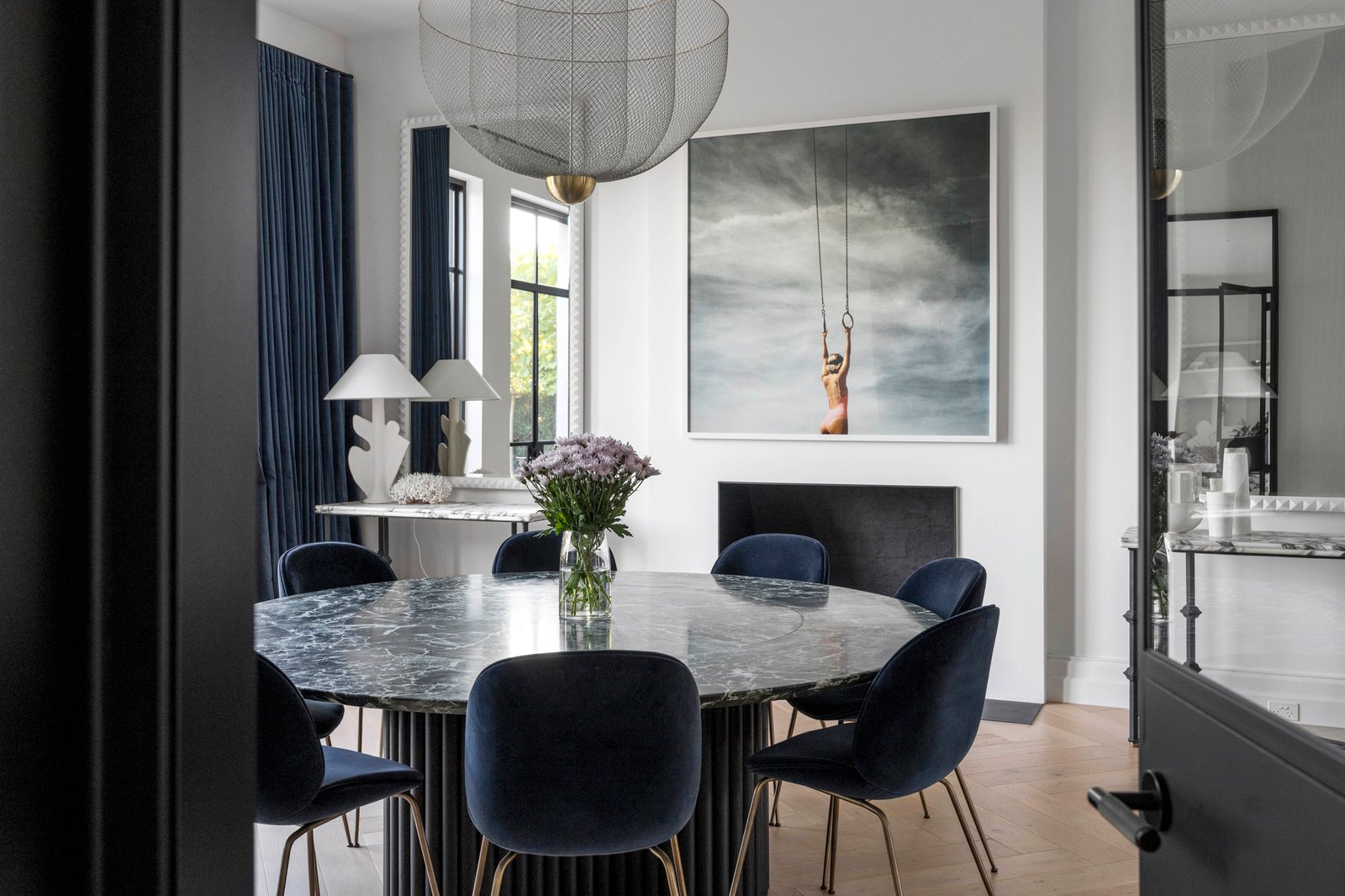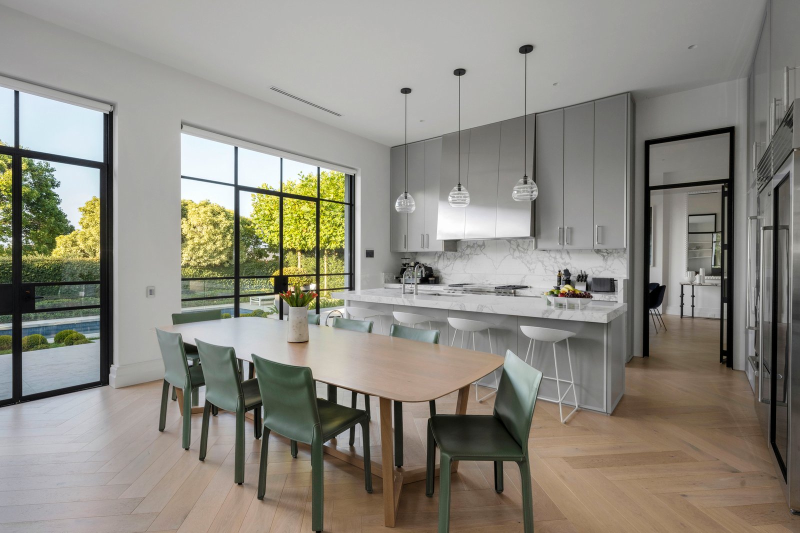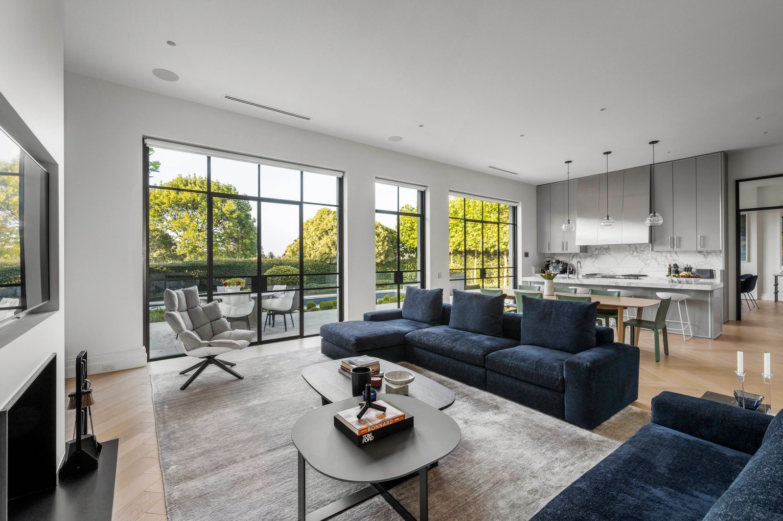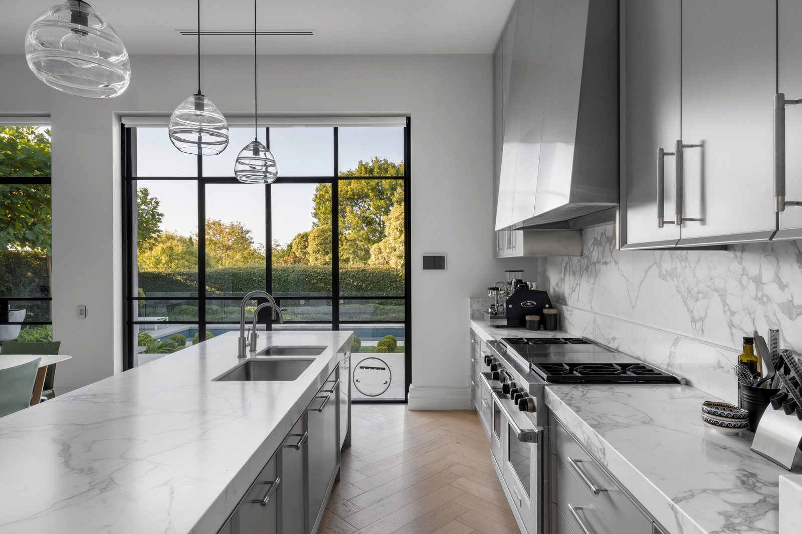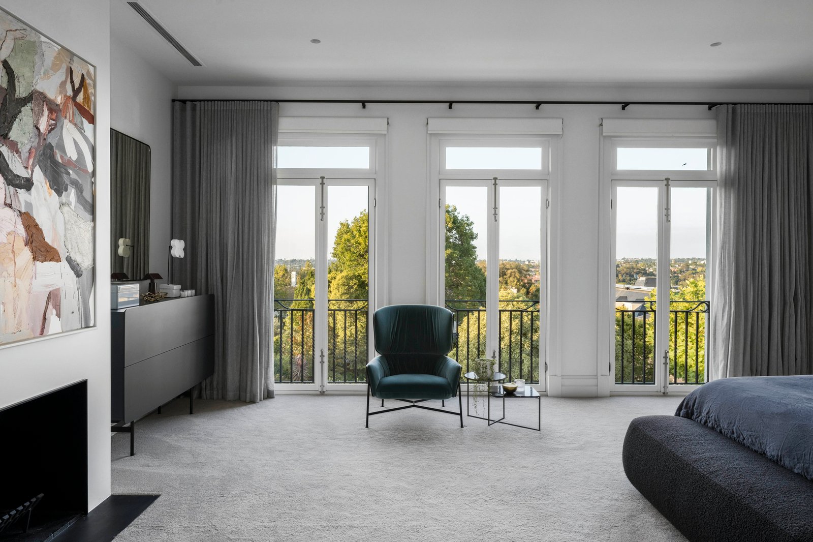 An uncompromising level of finish throughout includes bespoke joinery, imported stone, oak parquetry, black steel framed doors and 4m ceilings. Creating an unforgettable first impression, the voluminous reception hall beneath a soaring elliptical sky-lit void evokes a sense of occasion as it flows through to generous executive study with gas fire, a palatial sitting room with open fire and the grand formal dining room with gas log fire. The spectacular open plan living and dining room features an open fire and deluxe premium kitchen appointed with Wolf ovens, Calacatta marble benches and splash back and integrated Sub-zero fridge/freezer and wine fridge. A series of black steel framed doors open the living areas out to a broad stone terrace with built in BBQ and the picturesque, entirely private north-facing garden with a heated lap pool. Beneath a remote awning, it is a sensational venue for al fresco dining and entertaining while enjoying the expansive views over Toorak valley. A sweeping staircase leads up to the opulent main bedroom suite with open fire, built in robes, lavish dressing room, sumptuous marble en suite and glorious views including city glimpses. The three additional king-sized bedrooms are all appointed with built in robes, desks and marble en suites. On the basement level there is a fabulous, fitted home theatre room, numerous large storerooms and a 5-car garage with dedicated gym area.