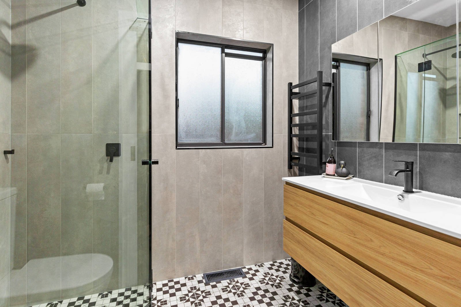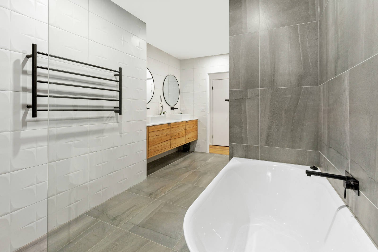 There are 3 good-sized bedrooms, the master zoned at the front of the home with both built-in robes & walk-in robe and boasting a gorgeous ensuite with stunning contemporary tiling & heated towel rail. The huge skylit main bathroom is equally impressive with twin vanities, designer tub and double walk-in shower, with a separate powder room.