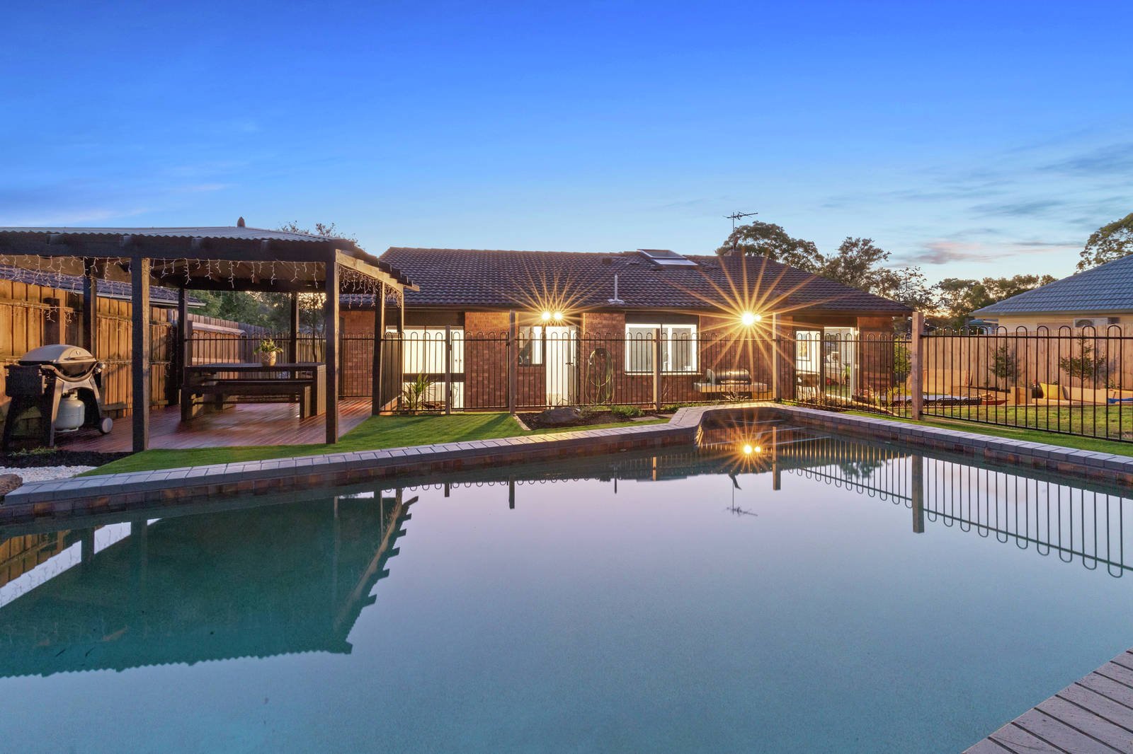 Outside there's a poolside gazebo for family gatherings or casual summer evening BBQs after a day at the beach, new fencing and synthetic grass around the pool, a garden shed and gates to keep your pets safe and secure in the backyard.