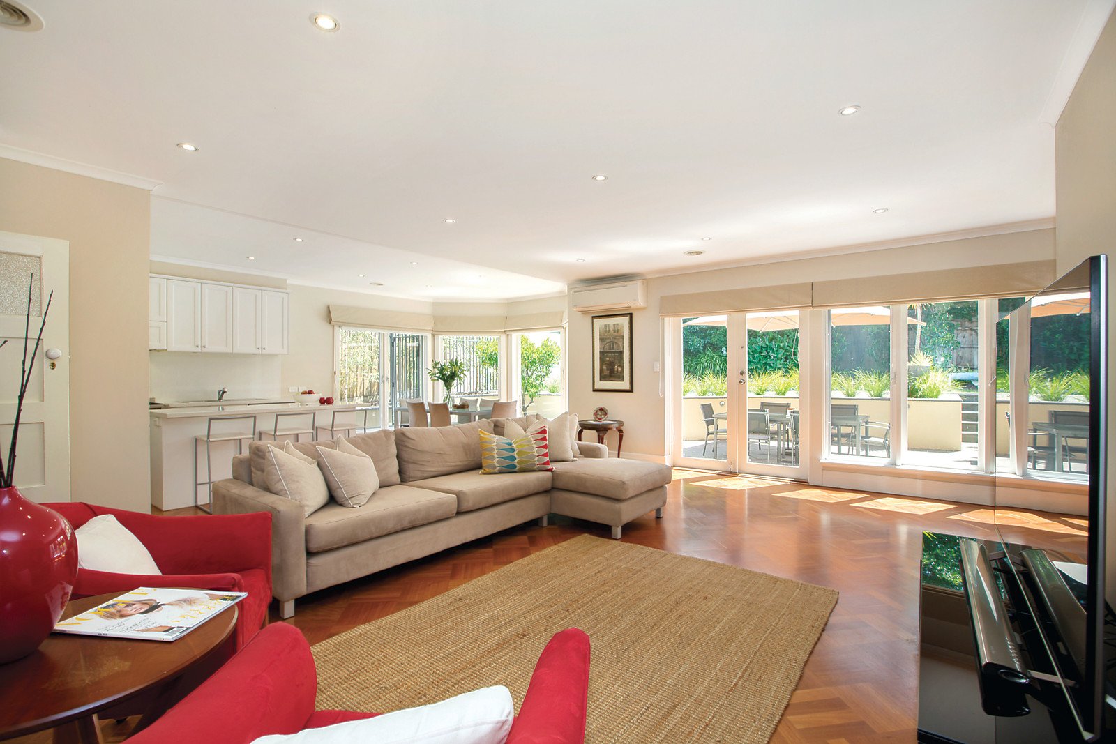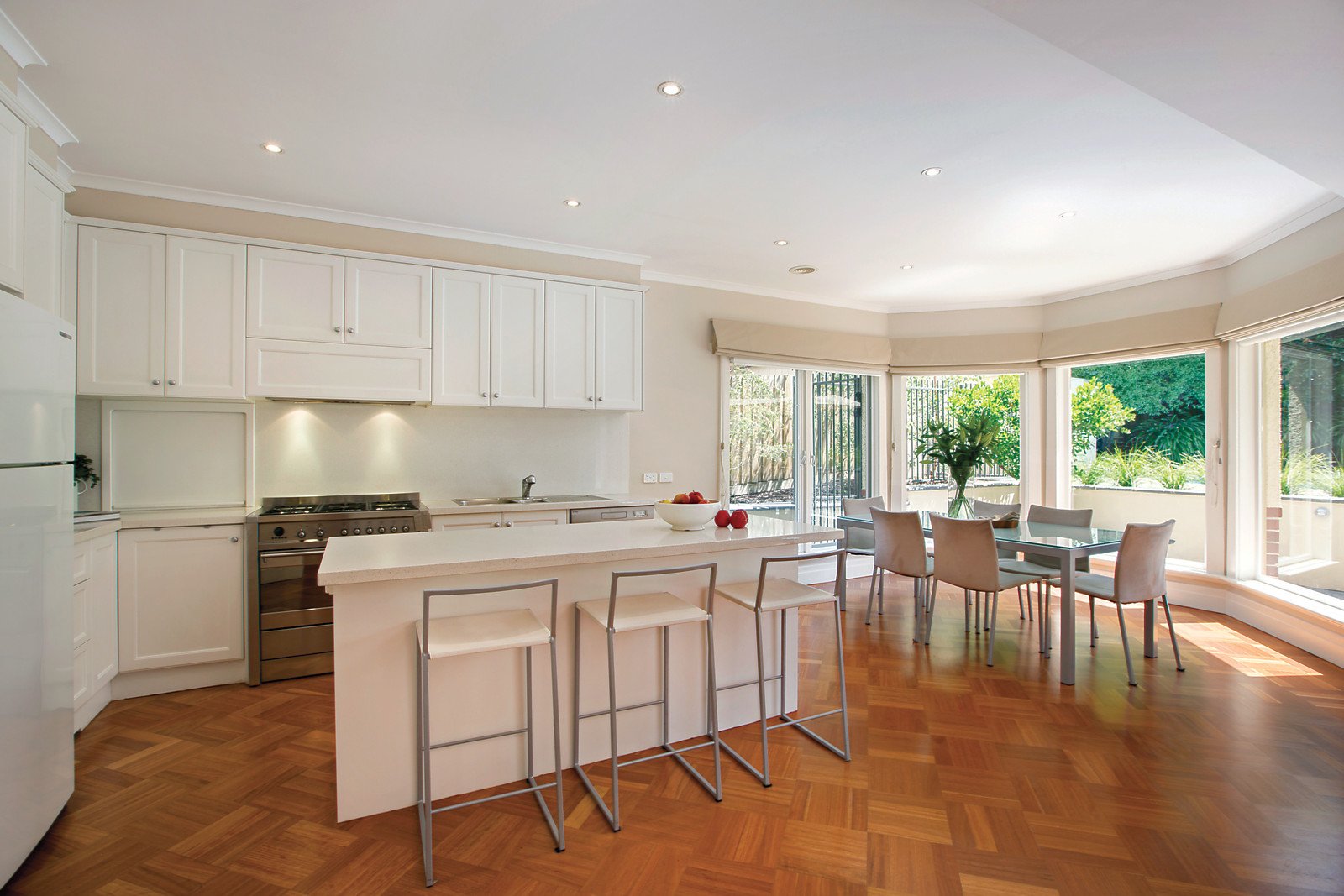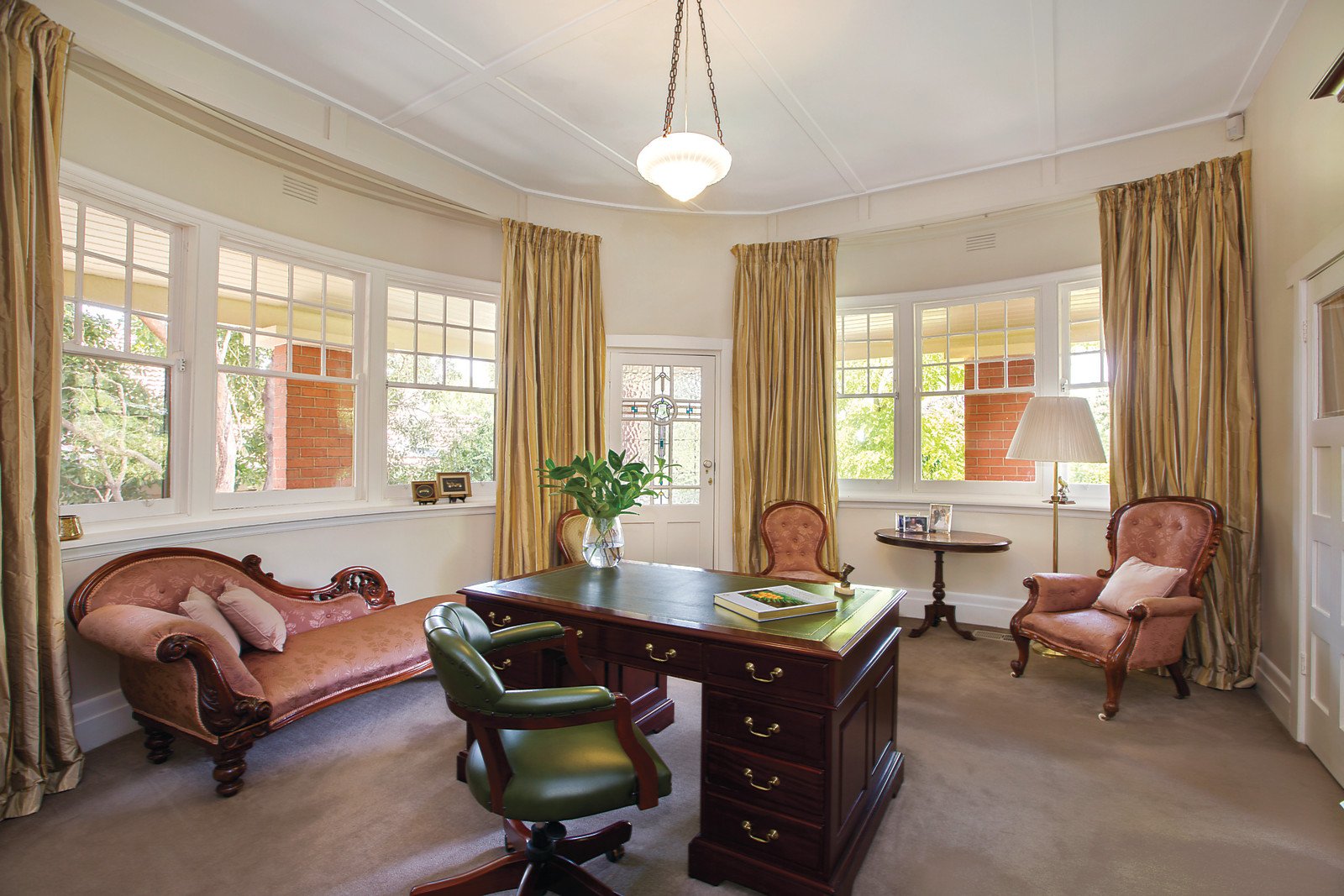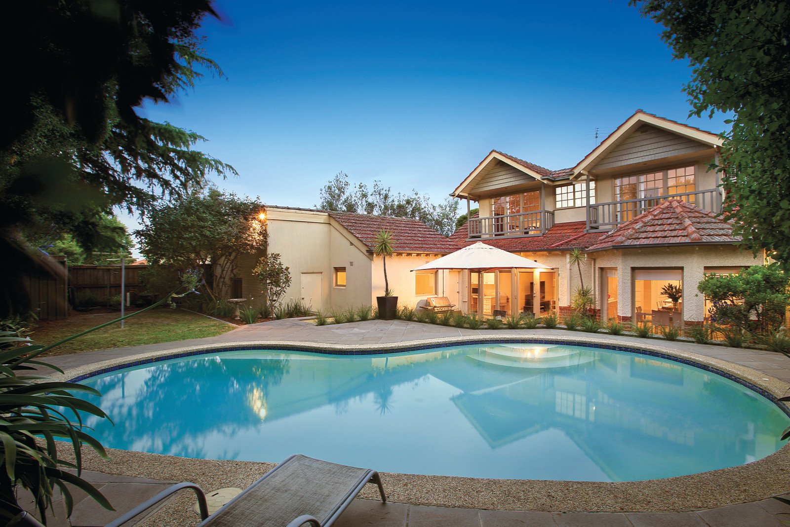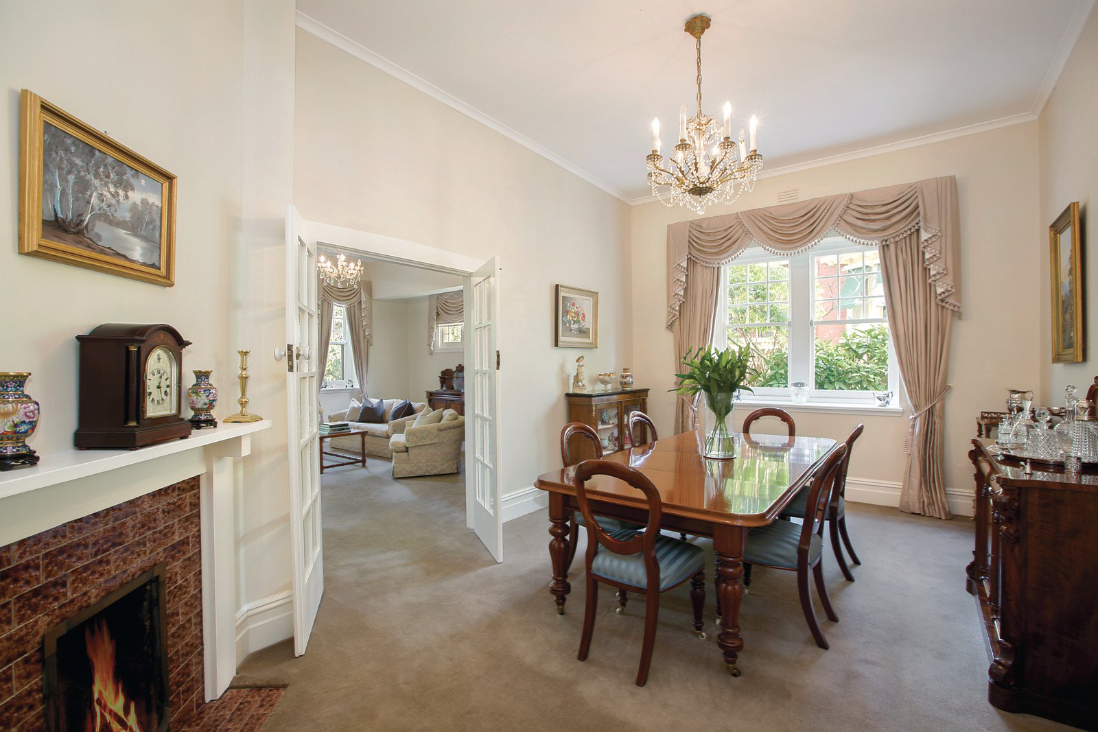 Commanding an elevated position framed by an inviting return verandah, the welcoming reception hall introduces a gorgeous sitting room with marble OFP, formal dining room with OFP and a glorious study featuring adjoining bay windows. The high ceilings and generous proportions continue through the expansive living and dining room with fitted study nook and gourmet stone and Smeg kitchen. The living areas open out to a lush private northwest facing garden with solar heated pool. The main bedroom with generous en-suite and built in robes enjoys downstairs seclusion while a sensational children's zone above comprises three/four additional fitted bedrooms, a large retreat, west-facing balcony and stylish central bathroom.