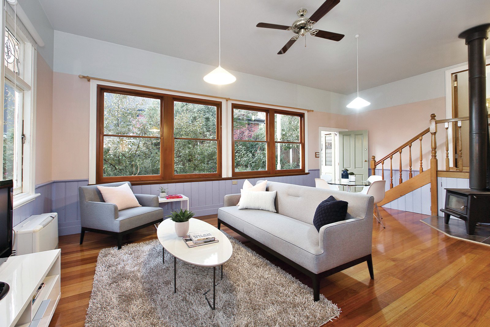 Superbly oriented to maximize northern light, the generously proportioned living and dining room featuring timber floors and a wood fire heater and served by a well-appointed country style kitchen, opens to the lush north-oriented private garden. Three double bedrooms are complemented by a separate living room or 4th bedroom, a study and two bright bathrooms.