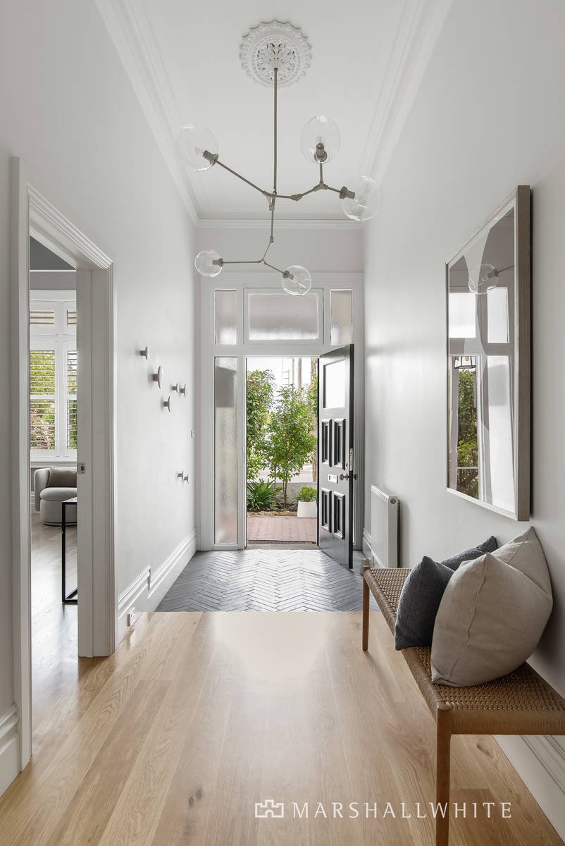 Showcasing a captivating blend of Edwardian elegance and inspired contemporary style, this irresistibly appealing single level residence is peacefully positioned within a leafy streetscape just a short walk to Malvern station, Malvern Central, Caulfield Park, trams and schools.