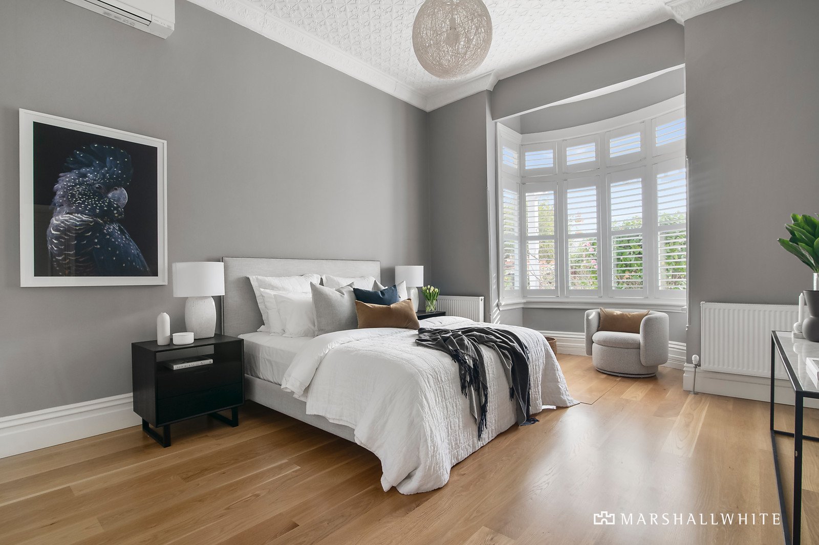Behind a glorious exterior profile, traditional high ceilings add a wonderful sense of scale to the wide entrance hall where polished timber floors provide contemporary refinement. The graciously proportioned living room with a fireplace and exquisite bay window is set beneath a magnificent, vaulted ceiling. The gourmet kitchen appointed with 90cm Smeg oven and stone benches and the light-filled dining area with fireplace open to a sunny entertaining deck and private garden. The beautiful main bedroom boasting pressed metal ceiling, a bay window and built in robe is accompanied by two additional double bedrooms with built in robes and a stunning designer bathroom.