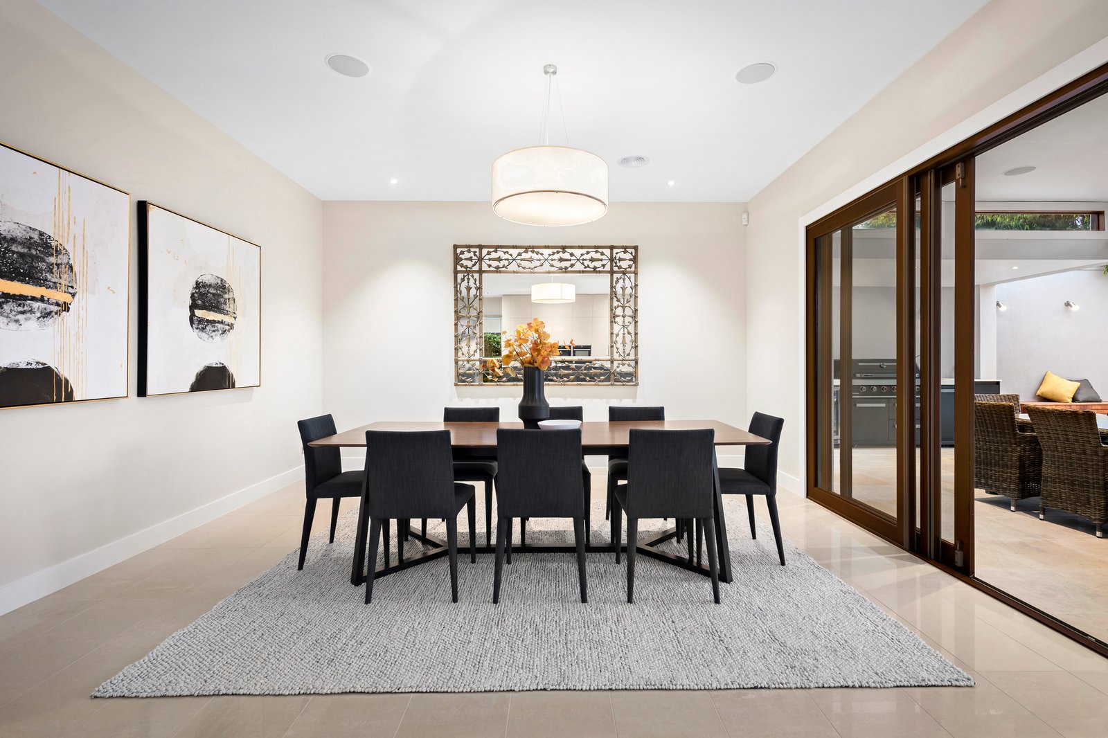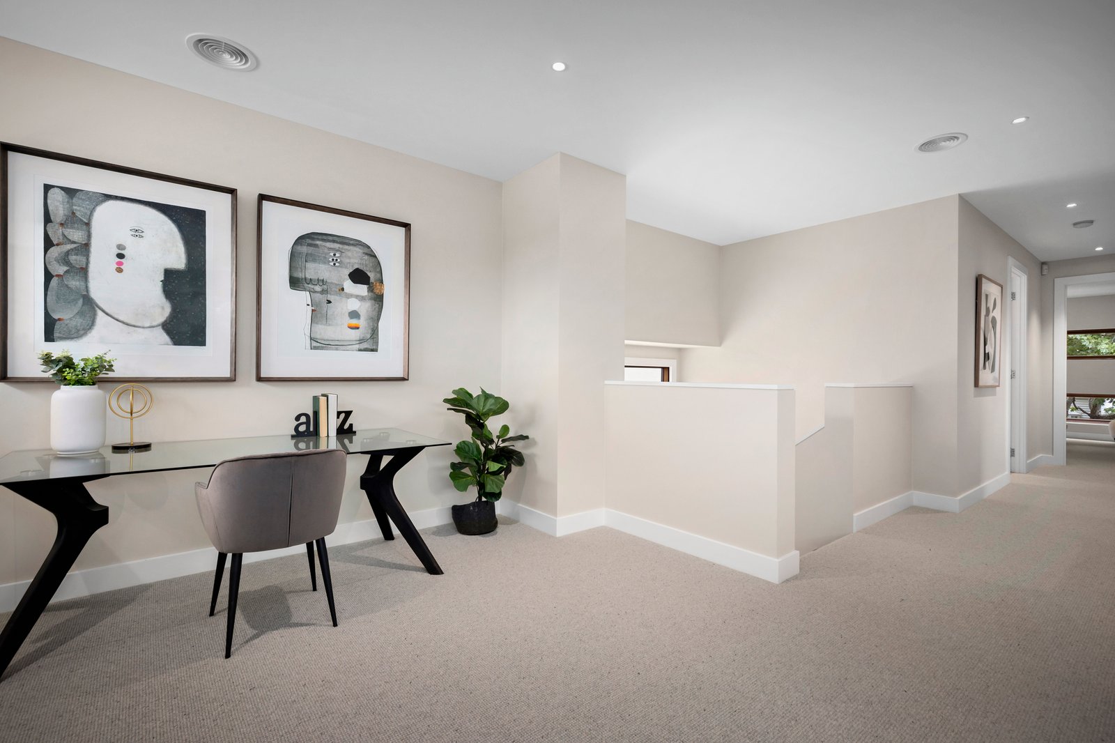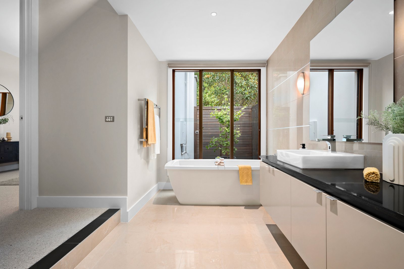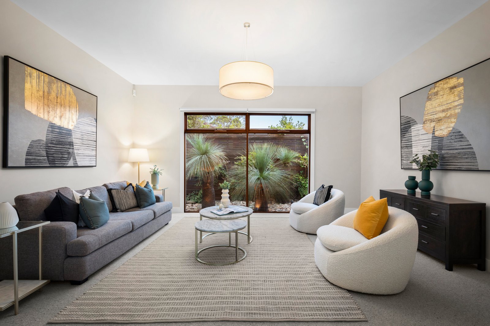 The home's majestic, light-filled dimensions are immediately apparent with an oversized glass entry door opening to an extra-wide entrance hall resplendent with gleaming floor tiles that flow through to the expansive open plan indoor/outdoor living and dining zone. A recent, full rejuvenation including fresh paintwork and new wool loop pile carpets in the bedrooms, endorse the luxury element, while the floorplan is designed for contemporary family liveability. The luxe ground-level master suite has an opulent split-level bathroom with a free-standing tub set in front of floor-to-ceiling windows looking out upon a private courtyard garden and a large walk-in dressing room/robe. With internal cavity sliding doors allowing for versatility, a large second living space with a picture window framing a sculptural outlook of well-established West Australian Grass Trees could double as a home office.