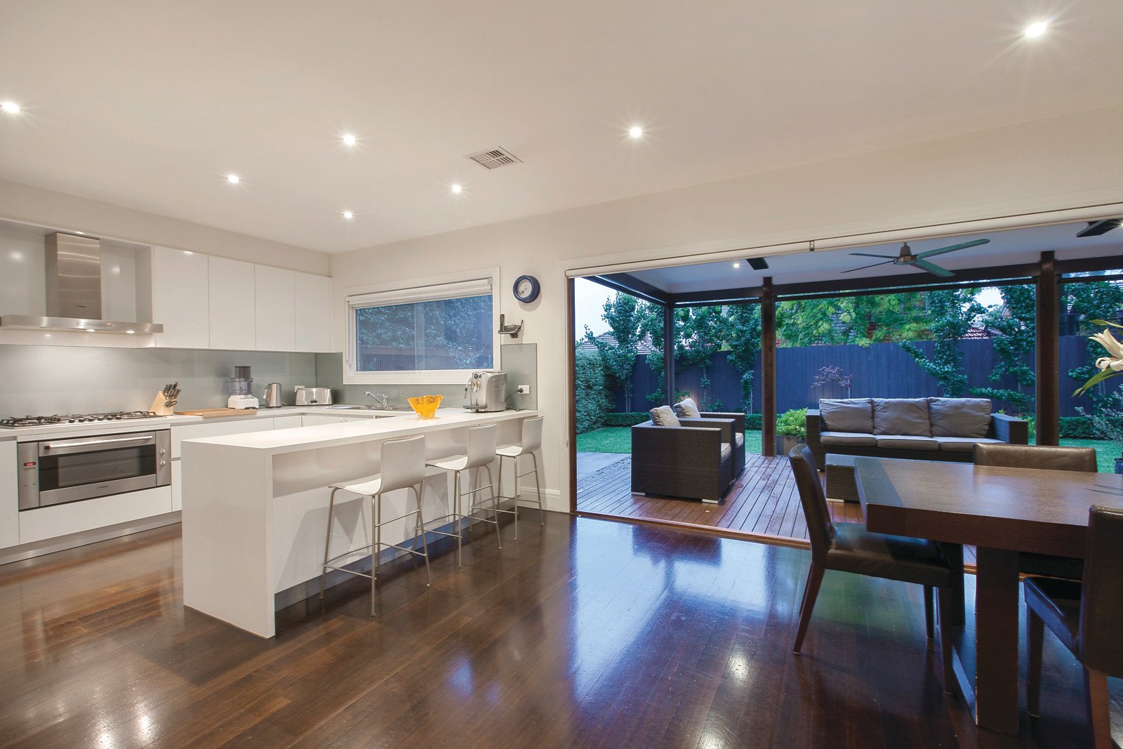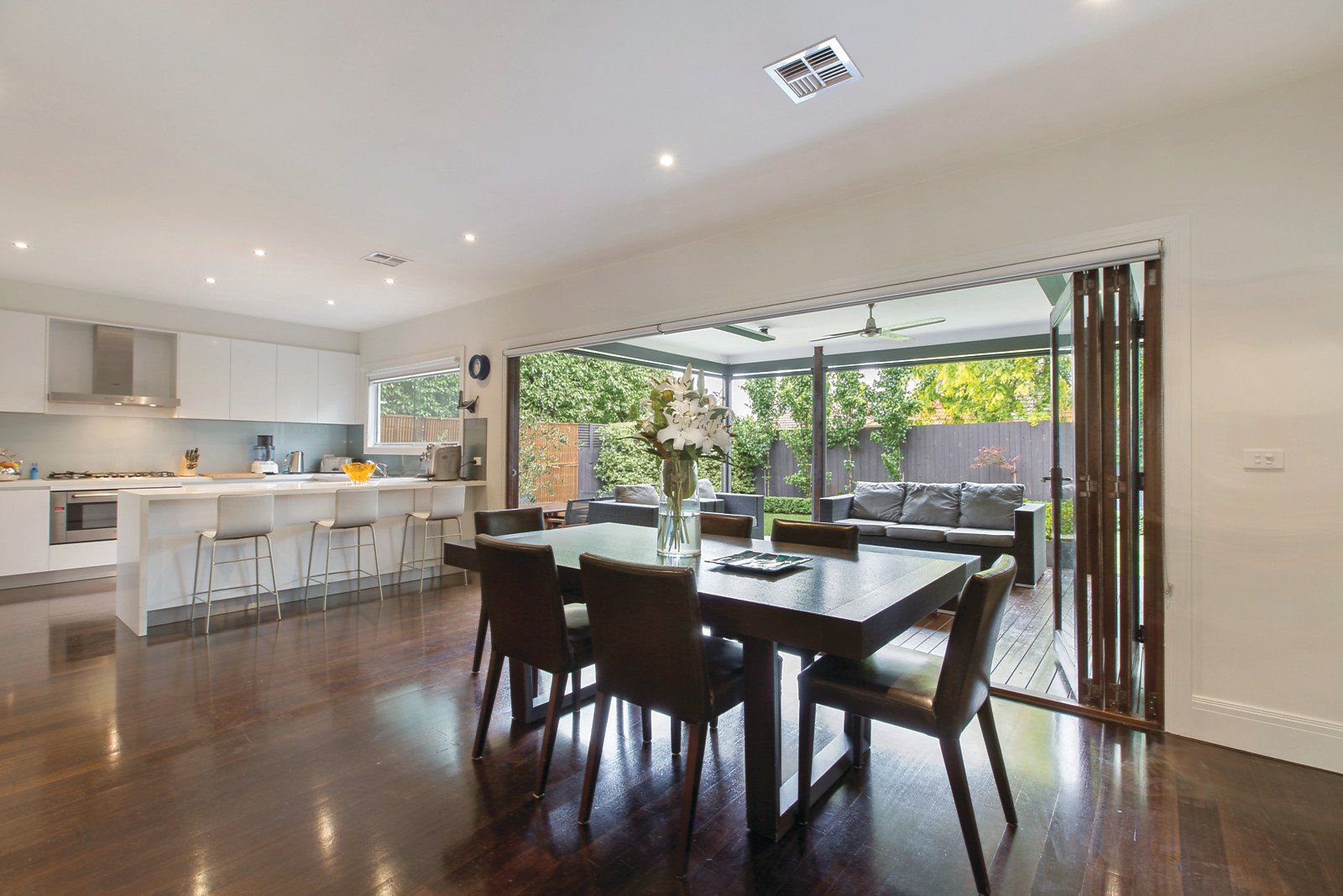 The inspired transformation of this c1930's single level Art Deco residence has resulted in a sensational indoor-outdoor family domain that brilliantly blends original period charm with impressive contemporary designer flair. The captivating façade reveals a wide central hall boasting dark timber floors and ornate ceilings and beautiful sitting room with open fireplace. The expansive family living and dining room incorporates a sleek white gourmet kitchen featuring stone benches and Bosch appliances. Bi-fold doors retract fully to a large indoor/outdoor entertaining precinct with BBQ kitchen and remote blinds overlooking the private north-facing garden. Fabulous family accommodation comprises a lovely main bedroom with stylish en-suite and walk in robe, three additional bedrooms and a chic bathroom with freestanding bath. Idyllically positioned near Ashburton Village and station, schools, parks and pool, this stunning family home includes ducted heating and cooling, plantation shutters, laundry, irrigation, work-shop, 3rd toilet and internally accessed garage.