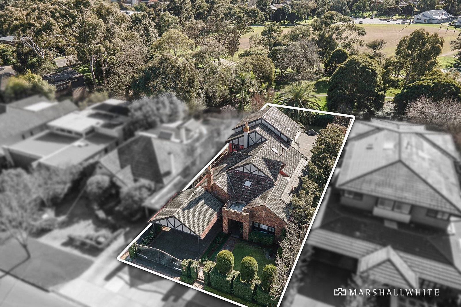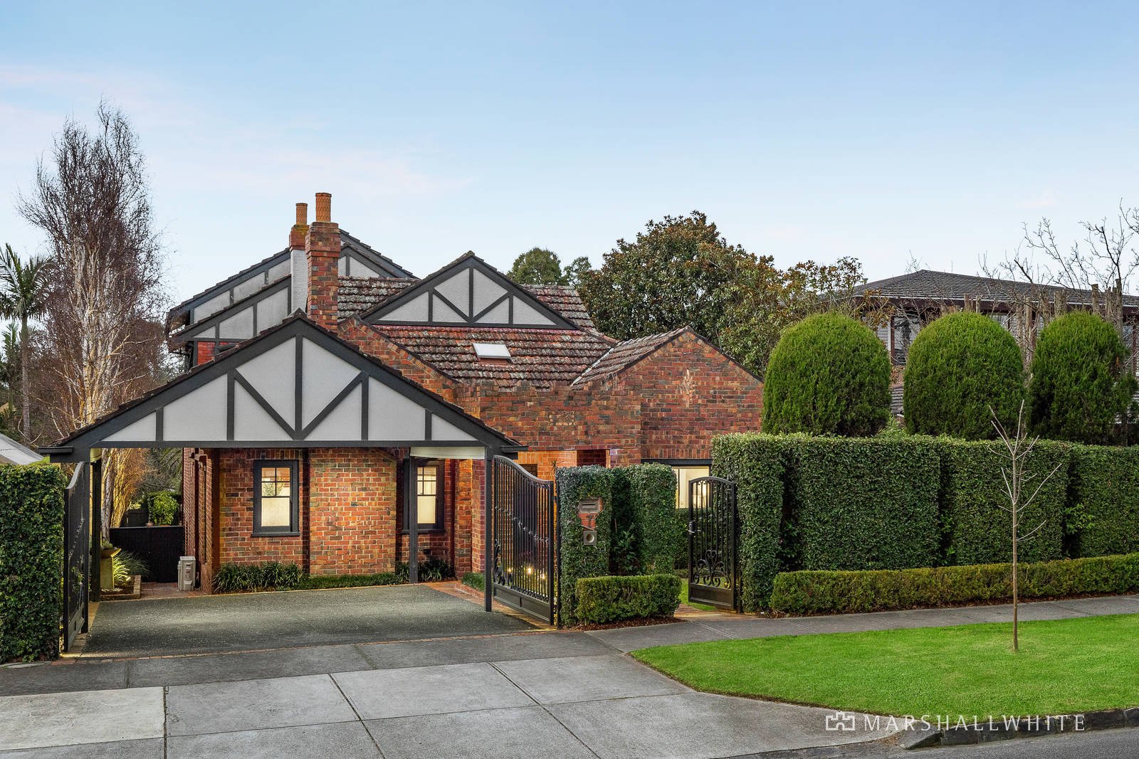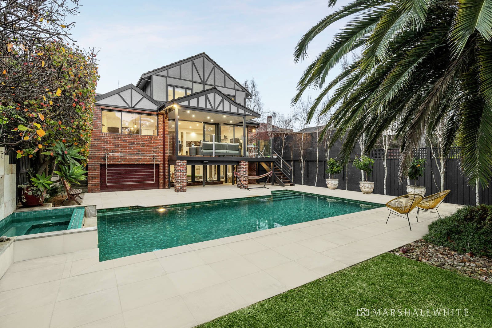 Surrounded by neatly maintained gardens with a tall hedge-lined front fence plus Silver Birch and Ornamental Pear trees lining the fences providing privacy to the home. The impressive interior leaves nothing to be desired with beautiful parquetry floors flowing through the downstairs spaces to a main bedroom with a WIR and large ensuite, a combined formal sitting room and dining if desired and a powder room. Through to an expansive family domain incorporating a sleek marble and prestige Miele appointed kitchen and adjacent laundry. Flowing to the deck providing year round indoor/outdoor dining and entertaining options to be enjoyed with family and friends. The split-level extension features on the upper level three further bedrooms with built-in robes and a family bathroom and powder room. While the lower level has a billiard room or retreat alongside a study, pool bathroom and second laundry opening the pool area. Other impressive features include an alarm, video intercom entry, subtle period attributes including a beautiful leadlight window over the stairs, ducted heating and split-system cooling, surround sound, ample storage throughout, watering system and auto gates and a double carport.
