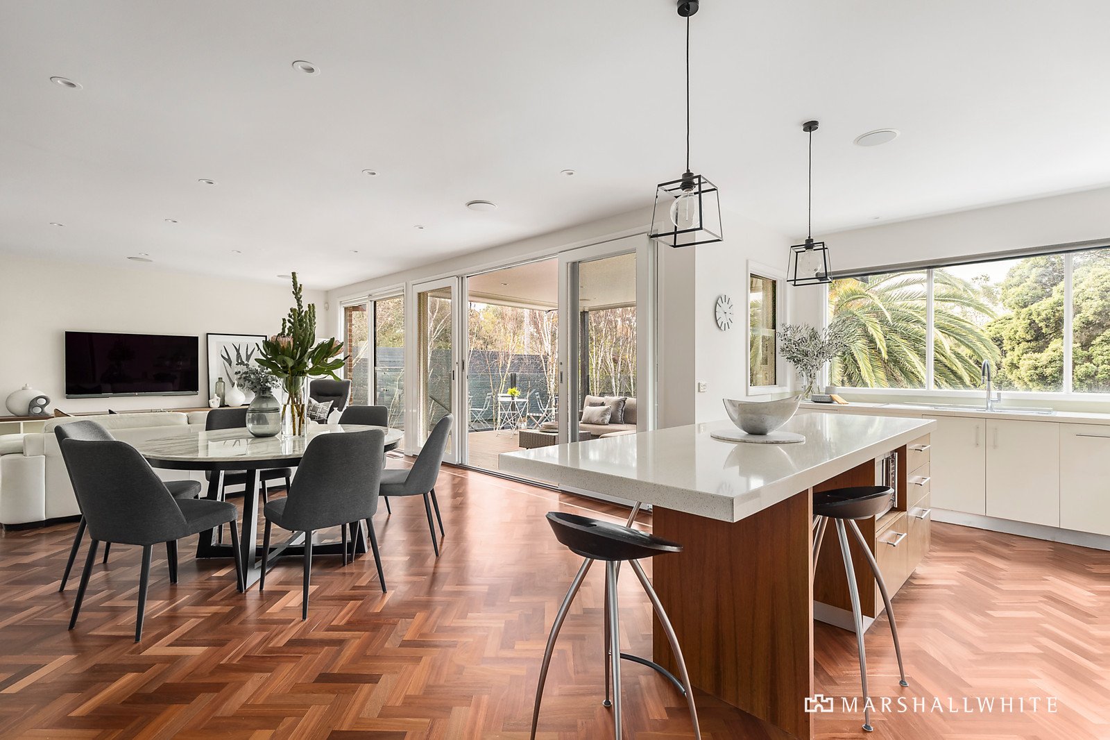 The enduring appeal of an English-style clinker brick home is showcased in this superb example where a sympathetic renovation and a split-level extension has transformed the interior into an exceptional family living and entertaining precinct of the highest standards. Highlighted by a northern covered deck with leafy vistas over a magnificent solar heated pool and spa to the rear garden with direct gate access to Ferndale Park.