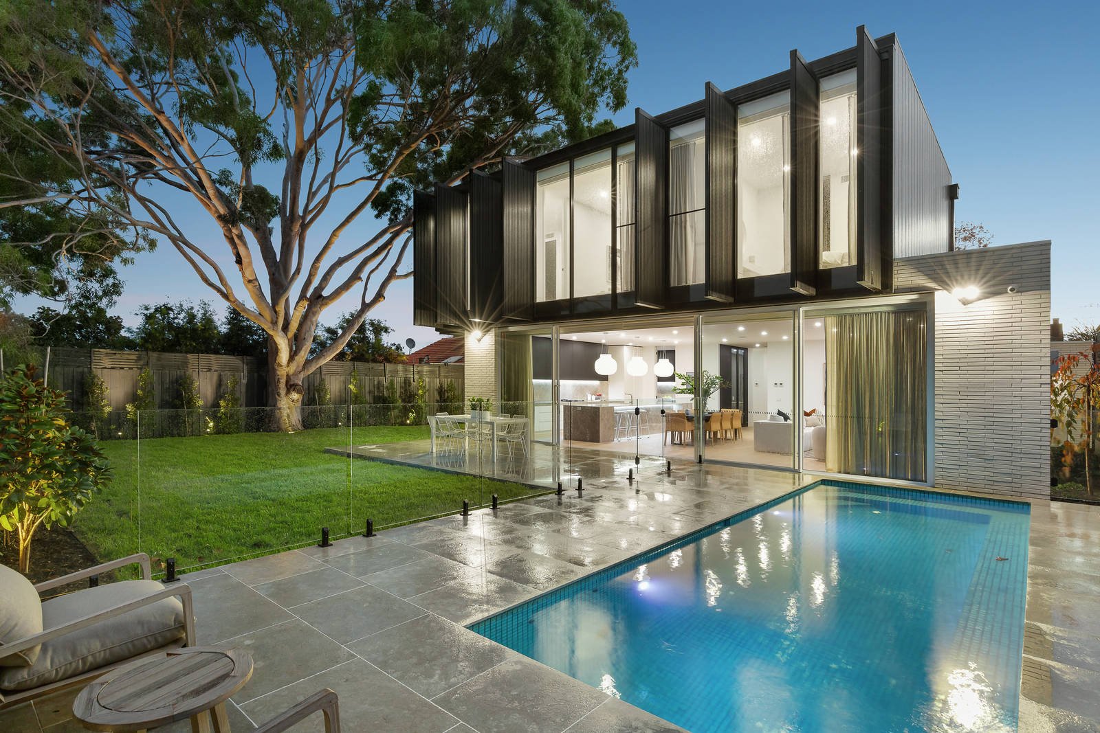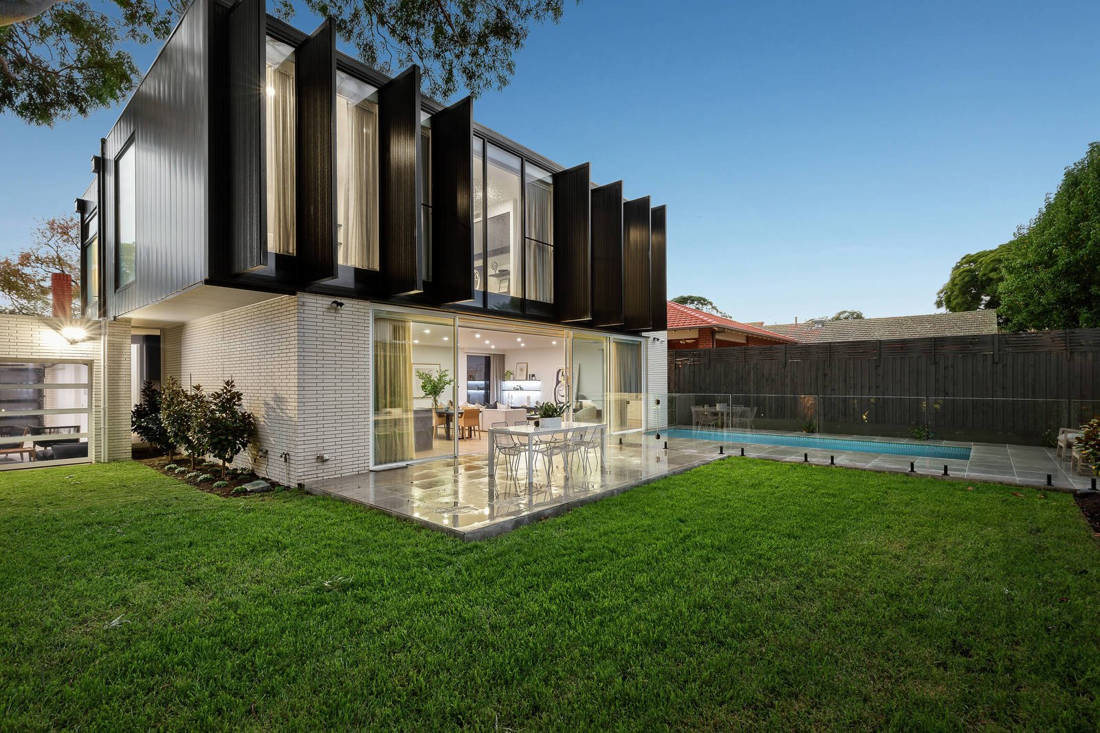 A spectacular newcomer to one of Ashburton's most prominent tree-lined streets, this contemporary masterpiece has been conceived and crafted without compromise. A Cera Stribley Architects (CS-A) creation amidst stylish garden landscape, this pinnacle of family living is dramatic in scale and unbridled in luxury. Soaring ceilings and saturating natural light complement a refined formal winter lounge, leading to an expansive open-plan living/dining zone and state-of-the-art kitchen with butler's pantry, teeming with top-line Miele appliances (integrated dishwasher), integrated Liebherr fridge/freezer, soft-close cabinetry and an eye-catching natural stone island bench. Bespoke design and detail are continued outdoors, with an eco stone alfresco overlooking a stunning in-ground swimming pool and beautiful landscaped gardens. A ground floor master suite featuring a dressing room and lavish Granite ensuite are accompanied on the upper-level by a large retreat flaunting custom joinery and built-in study area, 3 additional robed bedrooms including a second main with WIR/ensuite and 2 bedrooms (each with built-in desk) sharing a sleek fully-tiled 2-way bathroom. An endless list of accoutrements propel this home into an elite category with specialized finishes including a coat closet, powder room, laundry/mud room with drying cupboards, built-in wine cellar with bar fridge, surround sound, zoned ducted heating/AC, electric block out blinds, sheer curtains, CCTV, double garage and auto entry gate. Positioned a short stroll from High Street cafes and shops, with Ashburton train station, excellent schools, Watson Park and the Anniversary Trail close by, this location has certainly met its match with an exceptional family home that ticks all the boxes.