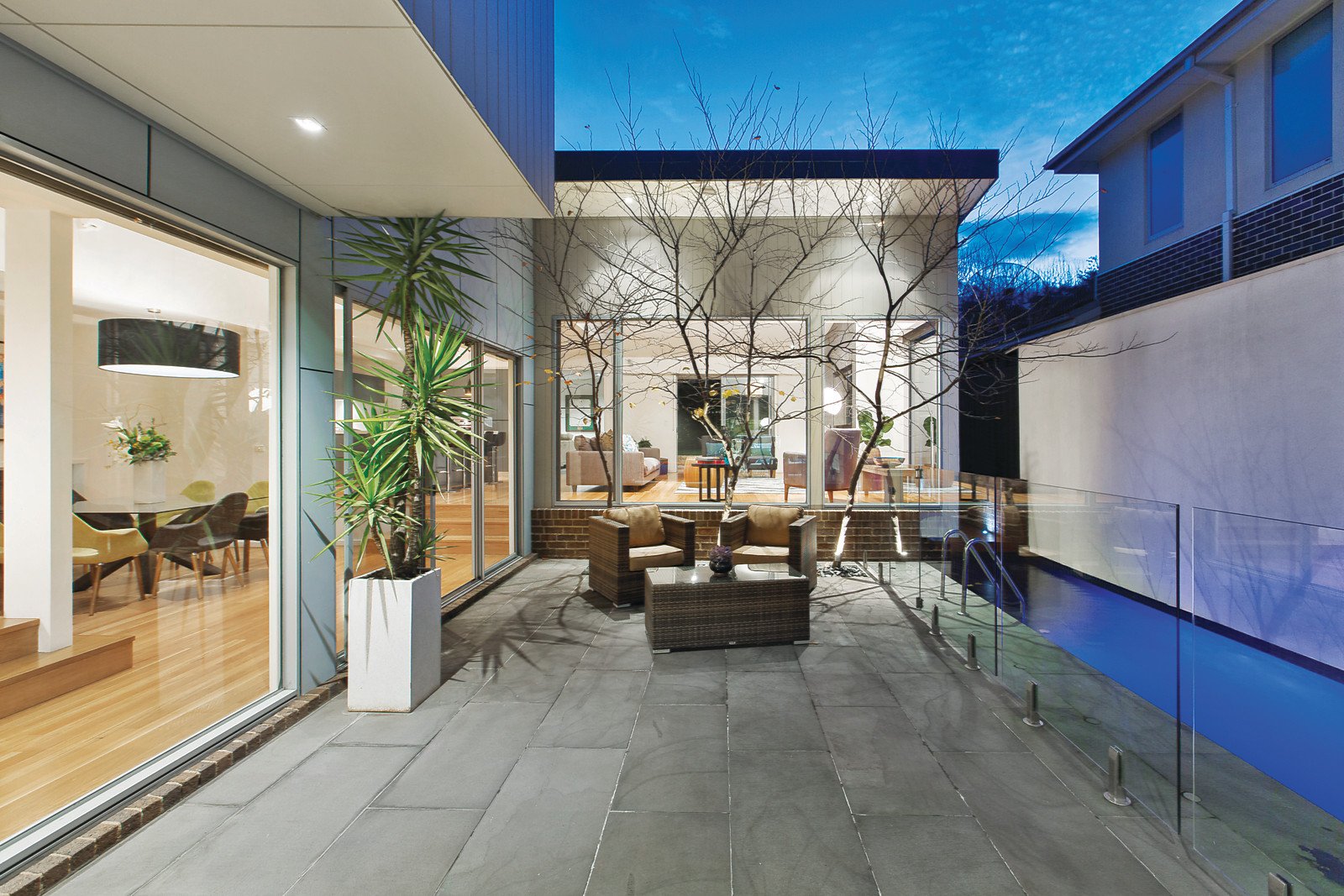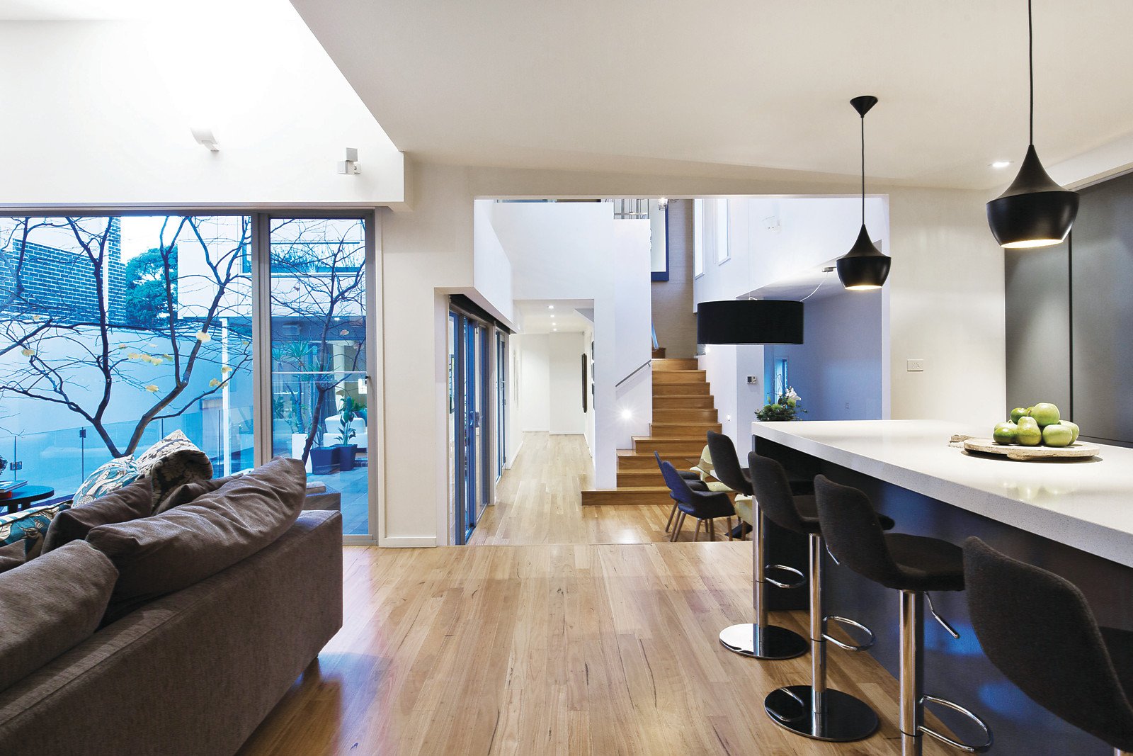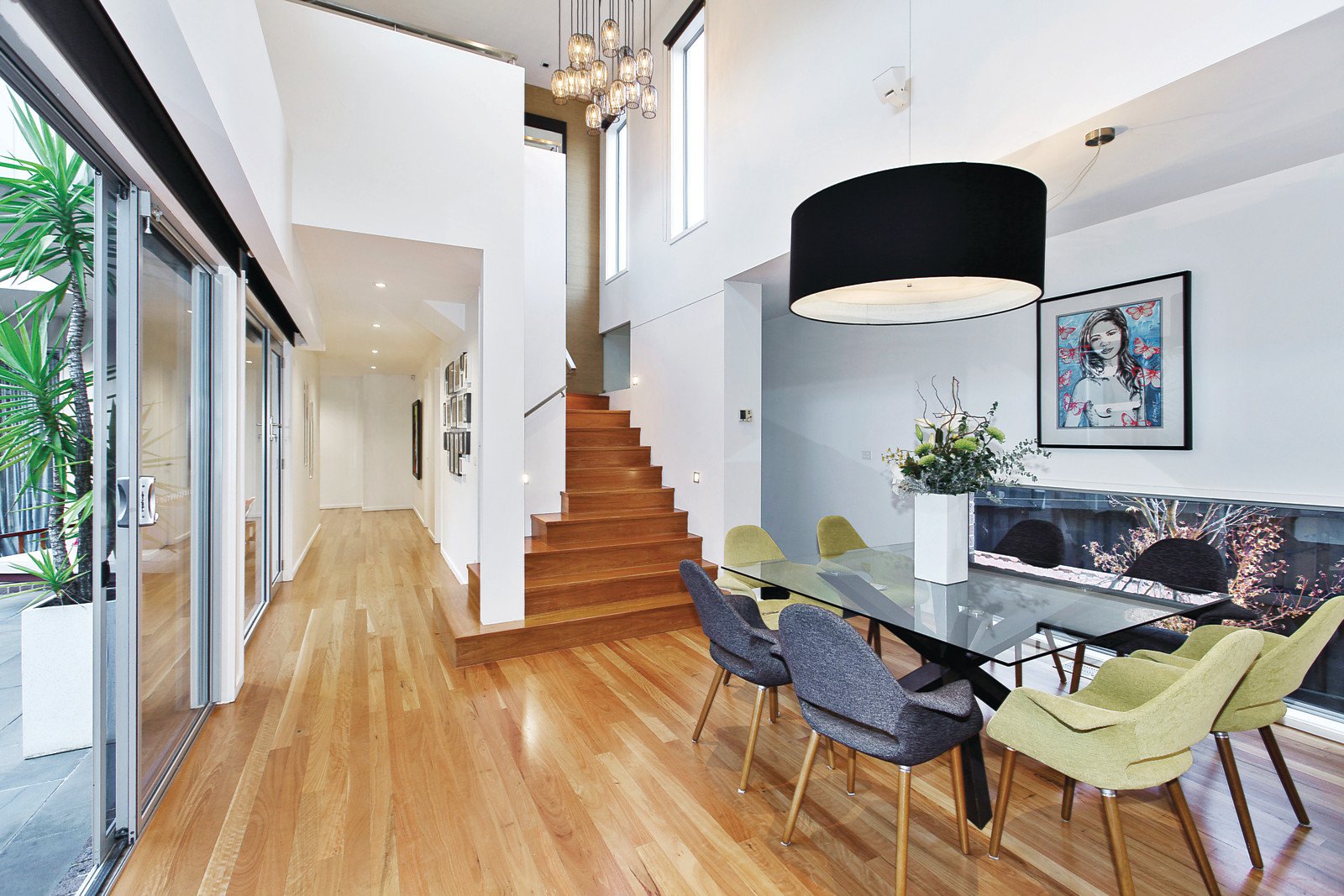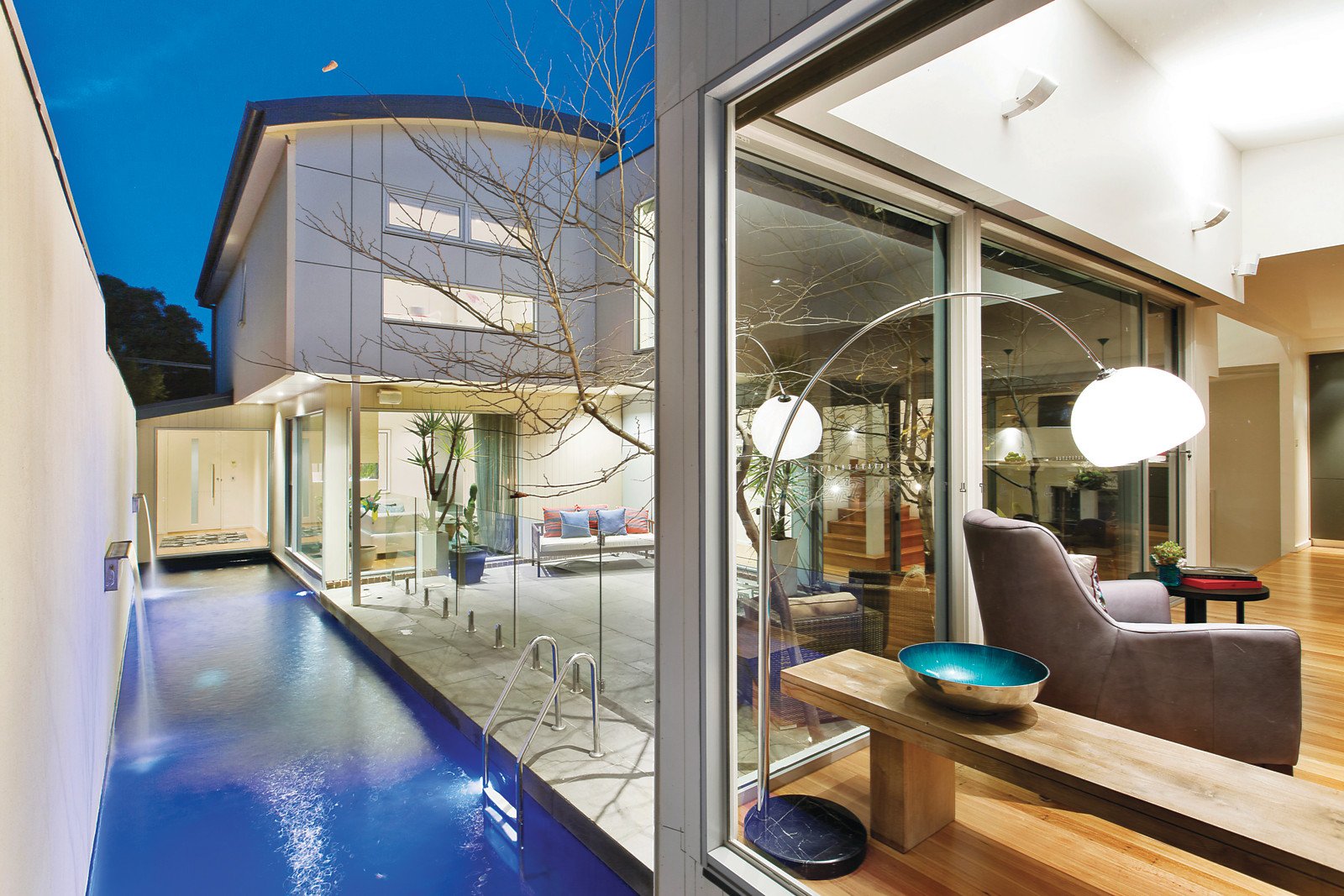 Introduced by a distinctive Daniel Robertson half brick and rendered façade with lines of Silver Birch trees the accommodation features beautiful Black Butt floors, a main bedroom with stunning WIR and ensuite, living room, powder room, laundry and wine room. A central northern courtyard and the pool is surrounded by expansive living and dining spaces including a rumpus or games room, stunning open-plan CaesarStone kitchen with prestige Miele stainless steel appliances, Liebherr integrated fridge/freezer and floor-to-ceiling glass opening to a rear covered deck - perfect for alfresco dining and entertaining. Whilst upstairs features a family retreat and bathroom, four further bedrooms or three plus a study and two with views to Dandenongs. Other features include video intercom, motorised blinds, Zip water tap, Bose sound system, c-bus wiring, zoned ducted heating, cooling & vacuum, architect-designed landscaped gardens with outdoor lighting & auto irrigation, storeroom, remote 4-car garage with secure internal access.