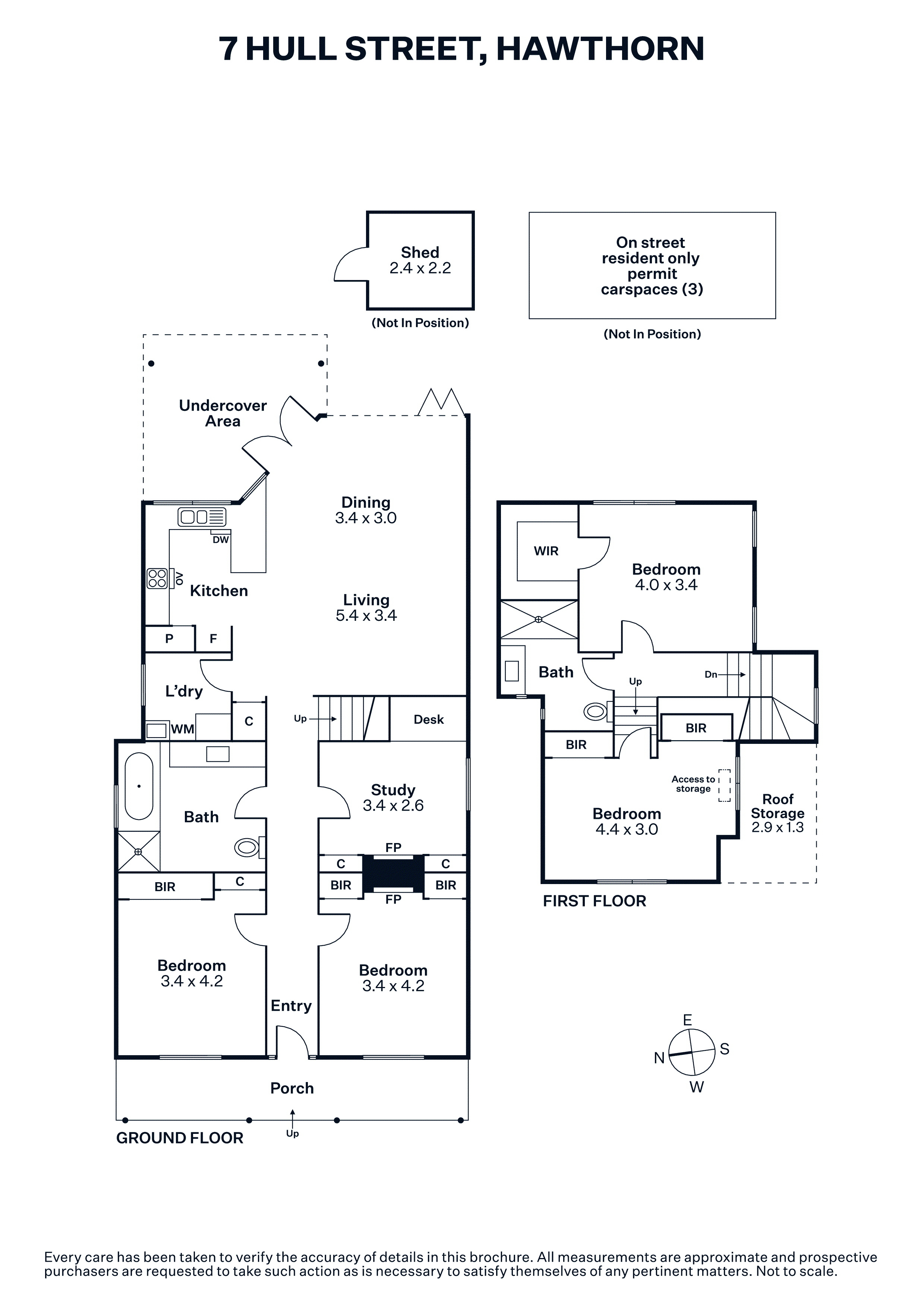 With two bedrooms set upstairs and two downstairs – each appointed with either walk-in robes or large built-in robes – the layout is conducive to the changing needs of growing families, whilst each of the bathrooms is a stylish designer domain. Further highlights of this superbly renovated home include a built-in desk and storage in the study which is enhanced by a decorative open-fireplace, plus there is a laundry, polished hardwood flooring, electric wall panel heating and split system air conditioning.