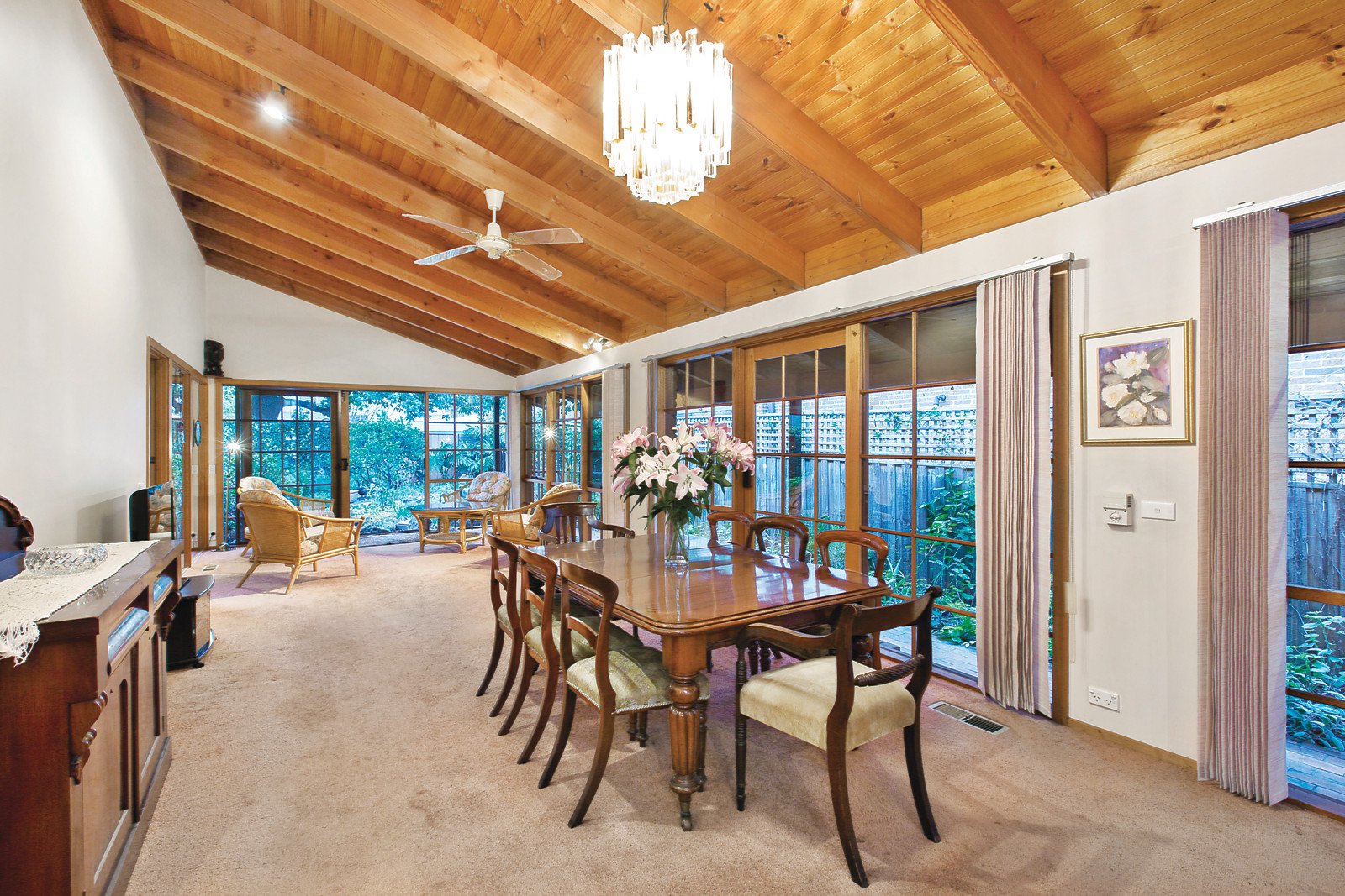 With Hedgeley Dene at one end of the cul de sac and Central Park at the other, a more idyllic setting for a dream home would be hard to find. Impeccably presented throughout, this classic eighties brick residence provides the ideal foundation for an inspired renovation or alternatively its deep north-facing allotment is the perfect site to build a new home to your own requirements (STCA). The Oregon lined vaulted ceiling accentuates the spectacular scale of the 22m long living and entertaining room served by an immaculate well appointed kitchen. Surrounded by glass, the living area opens out to a private north-facing garden with access to Knox St. The main bedroom with ensuite and walk in robe and a second double bedroom with built in robe and ensuite/bathroom are downstairs while a large 3rd bedroom or retreat is upstairs. Walking distance to Central Park Village, schools and Wattletree Rd trams and Darling Station, it also includes a laundry, storage and double garage. Land size: 503sqm approx.