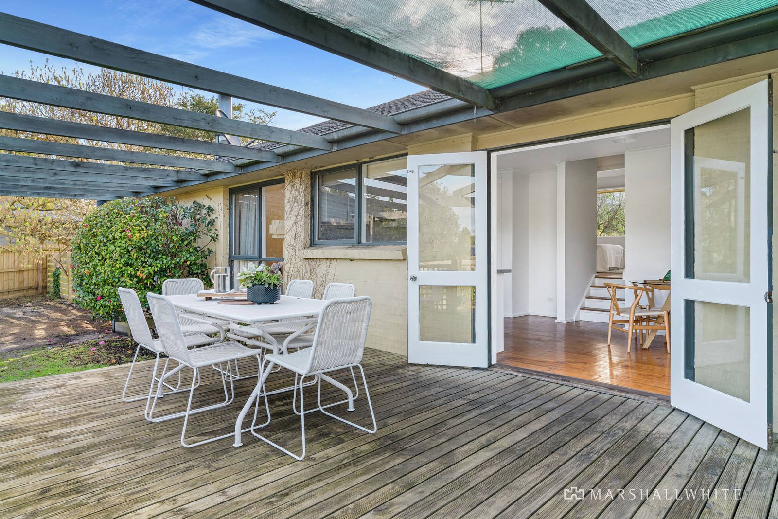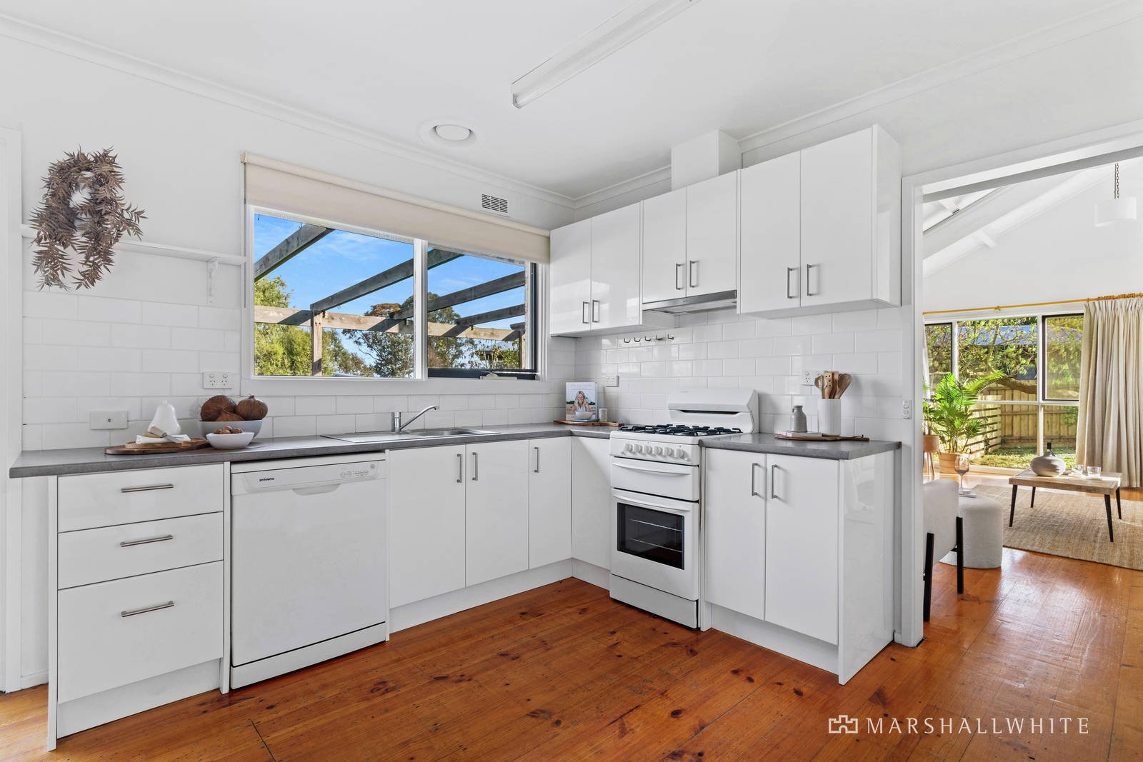 Rich in coastal ambience, the home's elevated entry reveals high-raked ceilings, hardwood flooring and a cosy Coonara wood fire heater in the spacious living area with rear garden outlooks. The central kitchen has a Westinghouse free-standing cooker and dishwasher and flows to the casual dining area where a pair of glass French Doors open out to the pergola covered paved patio and alfresco deck, perfect for relaxed summer entertaining. There are three good-sized bedrooms, two with built-in robes, the bathroom with a corner spa tub, and a separate powder room. Also includes a laundry with external access and plenty of storage. Attached to the home, with its own separate entrance, is a light-filled and spacious studio/bungalow, with front and rear access doors, which would be ideal as teenager or guest accommodation, or as a work-from-home space. The spacious backyard is fully fenced, with lush, established gardens and there is a garden shed.