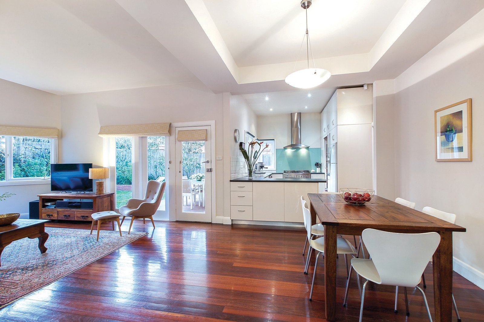 An inspired contemporary two-storey extension provides this pristine four-bedroom Californian Bungalow with expansive light-filled living zones to complement its refined period detail. Formal sitting and dining rooms flow through to relaxed family living featuring a well-equipped kitchen with Miele dishwasher and Ilve oven, opening onto a North facing timber deck with pergola and barbecue area in a landscaped garden setting.