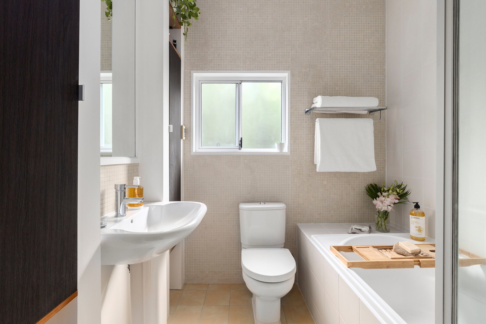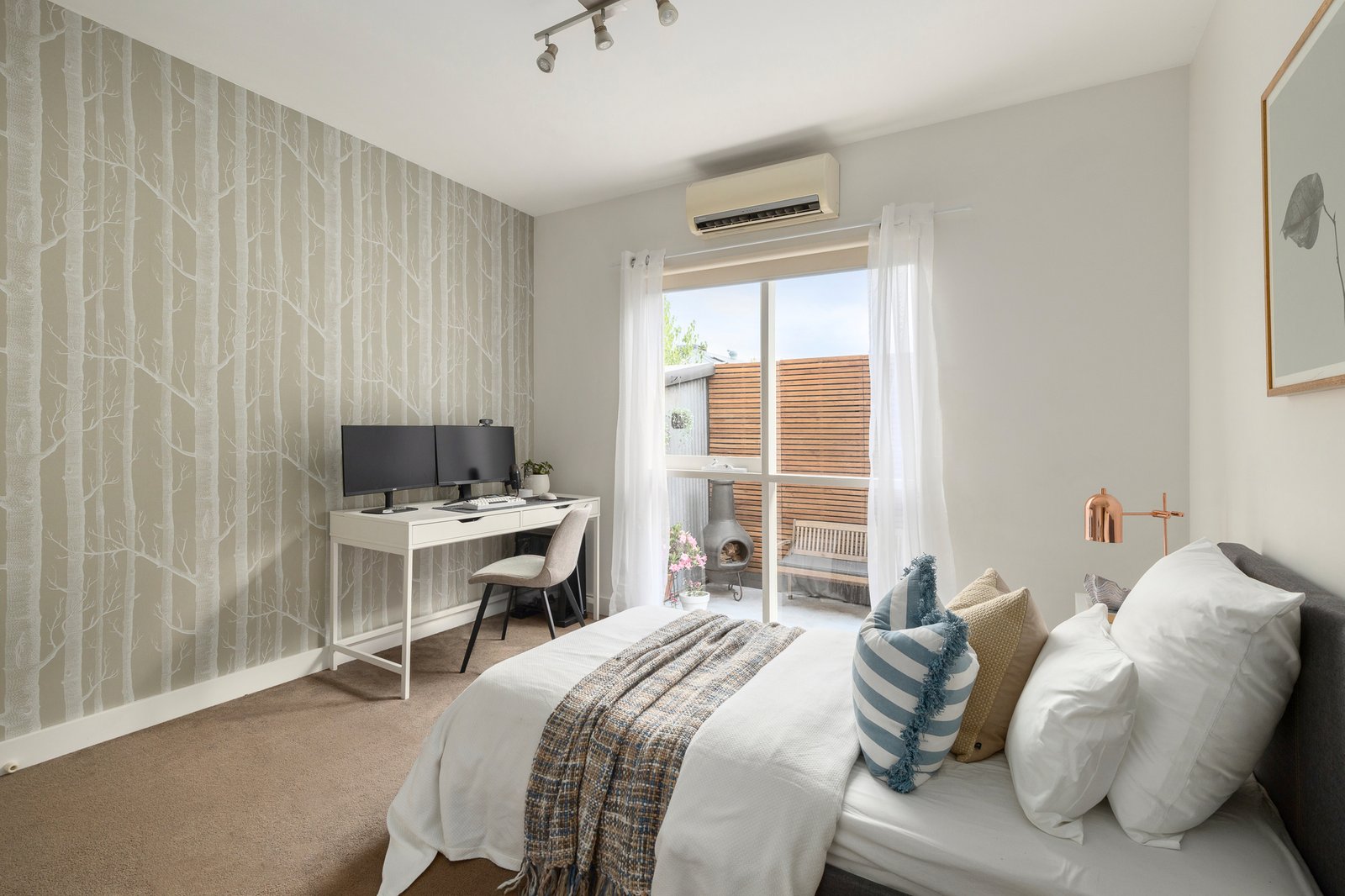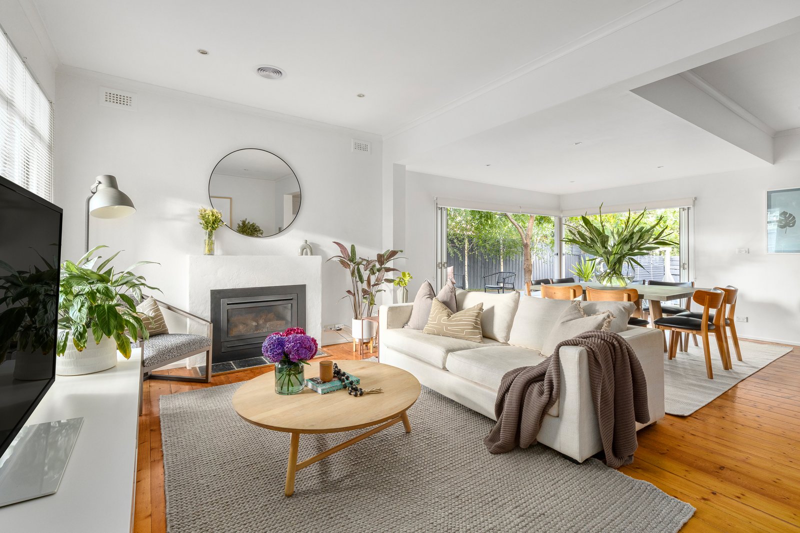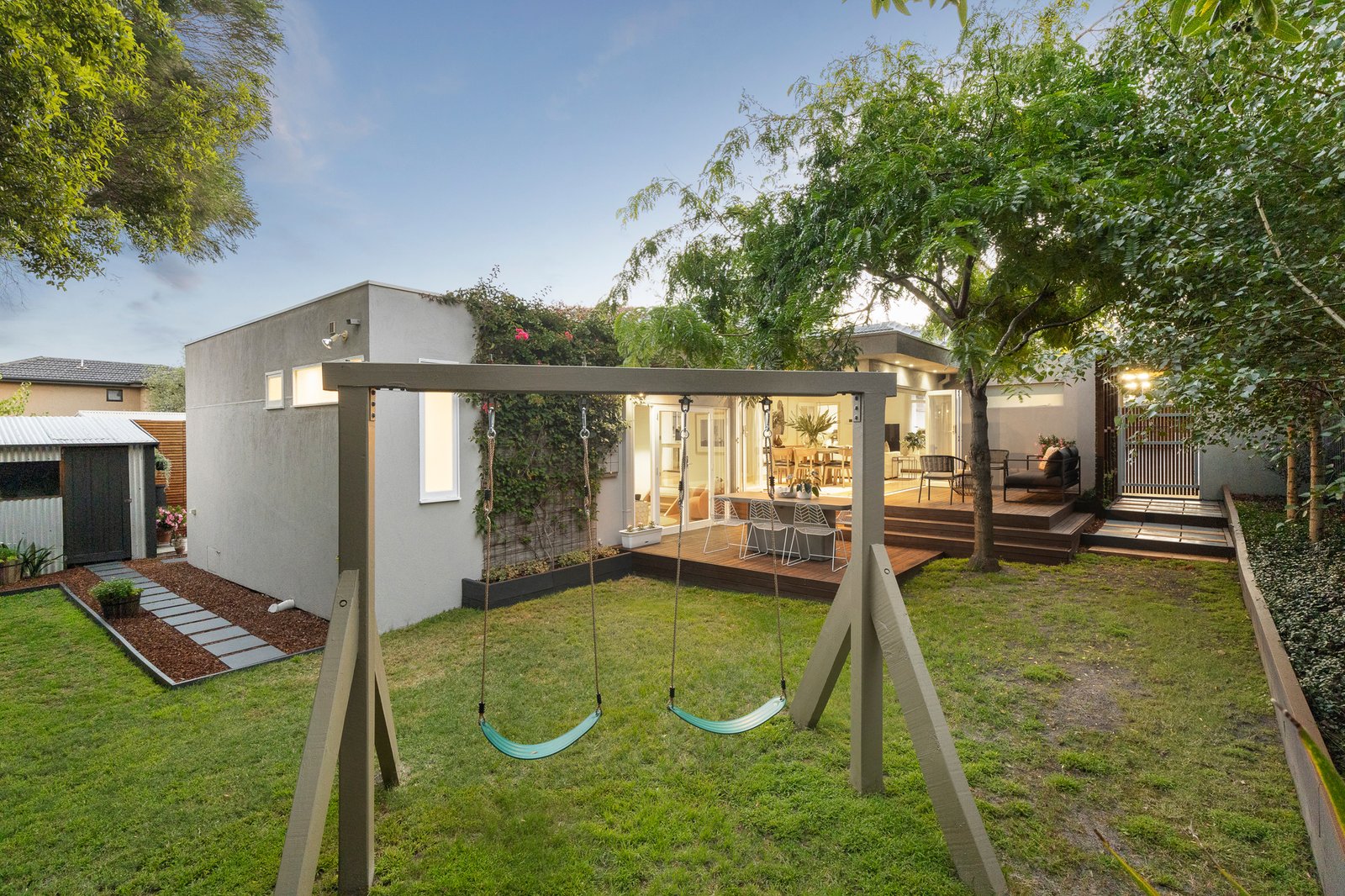 Step inside to discover bright, airy spaces and Baltic pine floors. The heart of the home is a generous open plan living area with Jetmaster gas log fireplace, a well-appointed timber kitchen with Smeg oven and an expansive dining area, where corner bi-fold doors open fully to a large north-facing entertaining deck and leafy gardens. This family haven offers flexible spaces to accommodate a family's changing needs. The serene main bedroom features French doors opening to a private verandah framed by Bougainvillea. Alongside is a second bedroom and a stylish bathroom. A quiet home office with built-in storage presents a perfect place for study or working from home. The rear wing creates an ideal space for children or teenagers, providing two additional bedrooms, a contemporary family bathroom and a second light-filled living area opening to the garden.