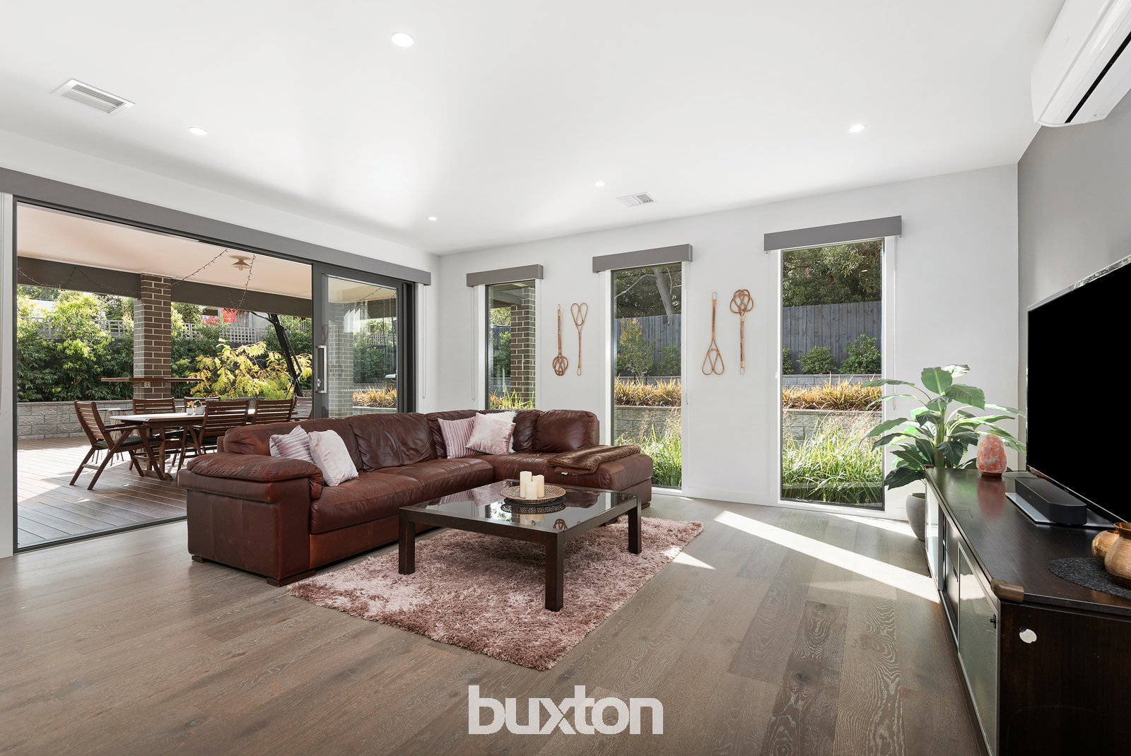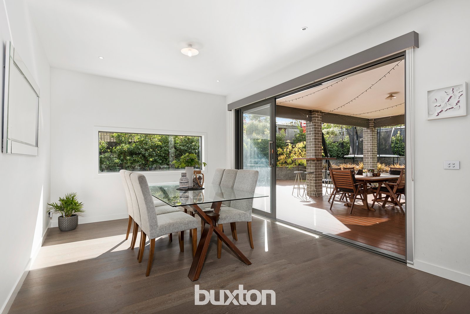 Flawlessly appointed from top to bottom, contemporary oak floors and plantation shutters complement the generous study and formal lounge with built-in bookcase. The convenient separation of the media room contrasts the exciting openness of the dining and family room. The substantial kitchen with butler’s pantry is finished in stone and fitted with Ariston, Technika and Bosch appliances, while double tri-stacker doors create a seamless connection to the alluring under-cover alfresco, green turf and lush garden edging.