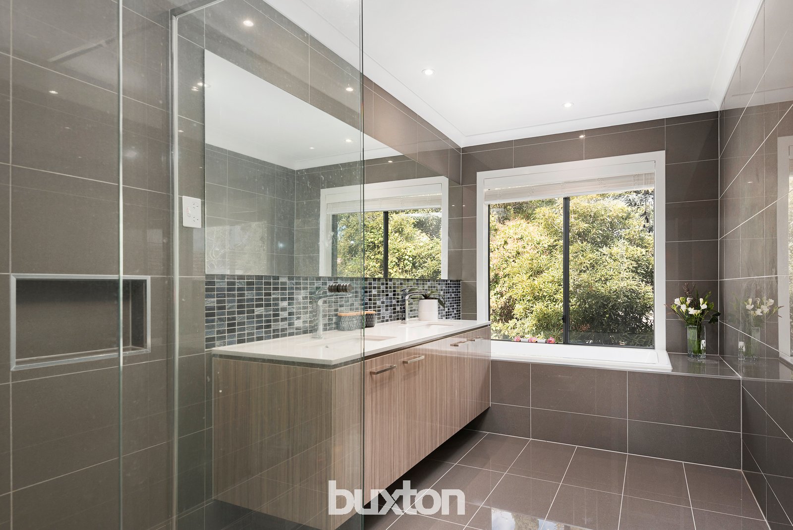 The upper retreat offers a fourth living zone, leading to four king-sized bedrooms with walk-in robes. Floor-to-ceiling porcelain tiling, a spa and a dual vanity feature in the ensuite, while the tree-top balcony provides beautiful views from the master.