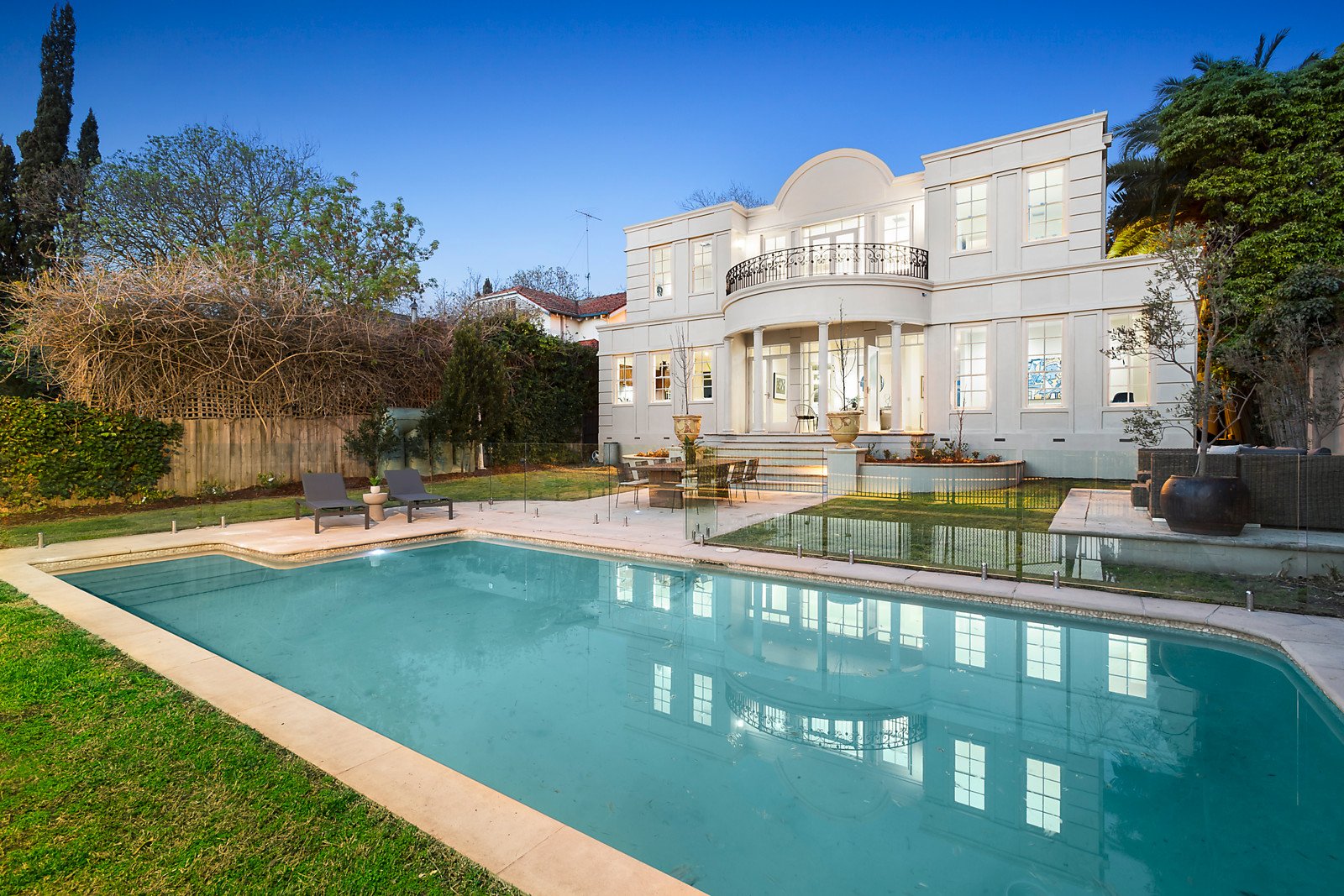 Establishing an impression of grandeur, the imposing columned reception hall featuring coffered ceilings and timber floors introduces an elegant sitting room with open fireplace and an inviting formal dining room. A regal marble staircase ascends to the opulent main bedroom with walk in robe, marble en suite with spa bath, balcony offering city views and a retreat or 5th bedroom with built in robe. There are a further three bedrooms with built in robes, a nursery or study, lavish bathroom with spa bath and a spacious library with balcony. The expansive and sun-drenched living and dining areas served by a superb gourmet kitchen boasting stainless steel benches commands wonderful views of the city. The living area opens out to the deep northwest garden with a series of entertaining terraces, heated pool and the mod grass tennis court. Beyond the garden a rear right of way accesses Kellet Reserve.