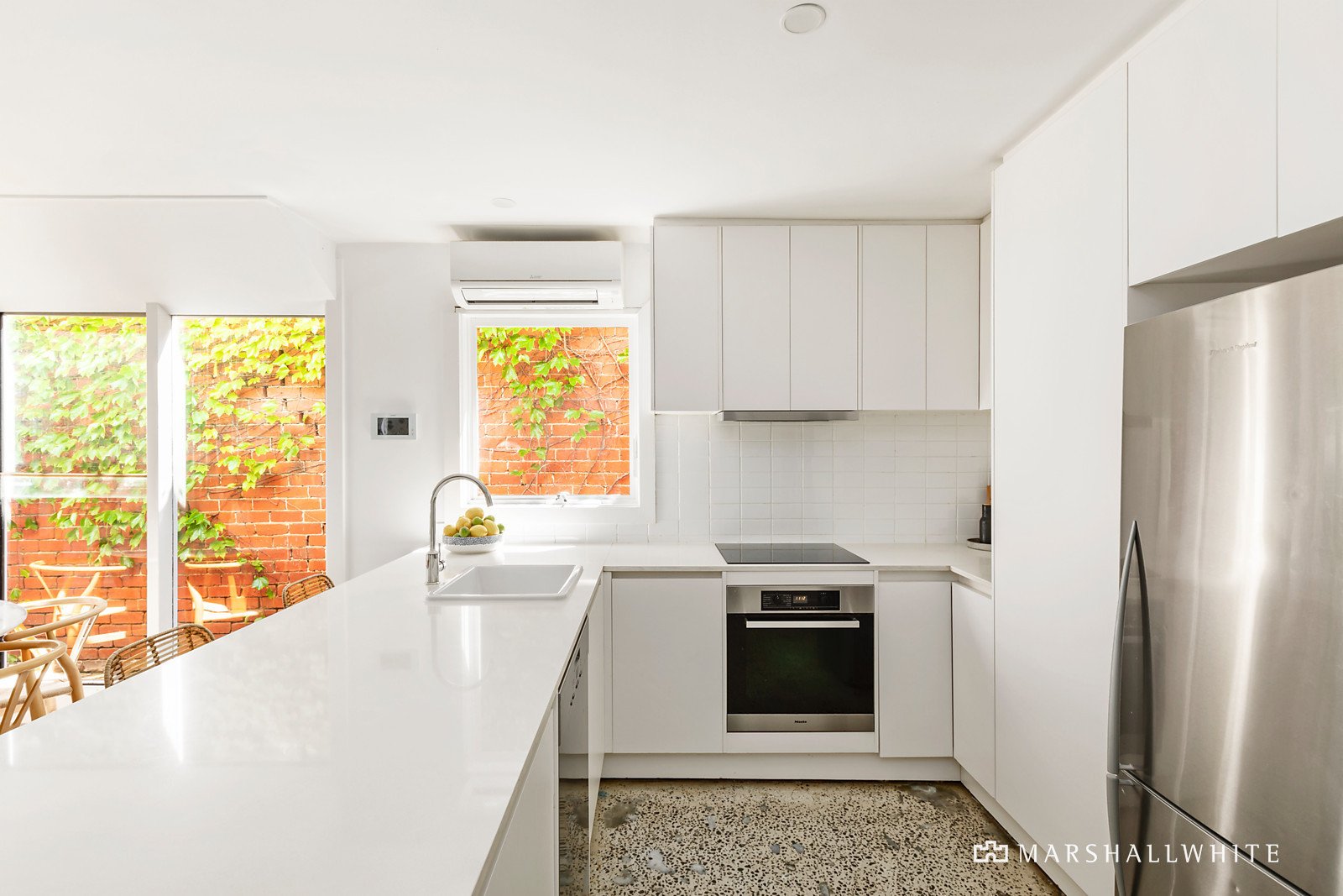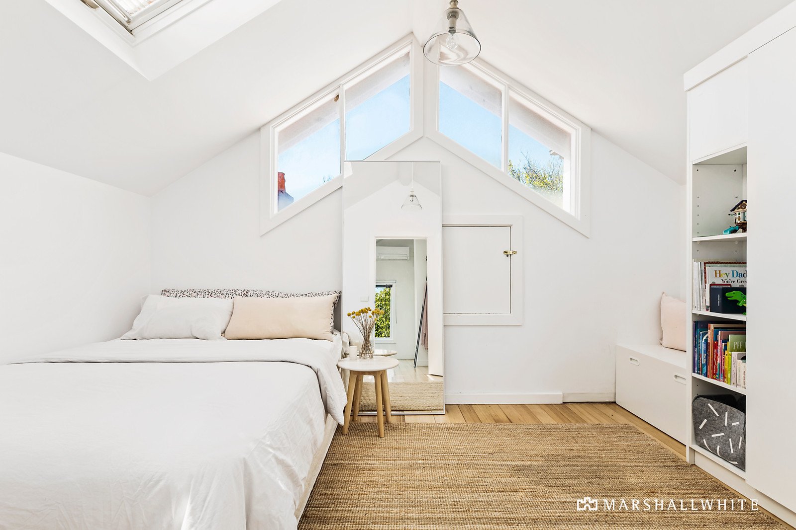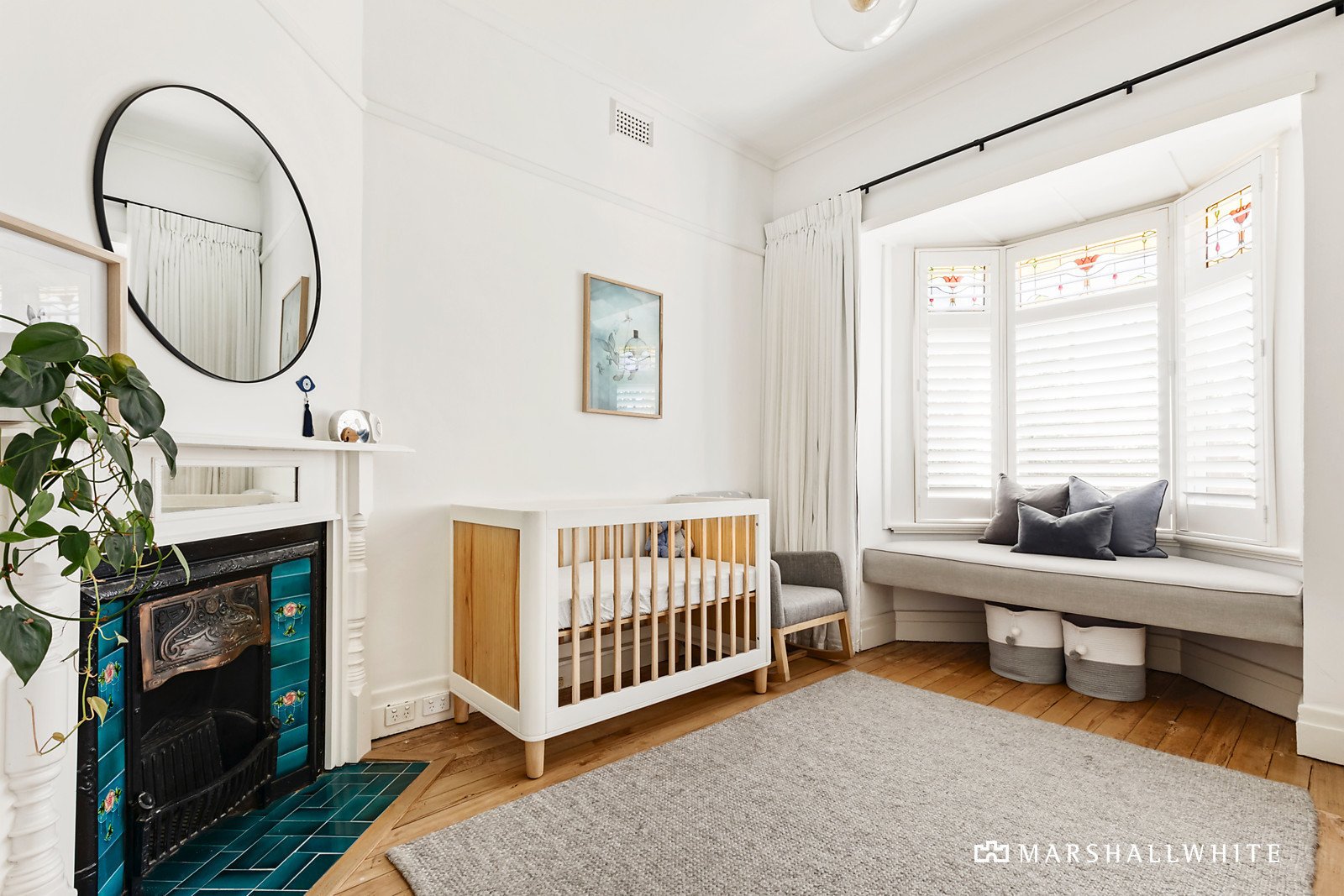 Nestled behind a high walled garden, Baltic pine floors flow through the fretwork decorated hall to a generous central living room with fireplace, three beautiful bedrooms with fireplaces and built in robes and a stylish bathroom. Upstairs there is an additional bedroom with built in robe, a bathroom and a home office / retreat. Polished concrete floors are underfoot in the modern kitchen boasting stone benches and Miele appliances and a sunny rear dining area opening through French doors to the large covered deck and off street parking for 2 cars via the rear ROW.