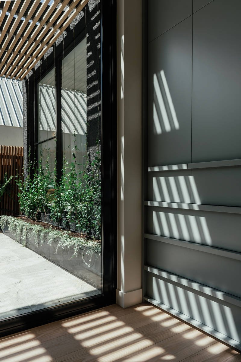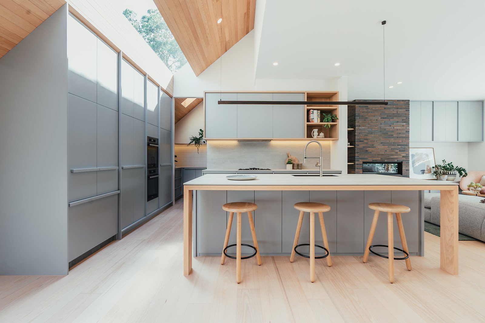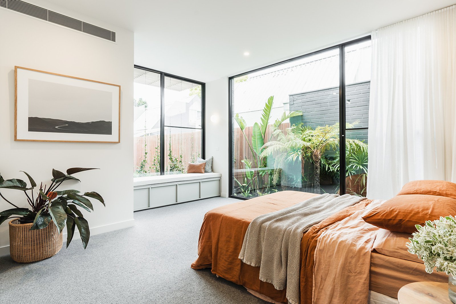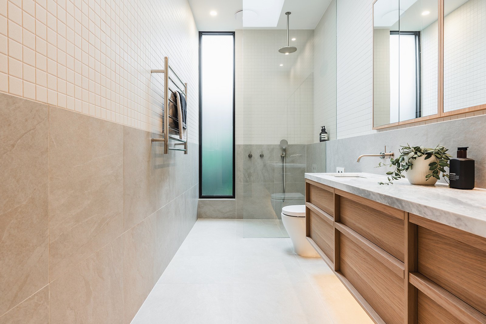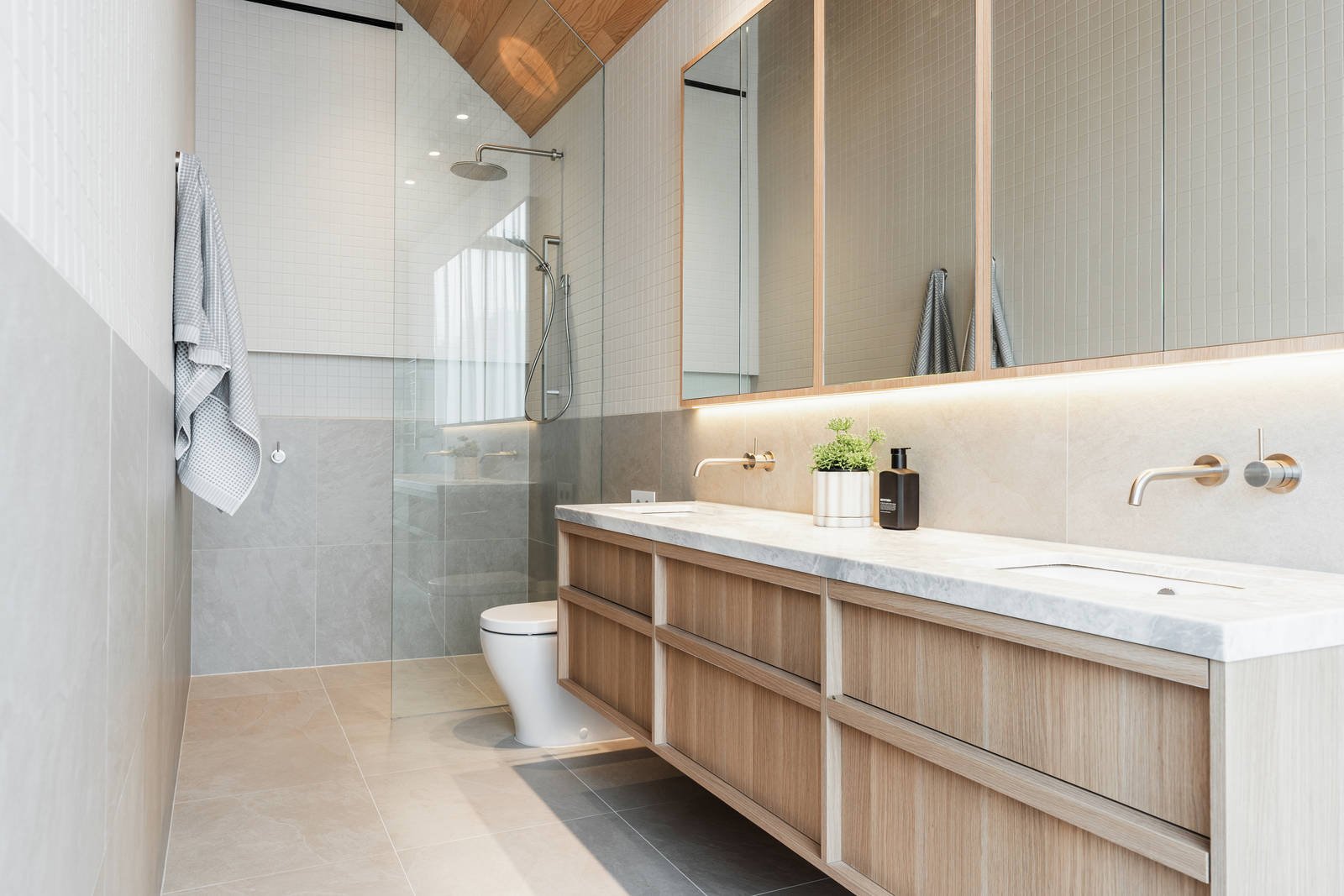 A natural palette of American oak, Elba marble, terrazzo and large format porcelain surfaces along with a brilliant use of angled 3m + ceilings and clever skylights has created spaces that exude both stylish sophistication and a wonderful warmth. Behind the striking façade, a welcoming entrance hall of American oak flows through to an exceptionally spacious open plan living and dining room with a gas fire surrounded by hand made Krause bricks and opening through full width glass sliders to a private north-facing landscaped crazy paved courtyard with built in seating. The state of the art gourmet kitchen features Miele appliances, porcelain benches and a butler's pantry. The stunning downstairs main bedroom with a window seat overlooking the garden, walk in robe and lavish designer en suite sets a benchmark in luxury that is matched upstairs by a second gorgeous main bedroom also with a deluxe en suite and built in robes, two additional bedrooms with robes, a third stylish bathroom and large retreat. On the basement level there is a sensational home theatre with kitchenette and bar fridge, 400+ bottle wine cellar, mud room, laundry and 3-car garage with electric vehicle fast-charging capabilities via a 3 phase supply.
