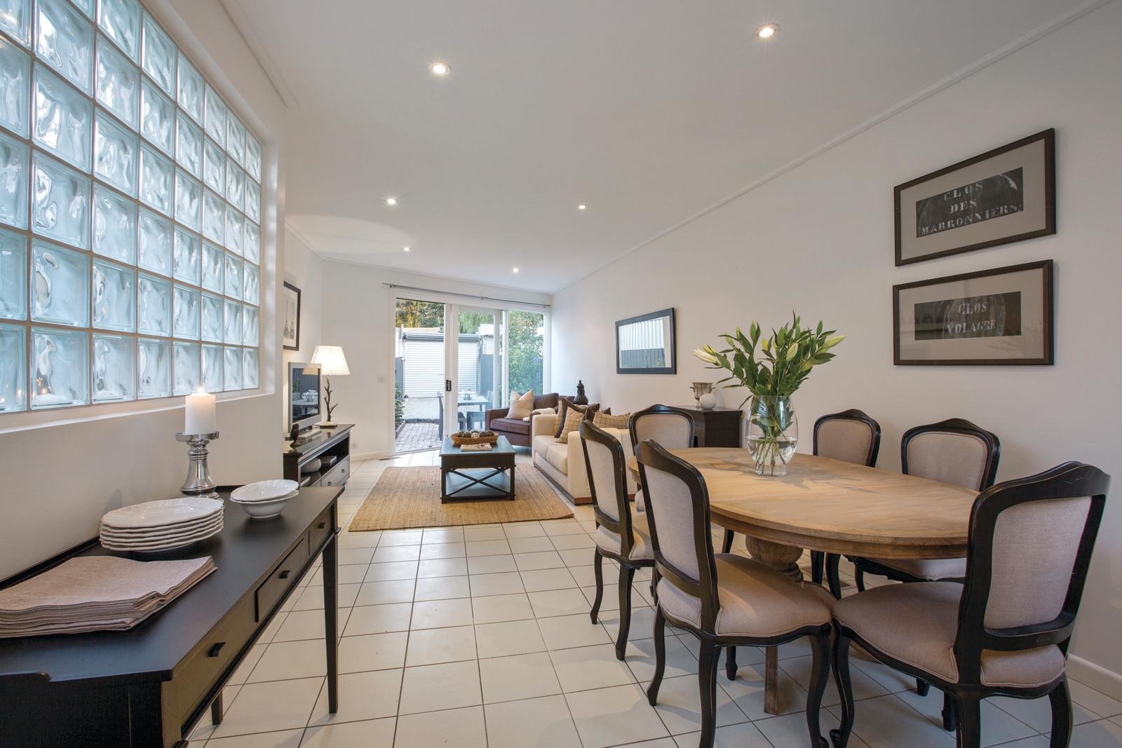 Gleaming polished timber floors flow through the arched hallway to two beautiful double bedrooms both boasting ornate ceilings and open fireplaces and a bright stylish bathroom with Euro-laundry. The generous light-filled open plan living and dining room with superbly equipped modern kitchen features stone benches and a casual dining area, and opens perfectly to an inviting sun-drenched courtyard ideal for al fresco dining.