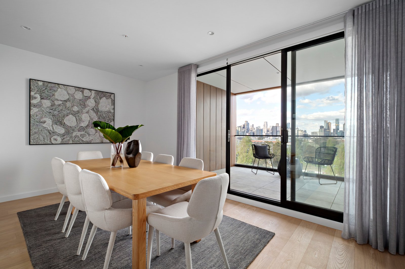 A captivating expression of contemporary design by acclaimed developer BSPK, this sky-view four-bedroom sub-penthouse at Evelyn Residences celebrates Melbourne’s most cinematic perspectives, where the park, the bay and the skyline unfold in striking succession.