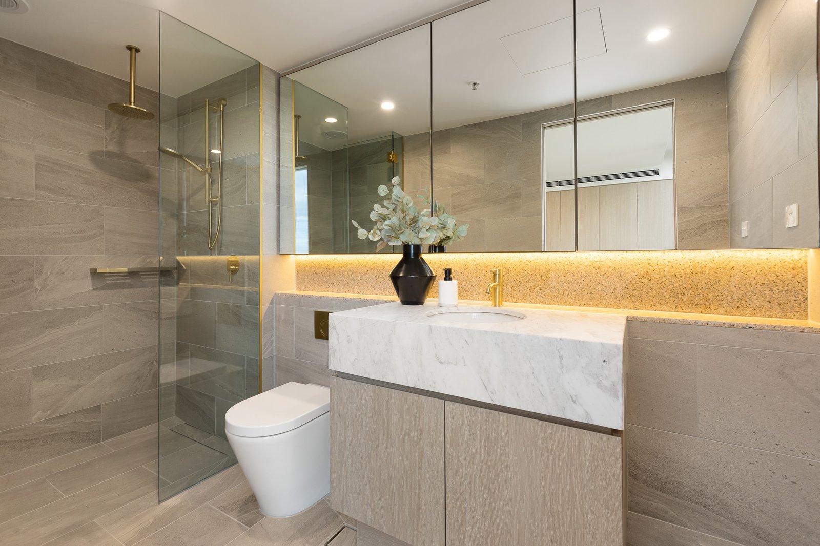 Our internationally acclaimed designer David Hicks has personally selected materials that result in elegant, timeless spaces that are luxurious but never pretentious. An entertainer’s kitchen, possess high standards of workmanship: with mirrored fronts and splash-backs magnifying a sophisticated elegance. Rear wall joinery is a combination of timber veneer, granite, and satin-finish overhead cupboards, framing top-end Miele appliances. When it comes to quality there is no compromise: from design to materiality, every detail showcases your impeccable taste.