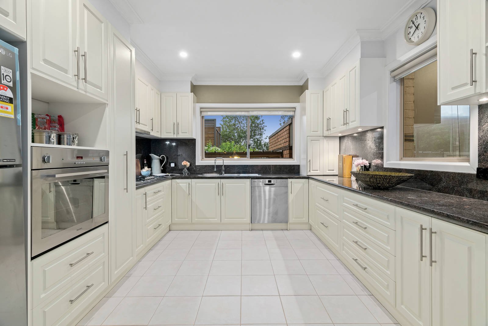 Elevated amongst the treetops with breathtaking city and Macedon Ranges views, this exceptionally large and stylish home is a shining example of family living done to perfection. Boasting spacious proportions throughout, be spoilt for choice with three fabulous family zones including a formal lounge with gas log fireplace, sweeping open-plan kitchen/meals/living area and first floor retreat opening to an impressive terrace with city skyline vista. The luxurious range of options continues with the convenience of master bedrooms with WIR and ensuite on each level, a private home office and a newly renovated self-contained unit featuring its own kitchenette, bedroom, bathroom, heating/cooling and separate access. Flawless interiors are perfectly complemented by a stunning alfresco entertainer's deck complete with outdoor kitchen, gas cooking and cafe blinds for year-round enjoyment, and tranquil low-maintenance gardens with pretty fruit tree features. Fully equipped for premium family living in the coveted Balwyn High School zone, this wonderful 5-bedroom, 4-bathroom home also features a large entry hall, separate laundry with upstairs chute, polished timber floors, granite benchtops, spa bath, ducted heating, air conditioning, ceiling fans, double garage and plentiful off-street parking. Exceptional standards of living perfectly placed with excellent access to the Eastern Freeway, Doncaster Rd trams and a range of quality local schools. Land size 665sqm approx.