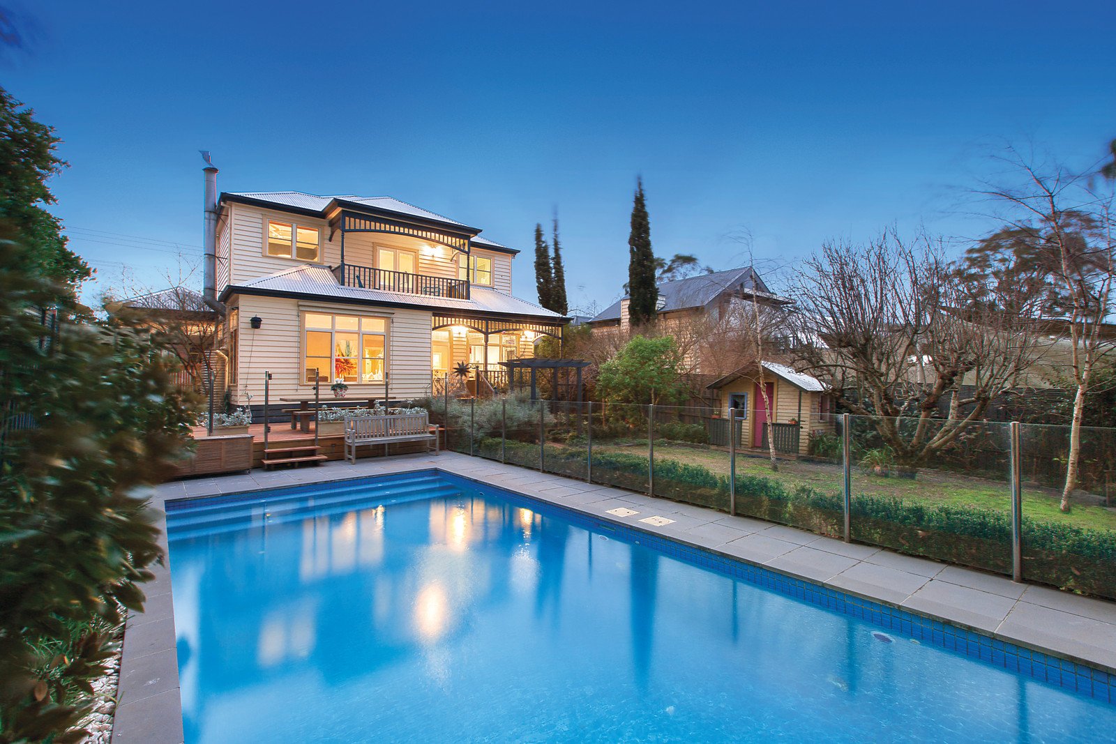 Gracing a peerless position that embraces sweeping Yarra and Dandenong Ranges views, this elegantly renovated and extended, double block-fronted Victorian blends enviable family living with entertaining excellence. Set beyond a charming, landscaped front garden, the home's flexible floorplan caters to your unique requirements with a double arched entry hall leading past two bedroom/sitting rooms with fireplaces. The downstairs master bedroom boasts a walk-in-robe, spa ensuite and fireplace, while the formal dining features a wood fire heater and connects to the kitchen via a walk-through pantry. A modern open plan extension continues the flow of polished floorboards and high ceilings, revealing a gourmet kitchen, meals and family room with open fireplace, stone benches, Ilve appliances, Bosch dishwasher plus basement cellar access. A discrete powder room and laundry provide downstairs convenience. While outdoor entertaining showcases a sunny entertainer's deck with stainless steel kitchen/BBQ area, solar heated in-ground pool with water feature and an adjoining landscaped backyard. On the upper level, a family retreat opens onto a balcony boasting magnificent Ranges views, accompanied by three additional robed bedrooms plus the family bathroom with WC. Further enhanced by attic storage, ducted heating, refrigerated air conditioning, water tank, solar power, plantation shutters plus remote gated access to the tandem carport and gated trailer parking zone. Situated on 750sqm approx. close to leading independent & public primary & secondary schooling, Kew Junction shops, trams, Yarra Bend Park plus Eastern Freeway.