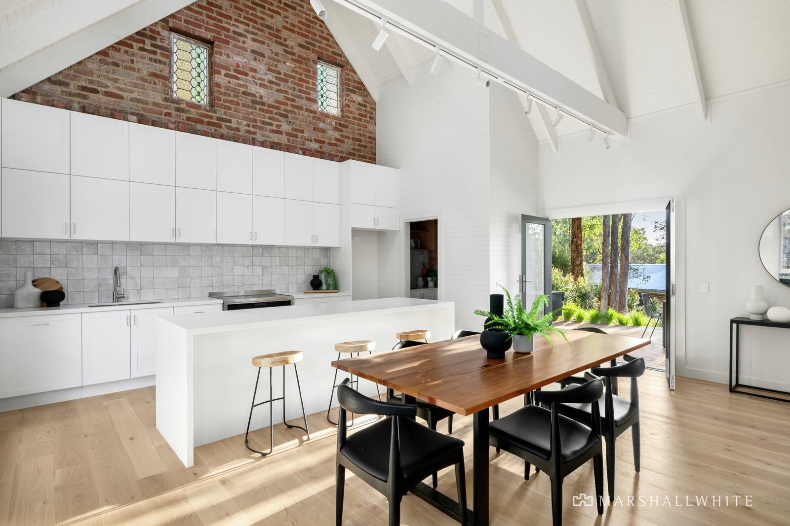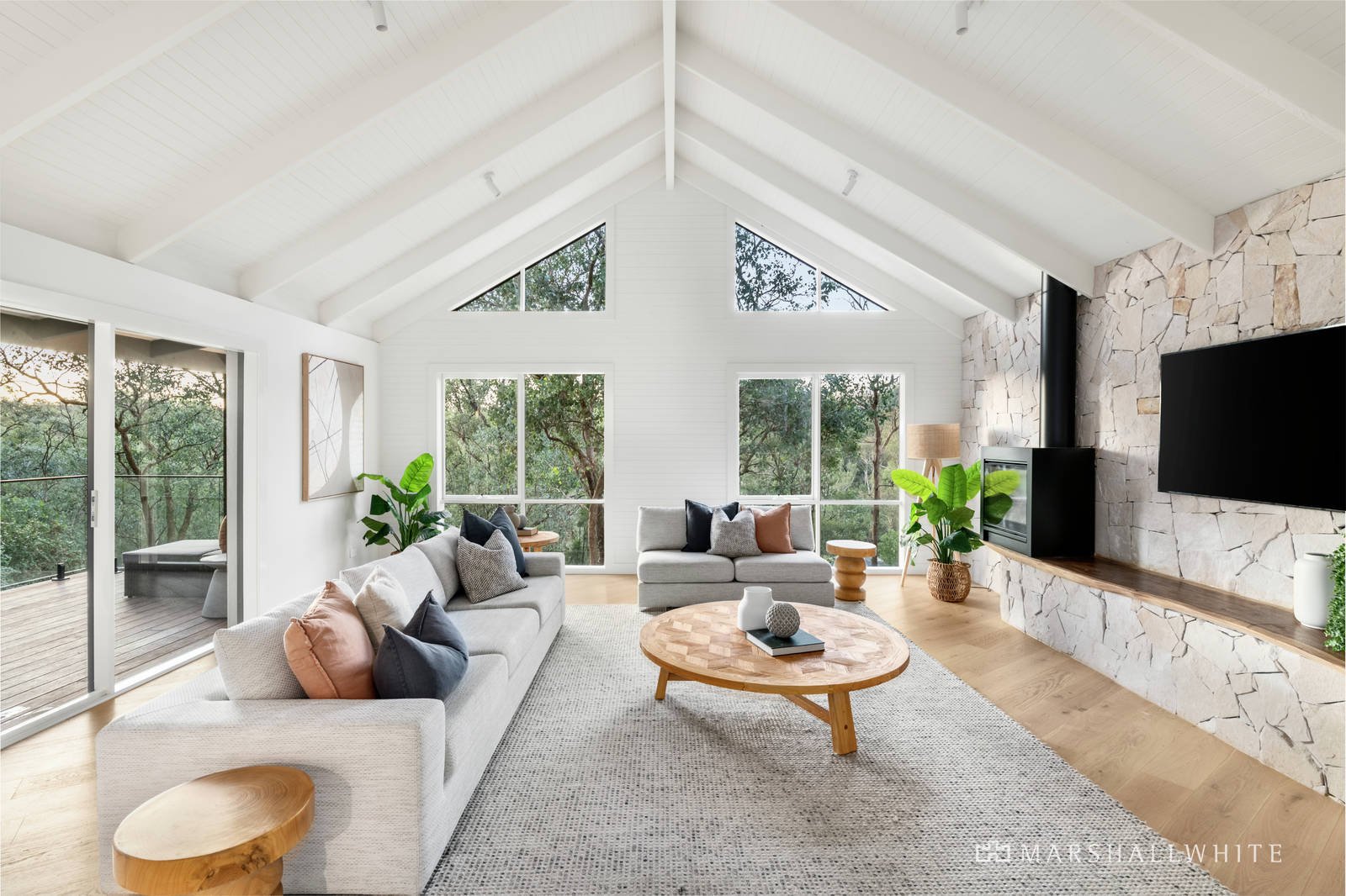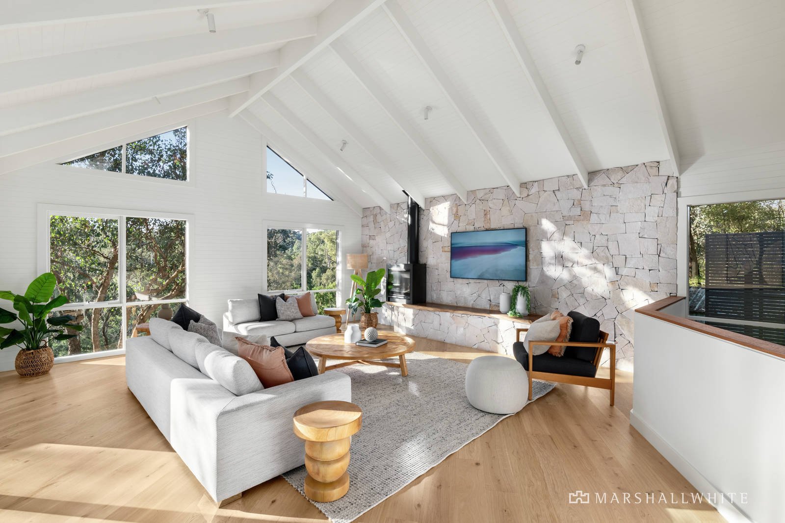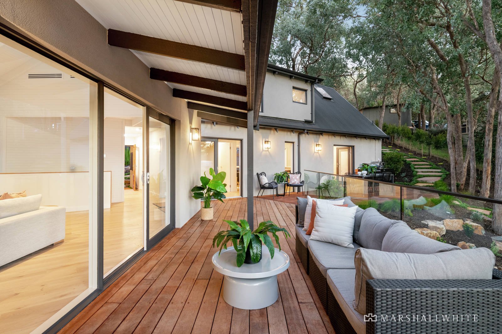 A builder's own meticulously crafted labour of love in a quiet no-through road directly opposite the pristine expanses of the Warrandyte State Forest, this absolutely flawless, four bedroom residence has been comprehensively rebuilt with a discerning eye for quality. Set on a staggering north-facing allotment of 1012 square metres (approx.), with views through the natural canopy and down towards the banks of the Yarra River, this is a light-filled Warrandyte classic under vaulted ceilings and with a seamless alfresco flow that is perfect for home entertaining.