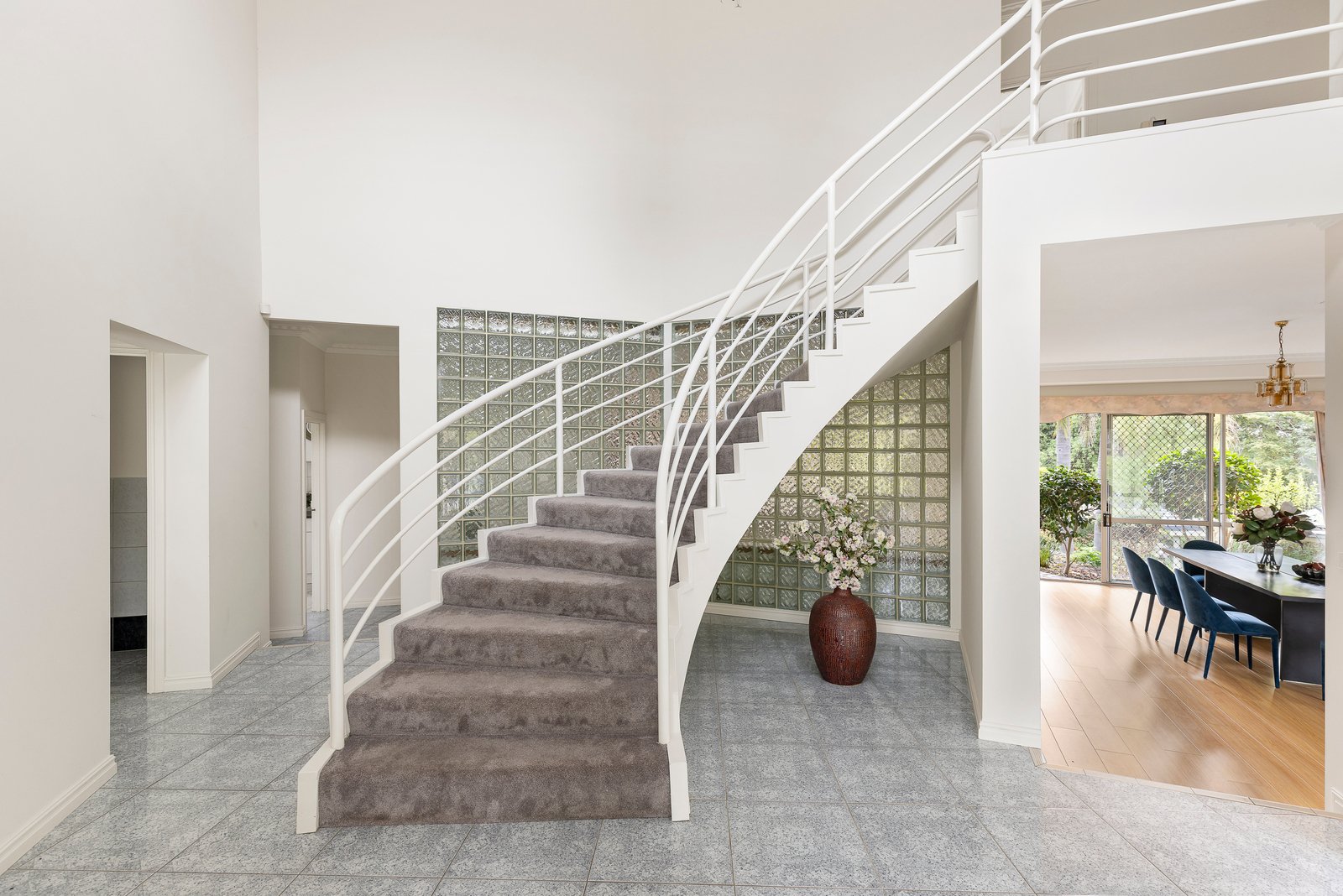 Gracing a magnificent garden allotment spanning over 4,000sqm approx. this luxurious custom built family double storey residence is set in a leafy and peaceful living environment towards the cul-de-sac end of Obriens Lane. A circular driveway and covered entrance introduces this superb contemporary home which offers loads of space and options for zoned family living and indoor/outdoor entertaining including a floodlit tennis court and two cabanas, one with a built-in gas barbeque.