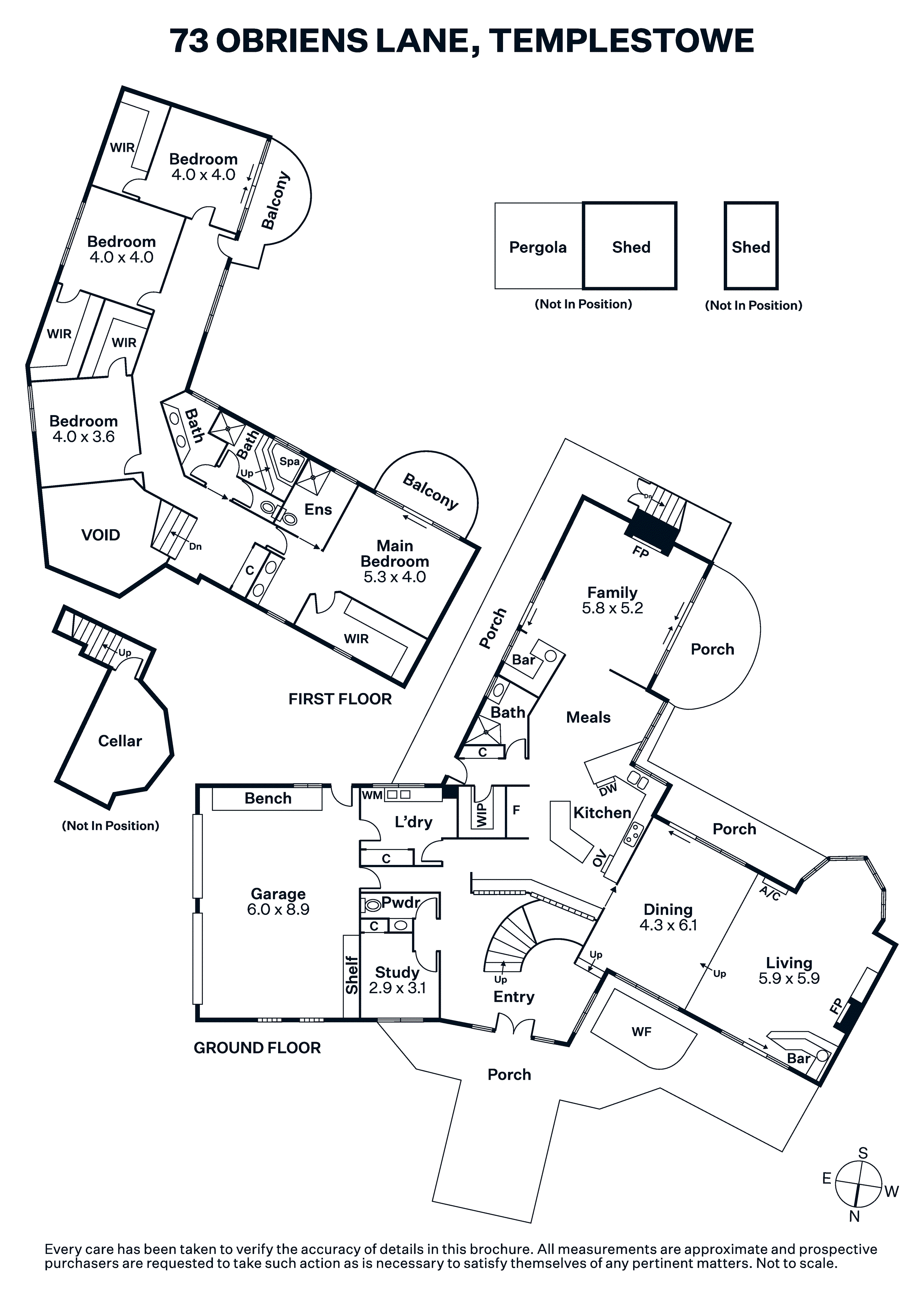 Step inside the tiled foyer with a soaring second level ceiling leading to a study/fifth bedroom and powder room on the left and to the right a vast formal sitting and dining room with a bar through to a well-appointed entertainers kitchen equipped with stone bench tops, a walk-in pantry, premium quality Euro appliances and dining area plus an adjacent laundry and a downstairs bathroom. A cosy family room with a second bar joins the main living area, opening to the outdoors. Complemented by two upstairs balconies and four upstairs bedrooms all with WIRs, including a generous main with a fully tiled ensuite and a fully tiled family bathroom with a spa bath. Other comprehensive appointments include ducted heating, cooling and vacuum, wood fireplaces, purpose-built wine cellar, sprinkler system, rainwater tanks, two storage sheds and a remote three car garage/storage with secure internal access and extensive off-street parking.