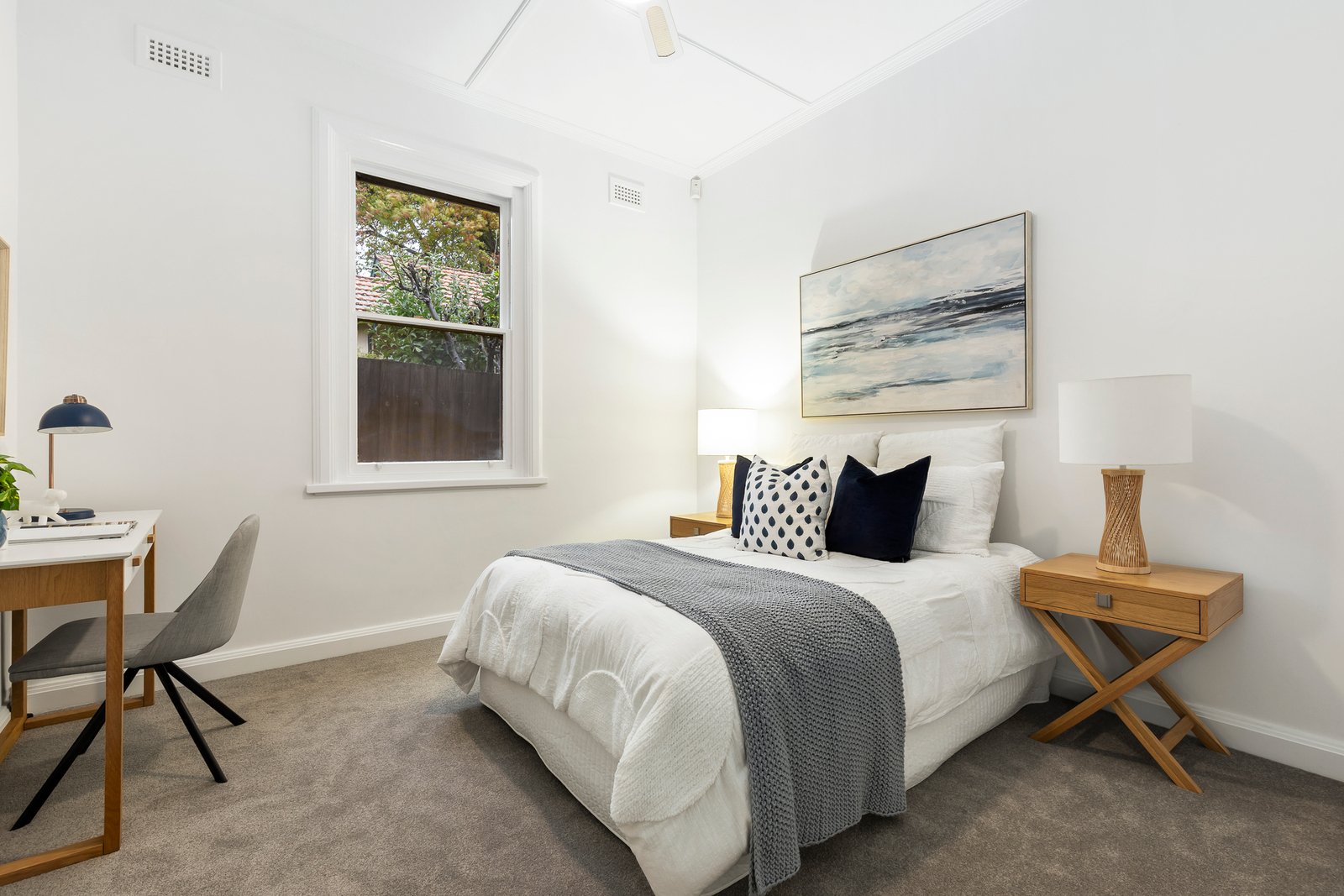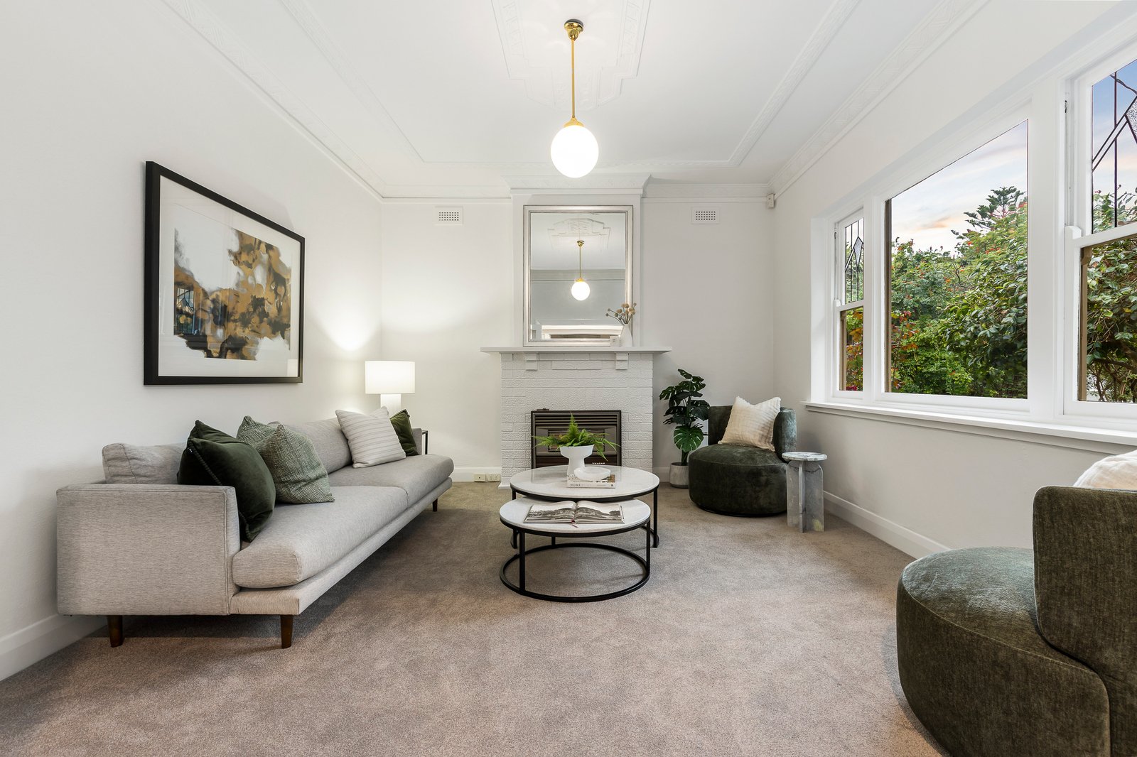 This picturesque mid-1930s rendered and feature brick Californian has been sympathetically renovated and extended to ensure the Art Deco period features blend harmoniously with the more contemporary internal aspects, creating a charming ambience enhanced by the generous living and entertaining spaces at the rear. The immaculate fresh white interior is contrasted with new pale grey carpets and showcases decorative ceilings and leadlight glass typical of its era.