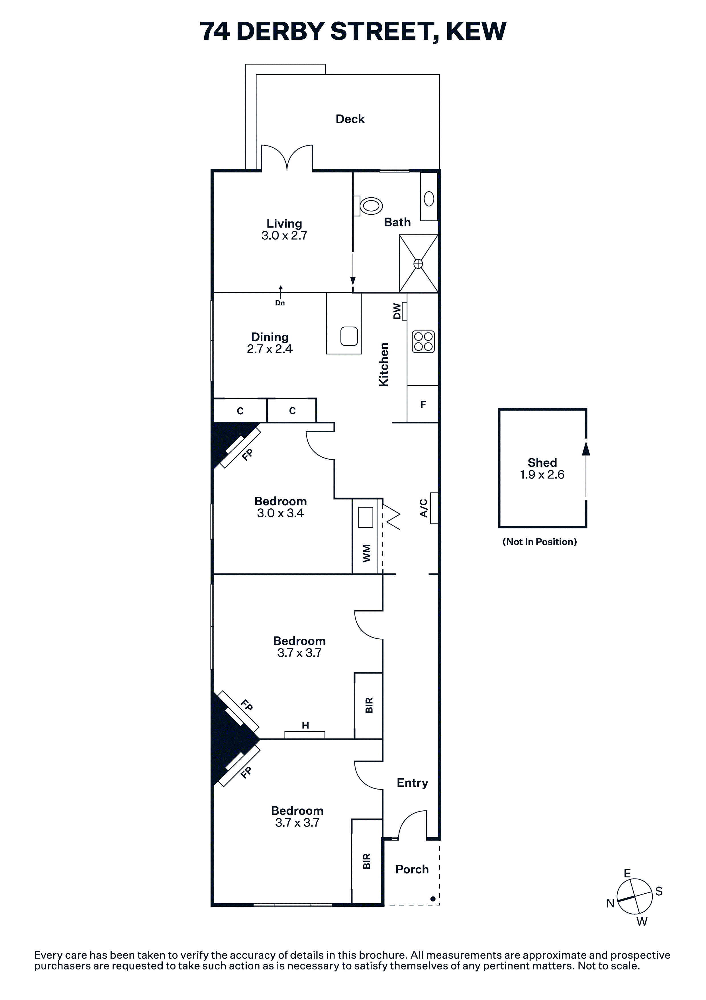 Presenting in excellent condition, it features a fresh white décor with a long, arched entrance hall with dark stained timber floors leading to three bedrooms, two with built-in robes, and a concealed laundry. Through to a stylish kitchen equipped with CaesarStone bench tops, and premium quality Euro stainless steel appliances with a dining area, a pristine adjacent bathroom and living room. Flowing to a deck overlooking a generous private rear garden ideal for relaxing with and entertaining family or friends. Other features include high quality fixtures and fittings, original OFPs, electric wall heaters plus overhead fans (front bedrooms), and garden storage.