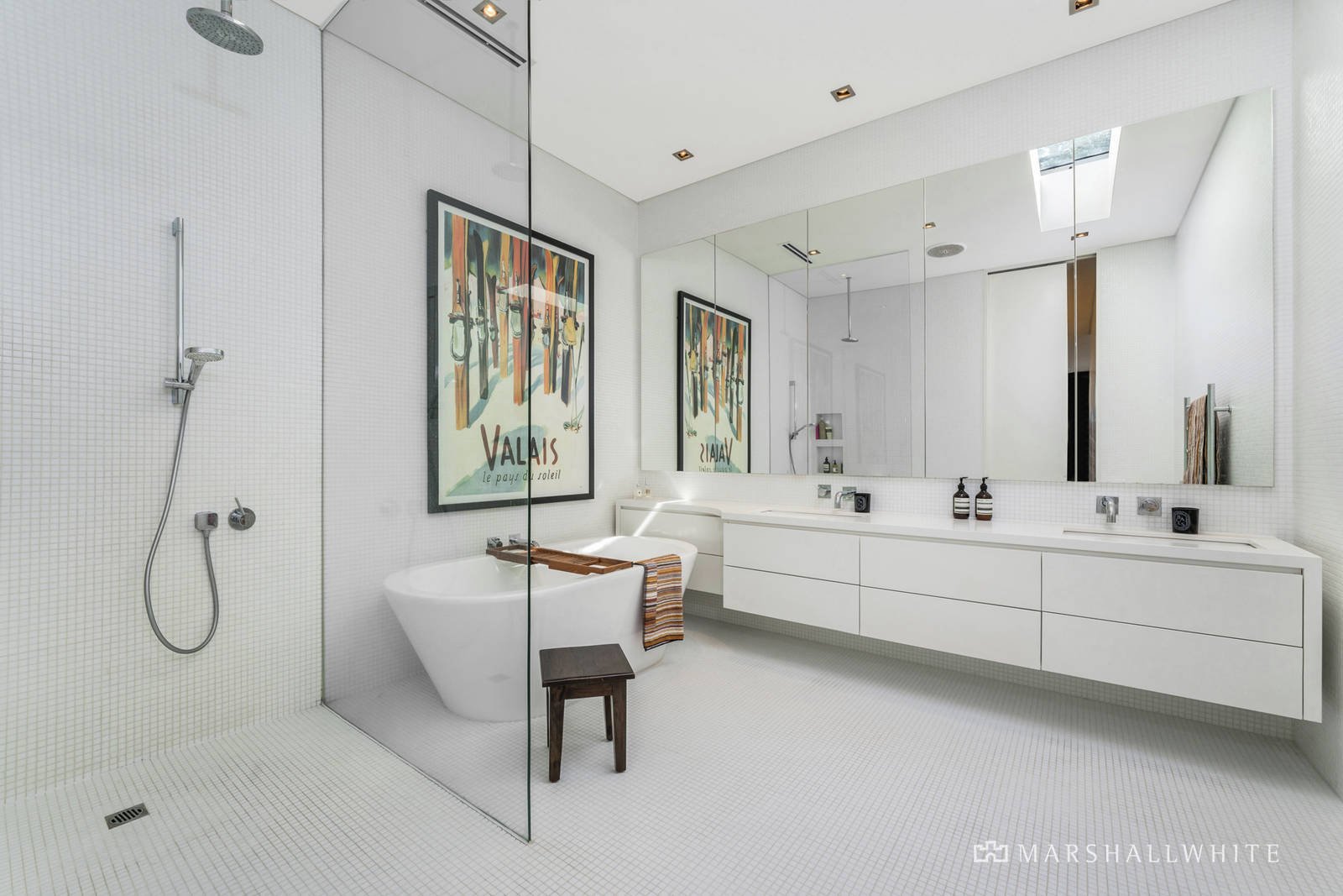 The welcoming entrance hall leads to a spacious study (or cosy sitting room if you prefer), designer European laundry with spacious storage and a streamlined Miele equipped kitchen featuring white stone benches, integrated Liebherr fridge/freezer and high-end electric hands free soft-closing cabinetry. The exceptionally generous living and dining room featuring a large open fireplace, seamlessly connects to a leafy BBQ terrace to the west and a sunny private garden at the rear of the home with a stunning mosaic tiled gas heated pool. The spacious master bedroom overlooks a glorious private Gardenia and English oak garden and features custom built in robes and a luxurious Italian glass mosaic tiled en-suite with freestanding bath, double vanities and ample storage. The master suite is conveniently situated on the ground level. Upstairs are three further double bedrooms. The second bedroom has a lavish en-suite and BIRs with two further bedrooms (BIR/WIR) sharing a bathroom.