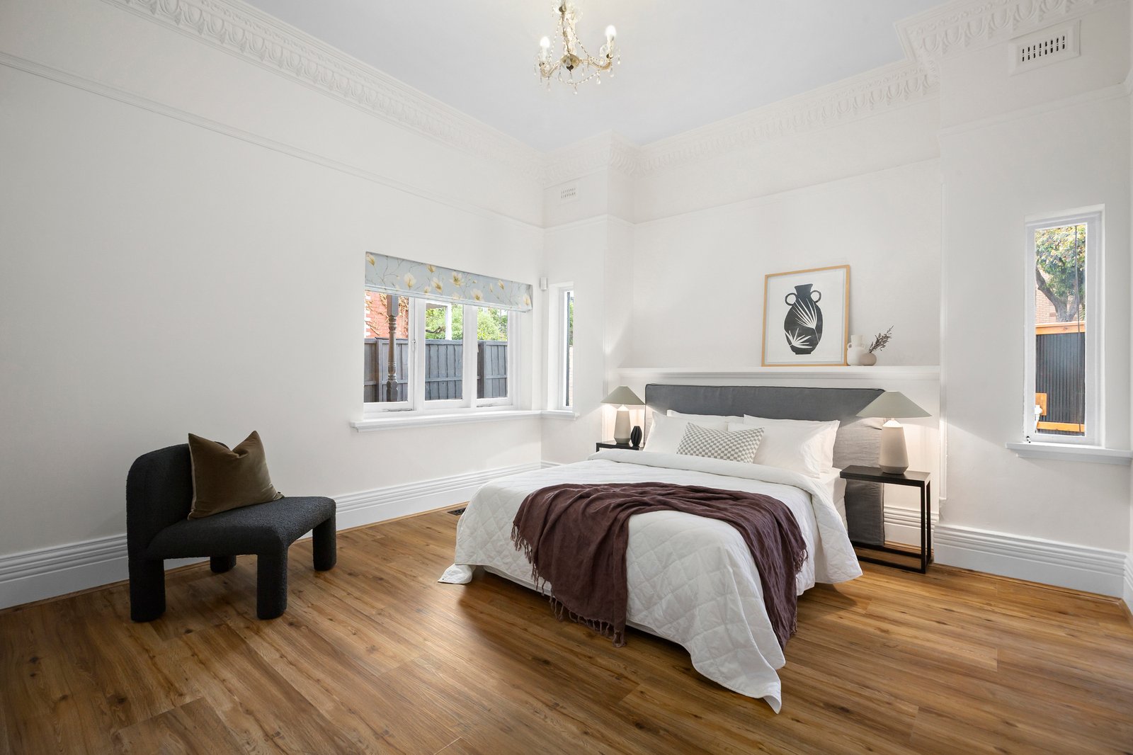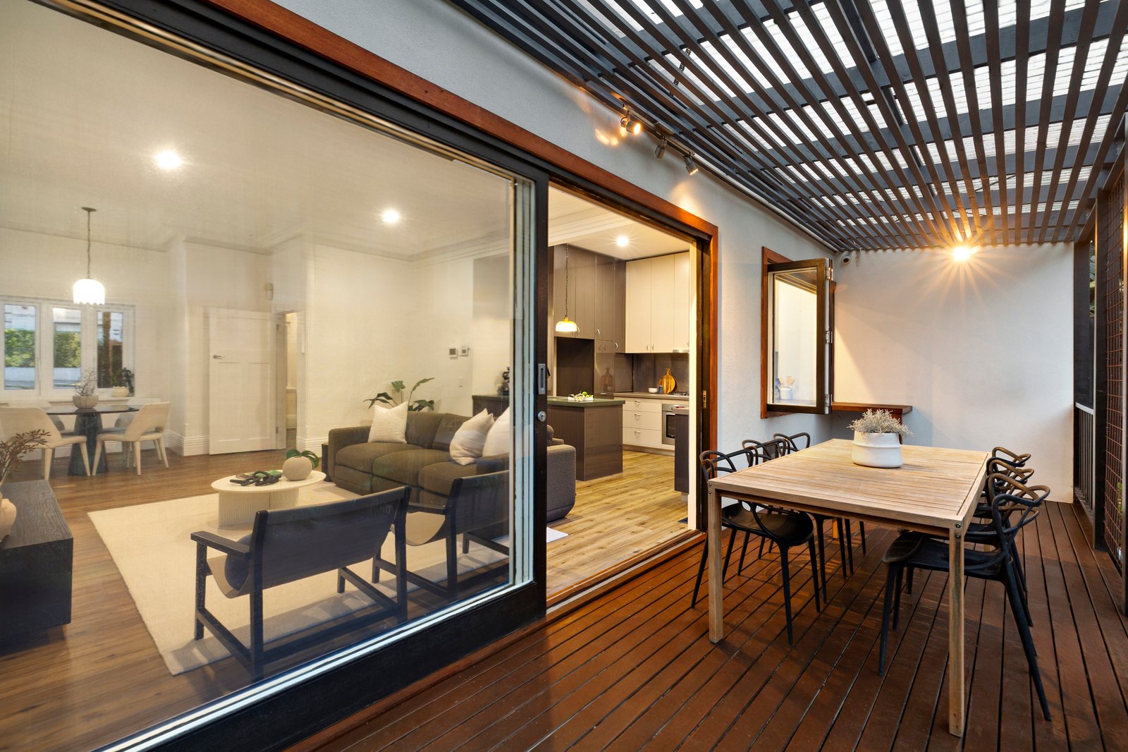 Original height and proportion give the layout an uplifting quality, flowing from the central corridor to a spacious living and dining domain that carries abundant light. The adjoining kitchen features European appliances, a concrete breakfast bench and bi-fold servery windows that open straight to the deck for relaxed outdoor meals. Large sliding doors extend the living space further, revealing a sheltered terrace and low-maintenance garden that wraps around and captures the sun from morning to late afternoon. Three expansive bedrooms accompany the refurbished bathroom and laundry with an additional powder room. An extensive attic offers potential to build higher (STCA).