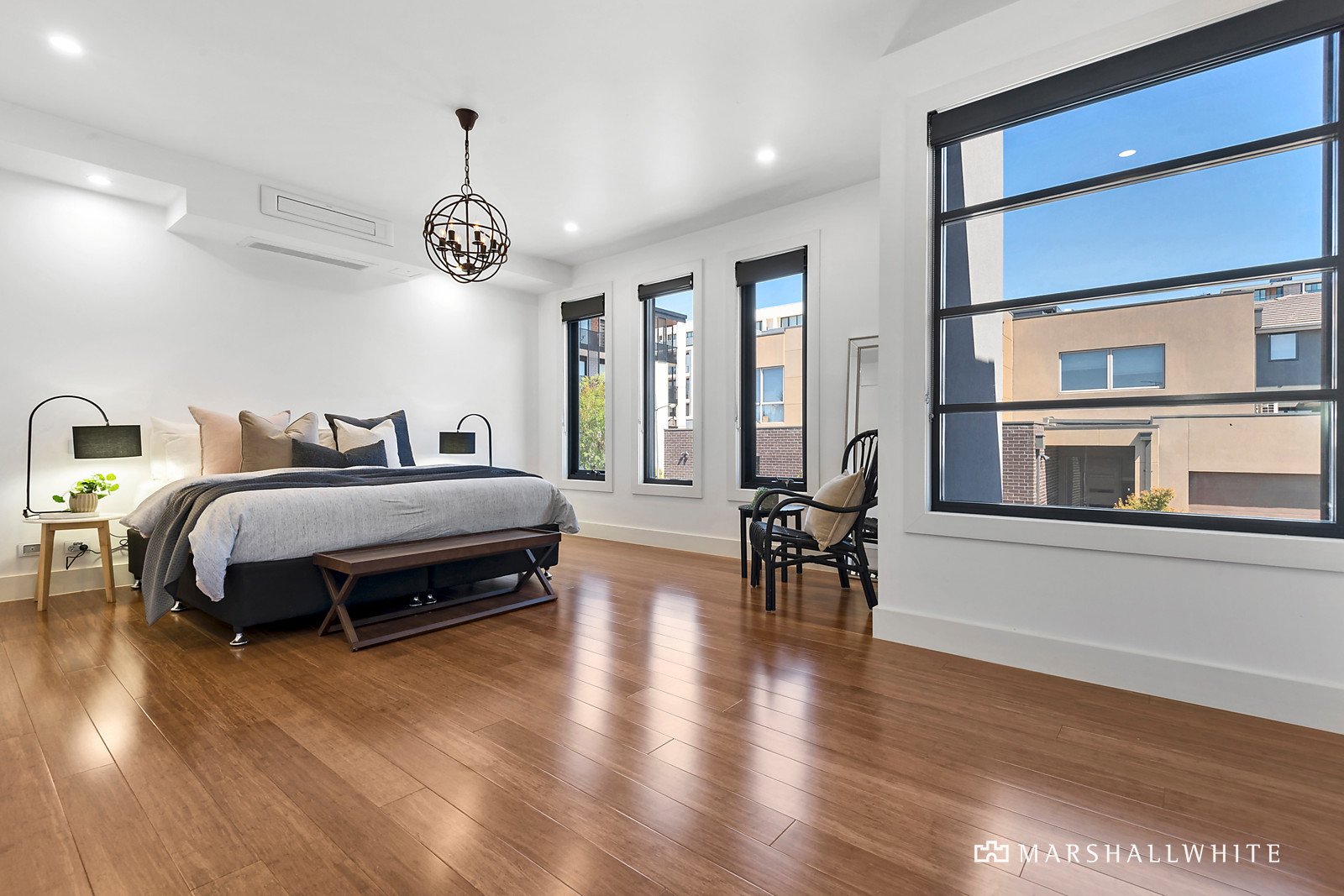Elegant features like polished concrete floors, oversized commercial-grade windows, built-in timber joinery, soaring ceilings and Corian benches make a striking impression. The finest fittings and fixtures, maintained to an as-new standard, run throughout every room.