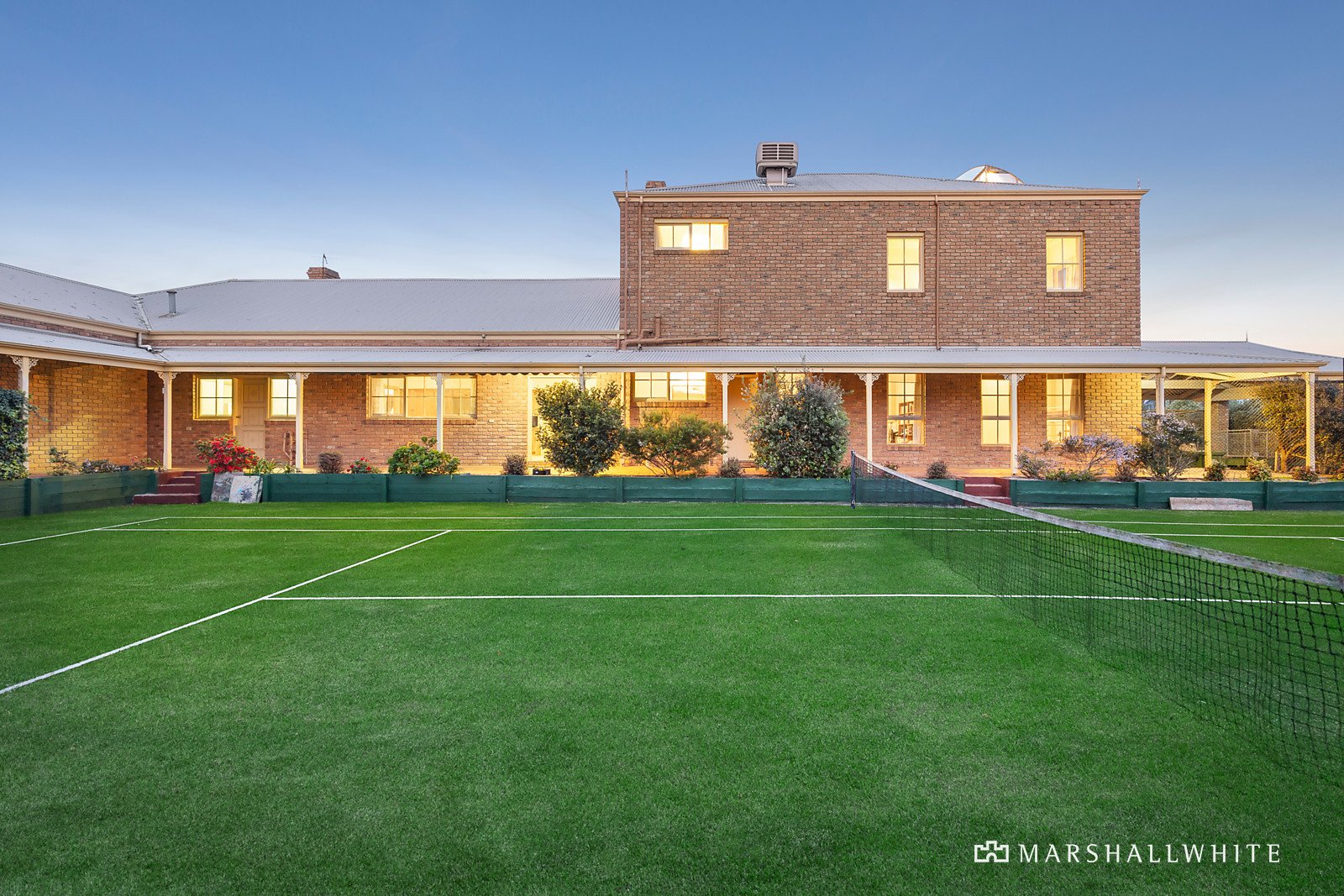 One of the biggest addresses ever offered in Beaumaris sits high on Bonanza Hill, with spectacular bay views and a substantial home at its heart. It's a rare find in a brilliant beachside neighborhood, with 3,050sqm (approx.) of land, an immaculate five-bedroom, builder's own home, north-south tennis court, pool and spa next to a barbecue kitchen, and rooftop viewing platform. Panoramic water views and sandy beaches stretch out before you, the Dandenong Ranges and the You Yangs are on show, and Monash University and Mentone's school and church towers are part of the far-reaching vistas. Offered for the first time in nearly 50 years, this is an exceptional address with a 60m (approx.) frontage and huge potential (STCA). A winding driveway with remote-control gates makes its way up to one of the area's highest points, where seclusion and serenity await. The house features living zones and bedrooms on two levels, a big upstairs games room with a wet bar, a double-oven kitchen, and three bathrooms. You can see the bay and established garden from many rooms, there's a six-car garage, and undercover boat and caravan parking. The cared-for and comfortably appointed interior includes a spacious entry foyer, fireplaces and gas ducted heating throughout, air conditioners, and generous storage. This first-class address is an easy walk to the beach, shops and train stations, Illaroo Reserve is 100 metres (approx.) away, and families will appreciate being in both the Beaumaris and Mentone Girls' Secondary College zones.