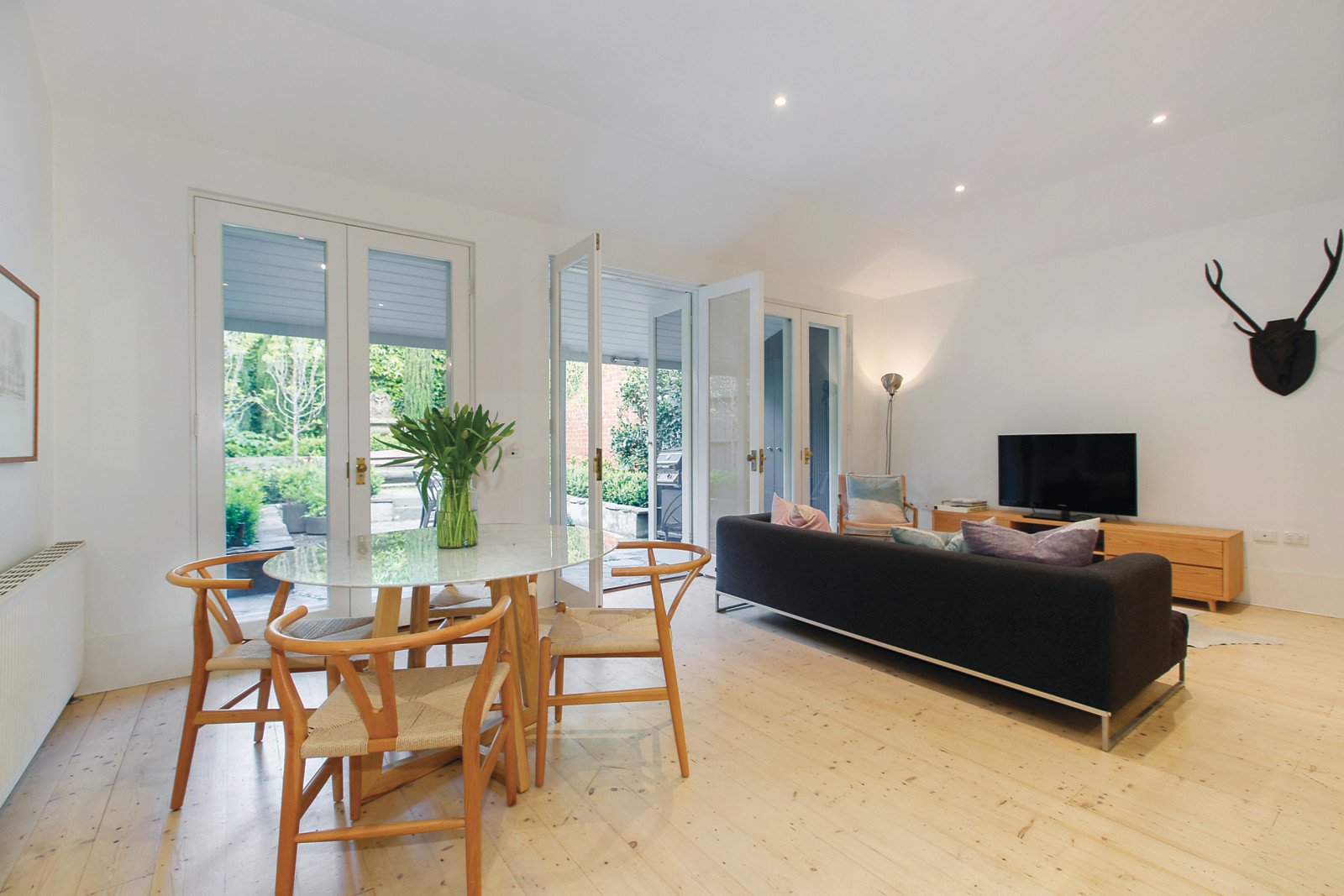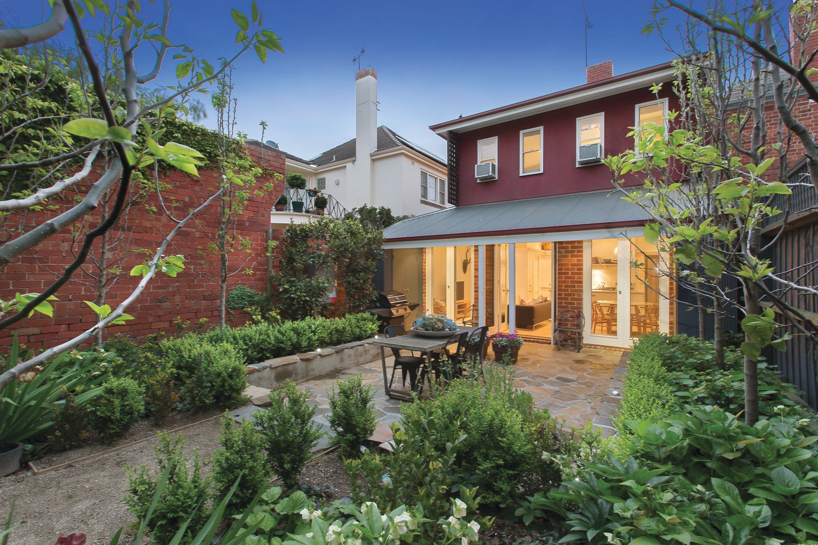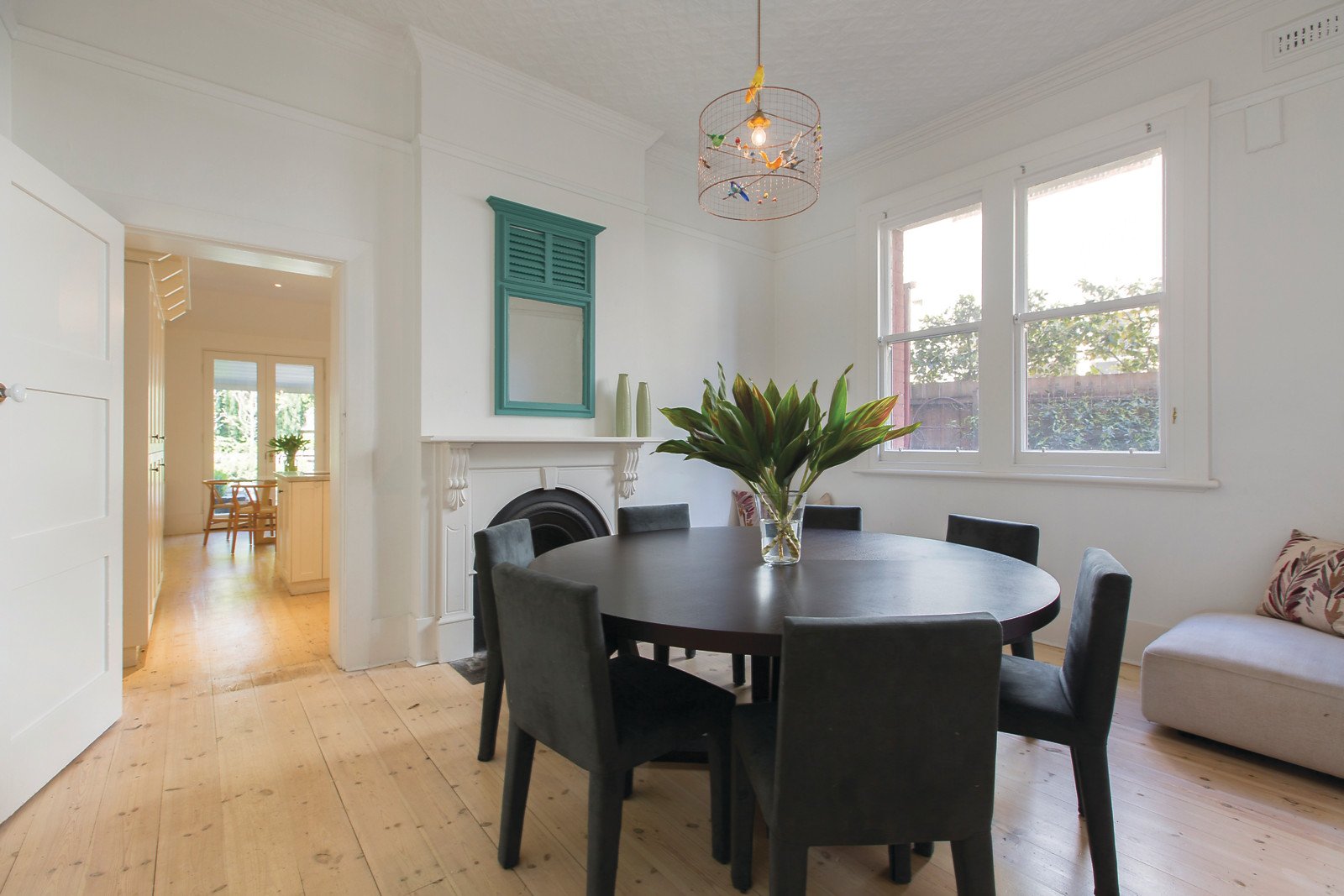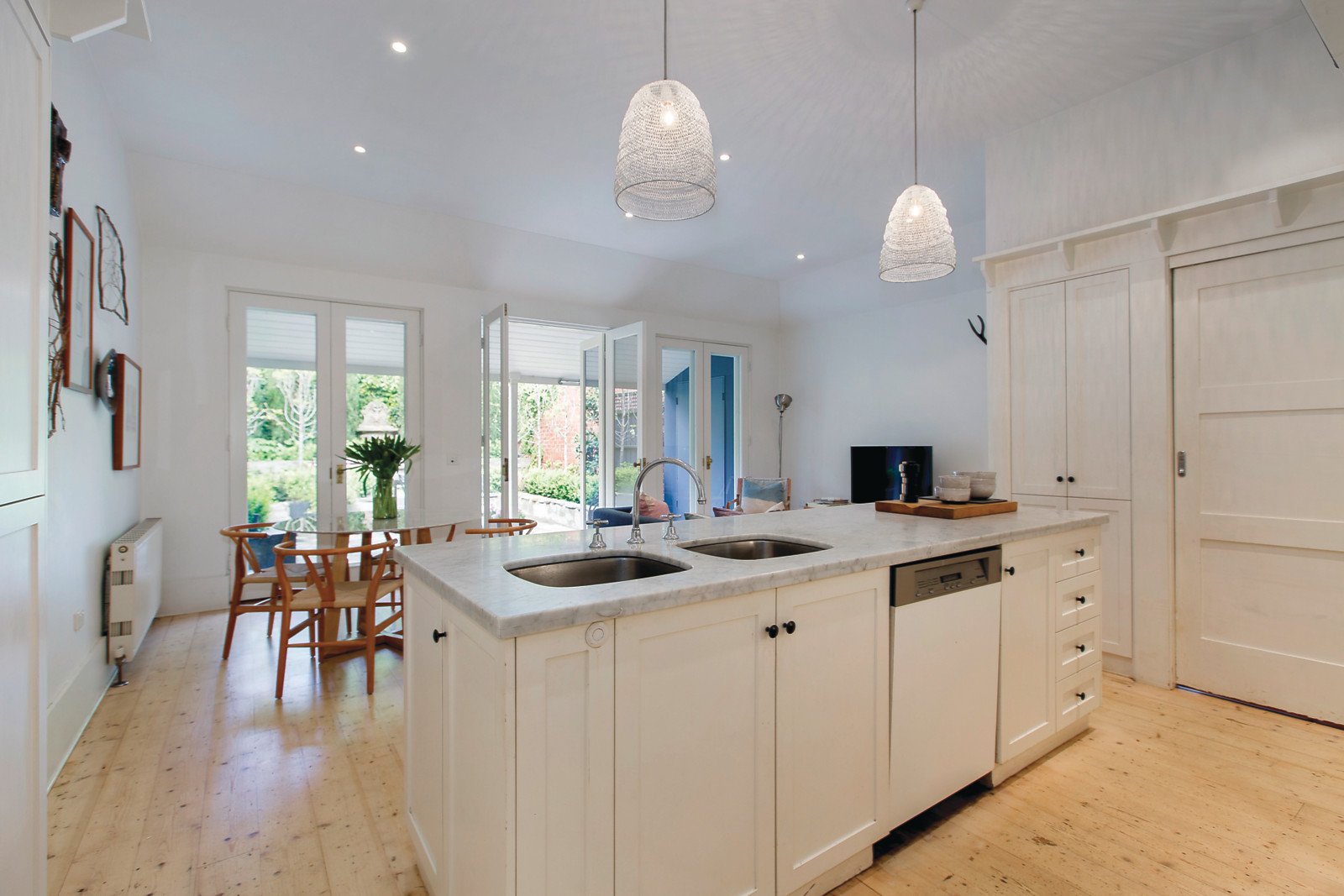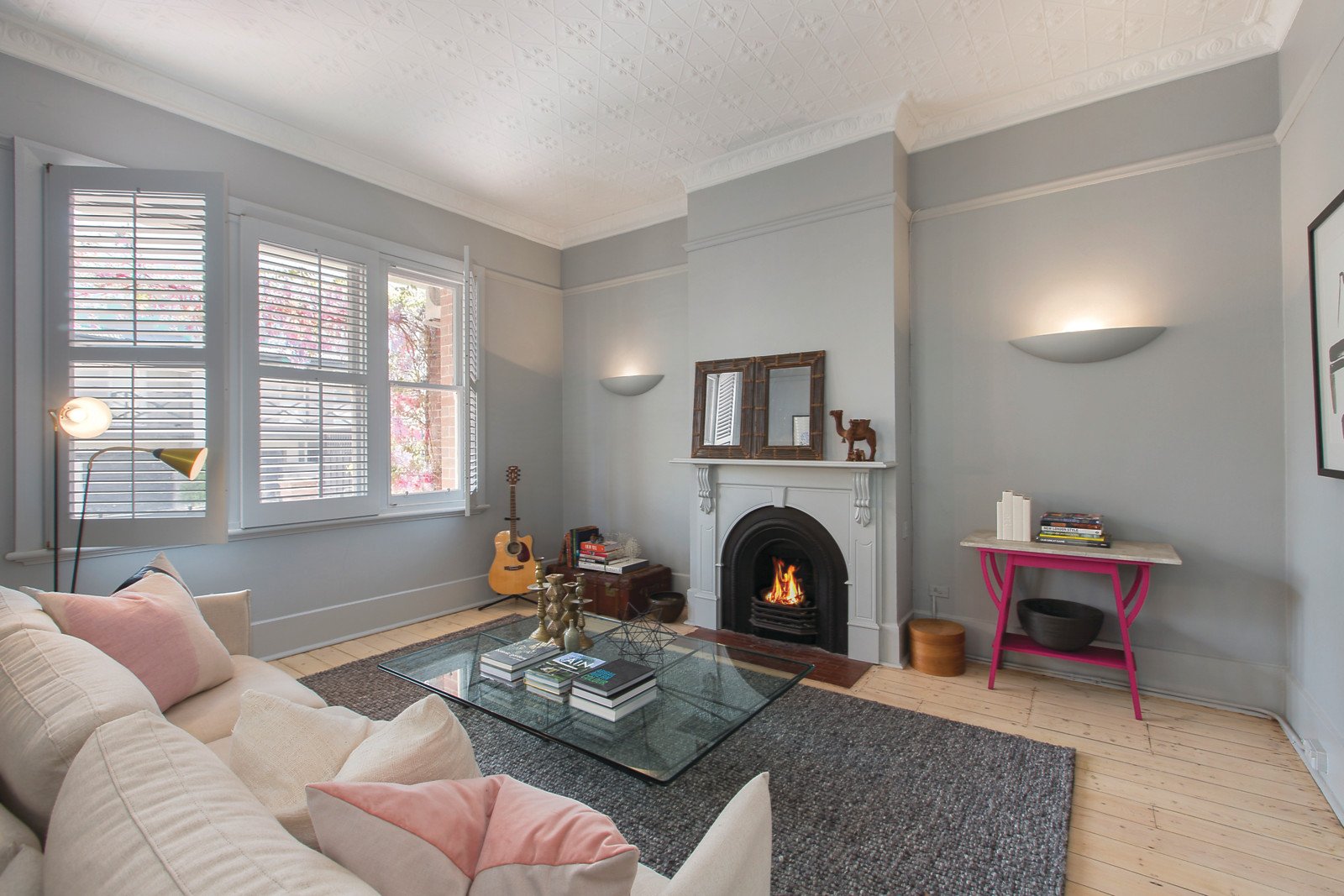 Limed Baltic pine floors flow through the wide entrance hall to a beautiful sitting room and glorious dining room both boasting magnificent pressed metal ceilings and open fireplaces. The premium kitchen appointed with marble benches and generous living and meals area open through a series of French doors to a picturesque northeast private garden oasis. The spacious main bedroom with open fireplace, pressed metal ceiling, built in robe and stylish bathroom has a study alcove commanding spectacular city views. There are two additional bedrooms and a second chic bathroom.