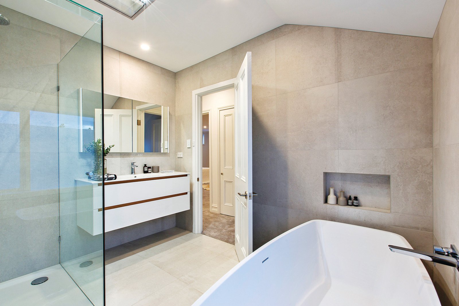 A wonderful sense of light and space is the appealing first impression upon entering. Timber floors flow through the wide central hall to the gorgeous sitting room and inviting formal dining room with wine cupboard. The premium gourmet kitchen is superbly appointed with Siemens appliances, stone benches, wine fridge, walk-in pantry and an integrated Sub Zero fridge/freezer. Beneath ultra high ceilings with clerestory windows, the generous open plan living and dining area with gas fireplace opens to a leafy, private landscaped garden. The two downstairs double bedrooms, study and stunning bathroom with freestanding bath are matched by an opulently scaled main bedroom with walk in robe, designer bathroom and 4th bedroom.
