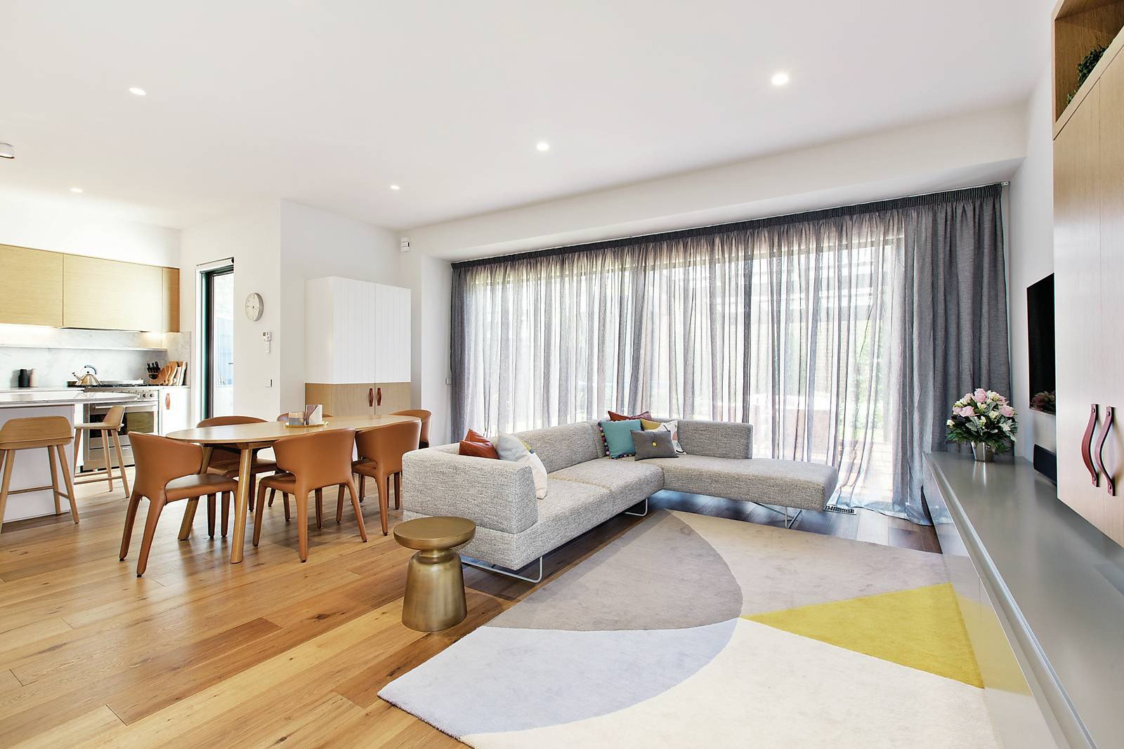 Framed by a picturesque garden, the wide entrance hall boasting timber floors, leadlight windows and ornate ceilings introduces a captivating formal sitting room with gas fireplace and customized cabinets. A cutting edge design featuring seductive curves and a palette of marble, oak and leather defines the generous open plan living and dining room with bar and sublime gourmet kitchen appointed with marble benches and Smeg appliances. Full height glass sliders open to the glorious private landscaped north garden with fabulous alfresco entertaining deck. A gorgeous main bedroom with stunning en-suite and walk in robe enjoys downstairs serenity while a children's zone upstairs comprises two additional double bedrooms with built in robes and a designer family bathroom.