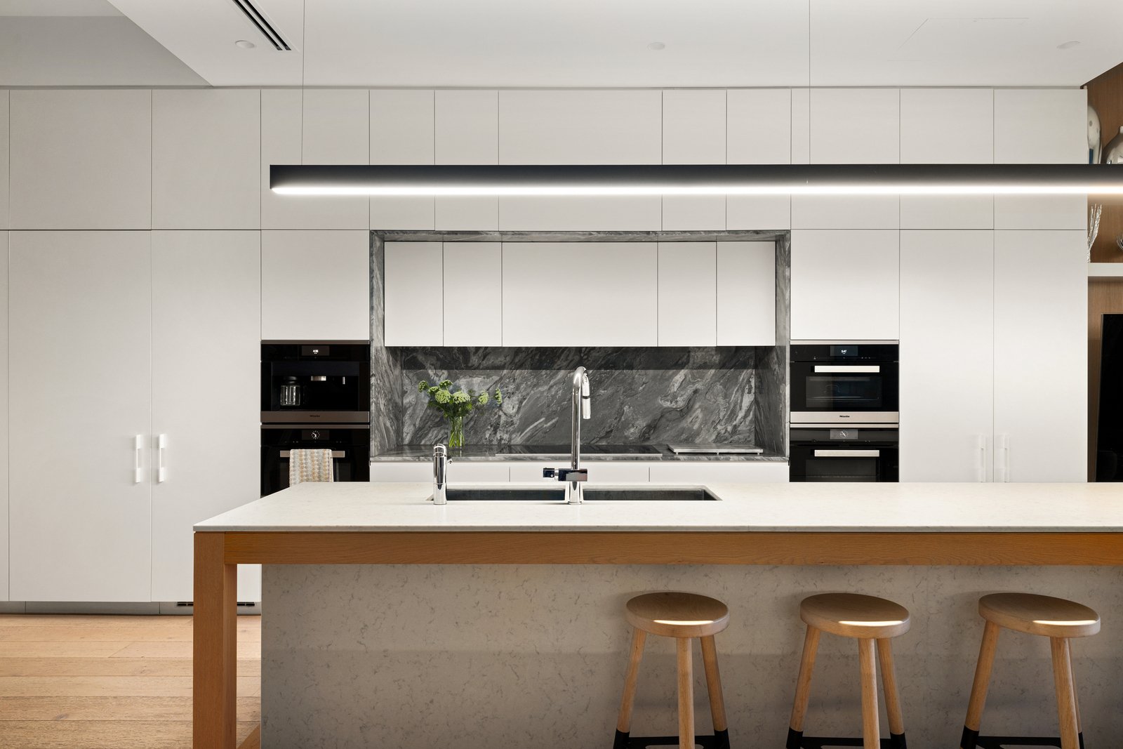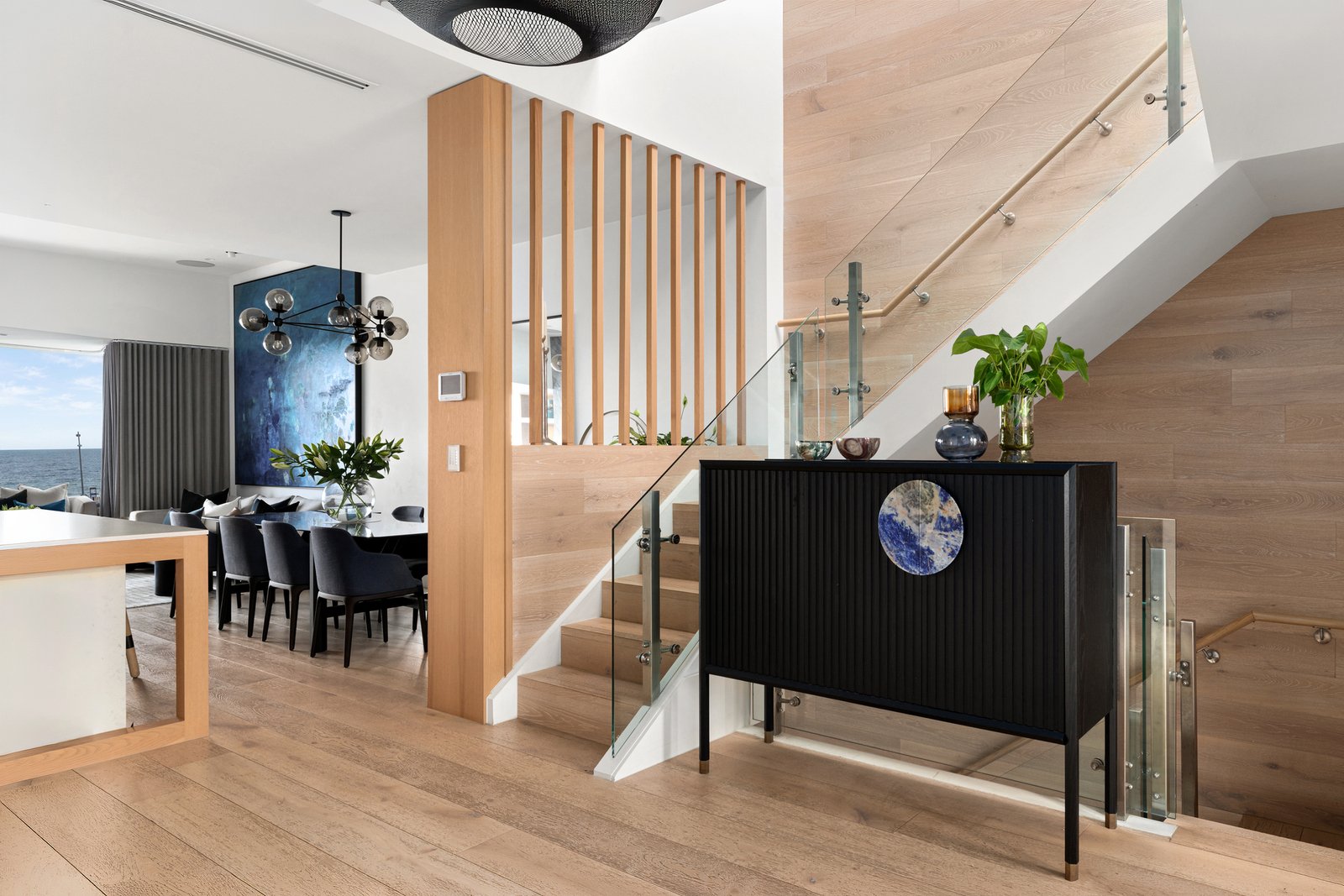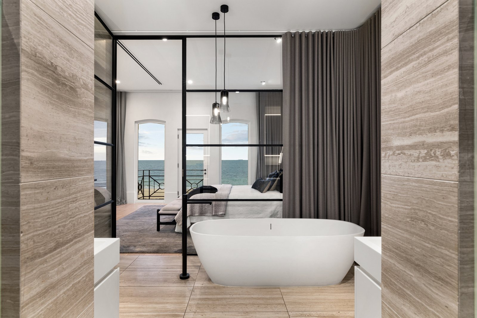 A landmark residence occupying one of Albert Park's most prominent waterfront positions, this extraordinary residence has been reimagined by interior designer Christopher Elliott with an uncompromising emphasis on light, outlook and luxury. Entirely discreet from the street yet peerless in every sense, the home offers secure garaging accessed via a right-of-way, connecting to a glass lift that ascends through the home's levels and frames uninterrupted panoramic bay views on every floor.