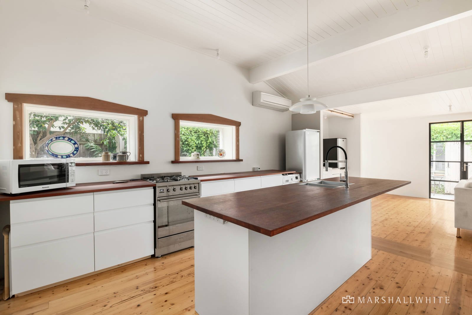 Features include central gas heating (zonable), plus split system air-conditioning, heat-pump hot water, and solar panel system which keeps the power bills negligible. There is a remote operated roller-door at the front that provides access to three garage/workshop/utility spaces, with the potential for one of the areas (with a separate entrance and plumbing) to create a self-contained bungalow. The wonderful, established gardens both at the front and rear have been designed to create a bio-diverse habitat for local birdlife, and include a mix of native and ornamental trees.