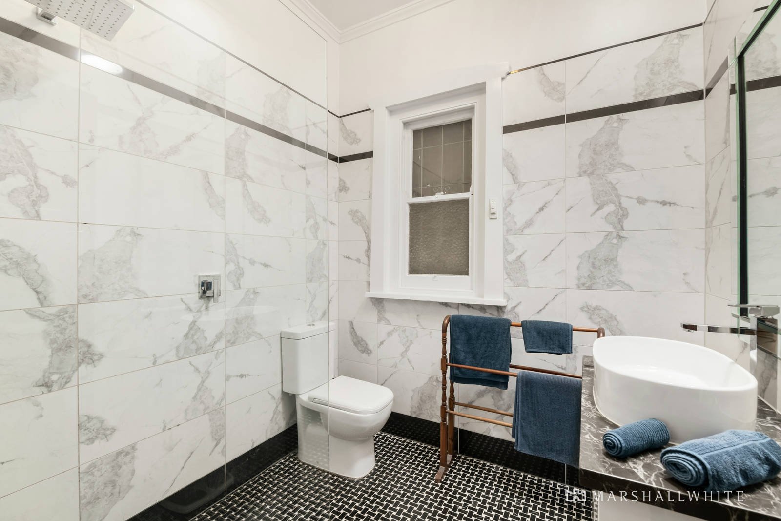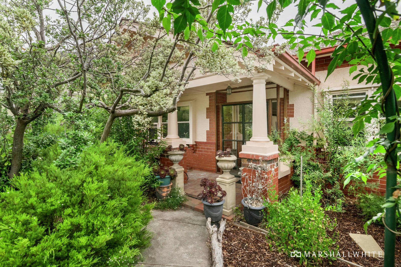 Outstanding timber and plasterwork features adorn the spacious original front rooms and include intricate ceiling roses and cornices, 'arts & crafts' style door architraves, window box seats, dado panels and 'art deco' fireplace surrounds. Well considered renovations include the revealing and polishing of original Baltic pine floorboards, and the opening up of a former bedroom to create a light and spacious flow-through study-space with a direct line of vision from the entrance to the delightful rear garden, where a vine-draped pergola shields the alfresco dining area patio. Also recently renovated is the luxe marble bathroom, custom kitchen with merbau topped benches, including a central island, plus Smeg free-standing oven, and the open plan family living area with glass doors opening out to the rear garden.