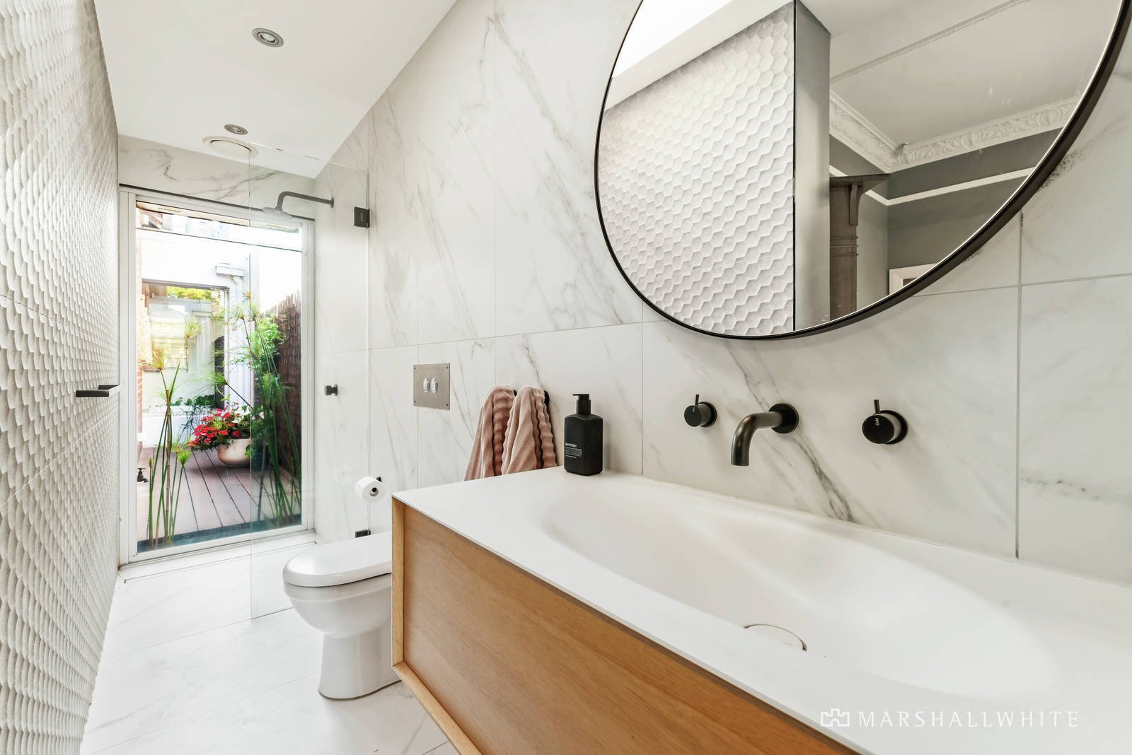 Located in a quiet tree lined street, with readily available permit parking and walking distance to Commercial Rd shops and cafes, the market, Chapel and Greville St restaurants, Prahran station, Fawkner Park, trams and schools, it includes an alarm, video intercom, ducted heating/cooling, underfloor heating in the bathrooms, Euro-laundry, RC/air-conditioner, remote blinds, irrigation and on title pedestrian access to the side lane.