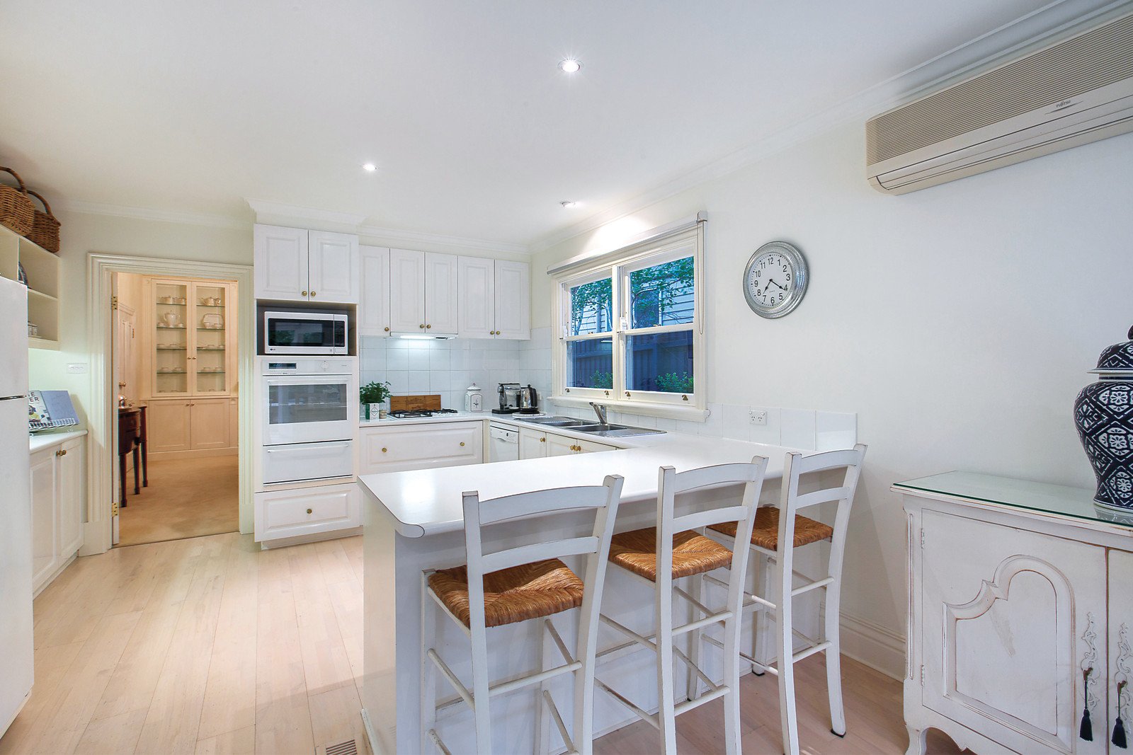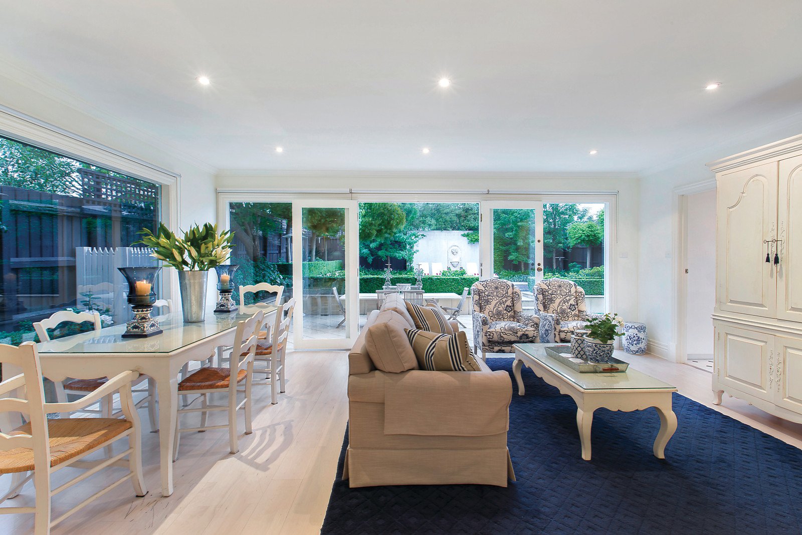 Framed by an absolutely beautiful garden, the inviting interior features high ceilings in the elegant sitting and formal dining rooms both with gas fireplaces. Limed timber floors add to the light-filled ambience in the family living and dining room and the well-appointed kitchen. Living extends out to the stunning entirely private northeast landscaped garden with solar heated pool and expansive entertaining terrace. Three double bedrooms with built in robes and a bathroom are downstairs while a 4th bedroom with built in robe, bathroom and sound proofed media room or 5th bedroom are upstairs.