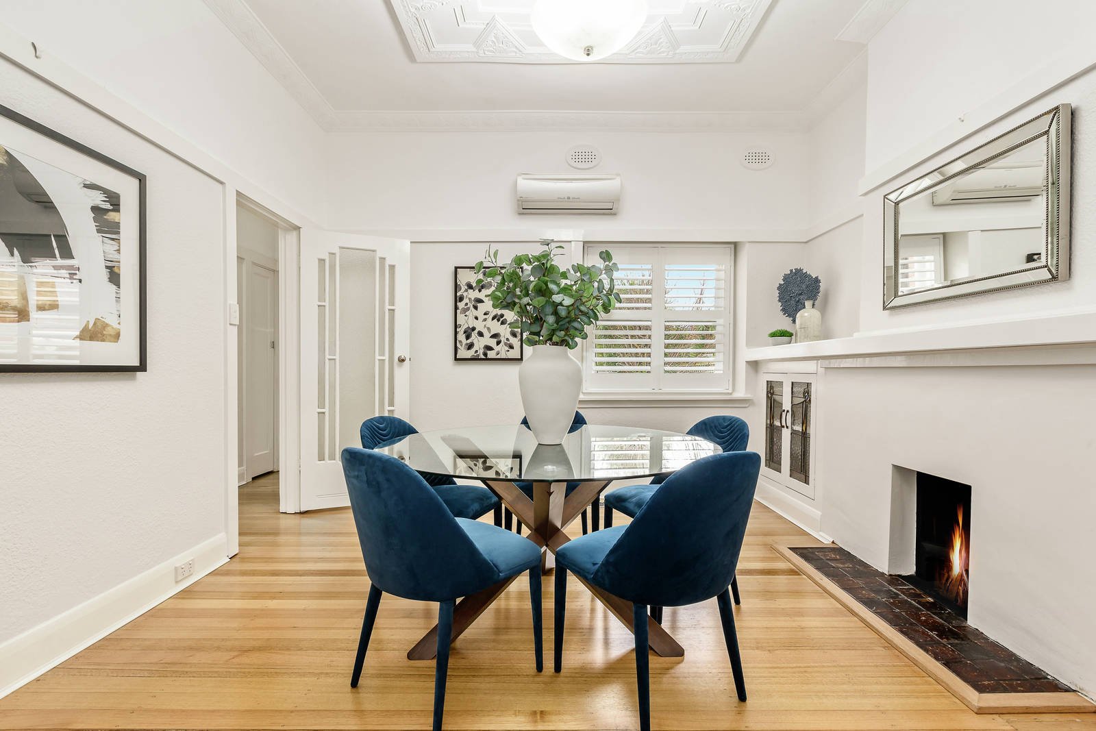 Ornate Deco ceilings, original glass doors, leadlight windows and timber floors convey the wonderful period charm through the wide entrance hall, generous living room with an open fire and the adjacent dining room also with a fireplace. The gourmet kitchen is superbly appointed with Dolomite marble benches and Smeg/Asko appliances along with an abundance of cupboards. The two gorgeous double bedrooms with built in robes are complemented by a stylish designer bathroom tiled with Dolomite marble. In the private northwest garden, there is a garage/storeroom or potential home office.