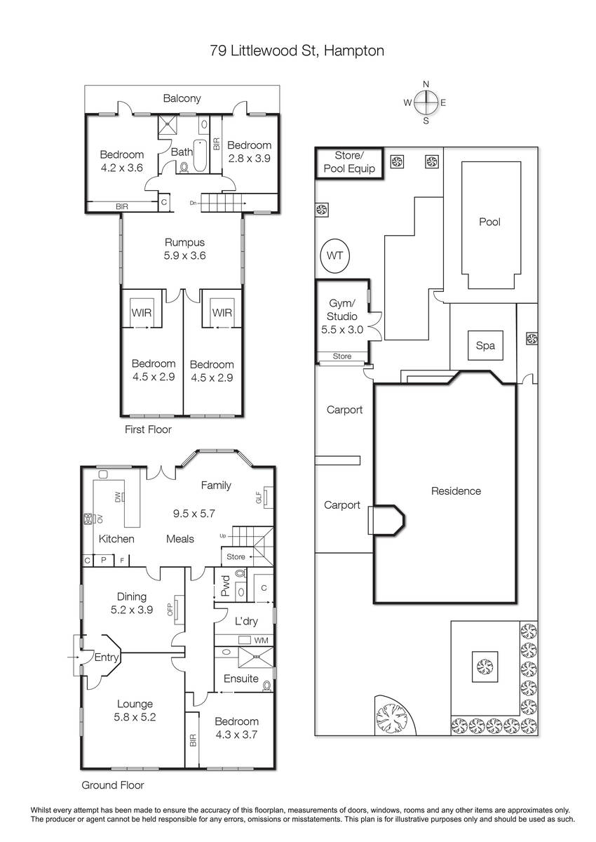 One of Littlewood's Street's first homes is now bigger and better than ever with renovated quality, poolside outdoor spaciousness, and family-friendly design. "Myrtleford" dates back to 1929, when bathing boxes dotted Hampton beach and market gardens were making way for elegant new homes. Today it's a five-bedroom retreat with four living and dining zones over two levels, a ground-floor main bedroom with a barn-doored ensuite, and a separate gym/home office/poolside cabana in the north-facing garden. Precision craftsmanship enhances every room, including the kitchen with Shaker-style cabinetry, a 90-centimetre oven and quartz-stone benches, lounge and dining rooms with original leadlight and plantation shutters, and a family room with a gas fireplace and garden views. This has evolved into a wonderful home to raise a family, moments from Hampton and St Mary's Primary Schools, shops, cafes and public transport. Move in and love having a pool and separate heated spa, space to relax outdoors, a landscaped front garden with a soaring oak tree as its centerpiece, and plenty of onsite parking. The perfect combination of a feature-rich interior, timeless elegance, and a sought-after location.