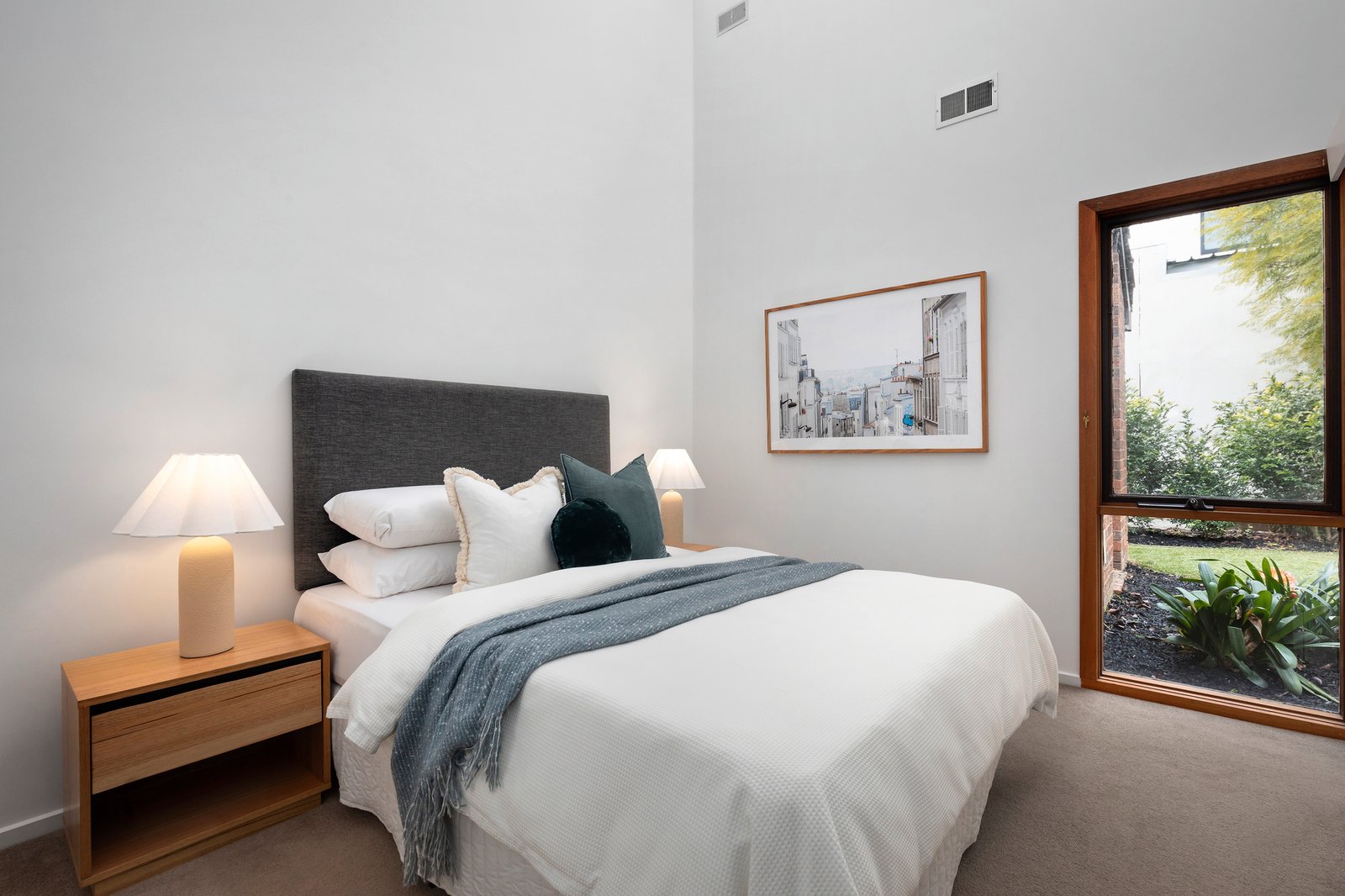 Privately tucked away at the rear in one of Brighton’s most esteemed beachside neighbourhoods, this architecturally rich circa-1980s single-level three-bedroom, two-bathroom brick residence will captivate with its north-facing living spaces, family-friendly layout, and low maintenance wrap-around private garden setting.