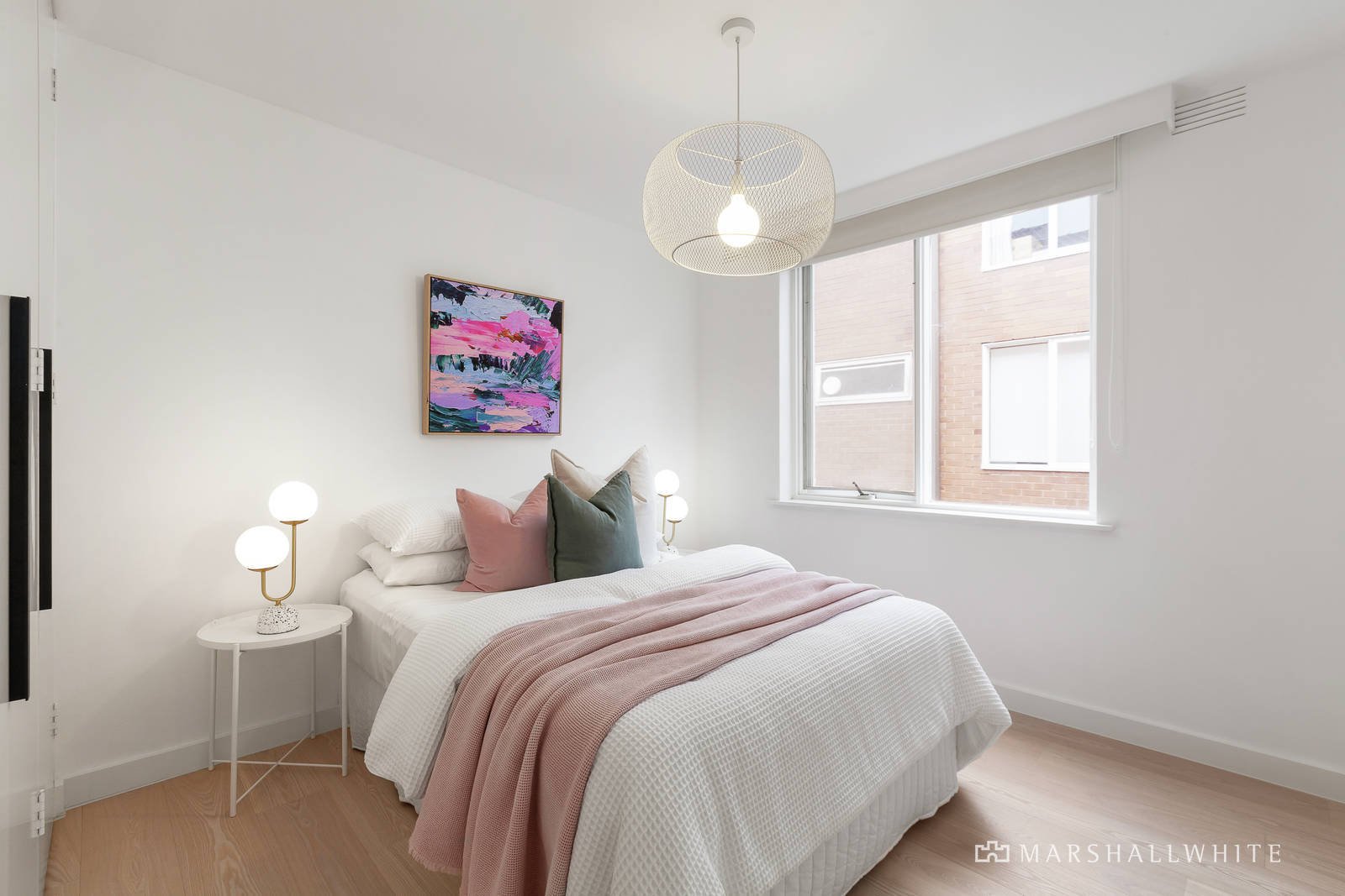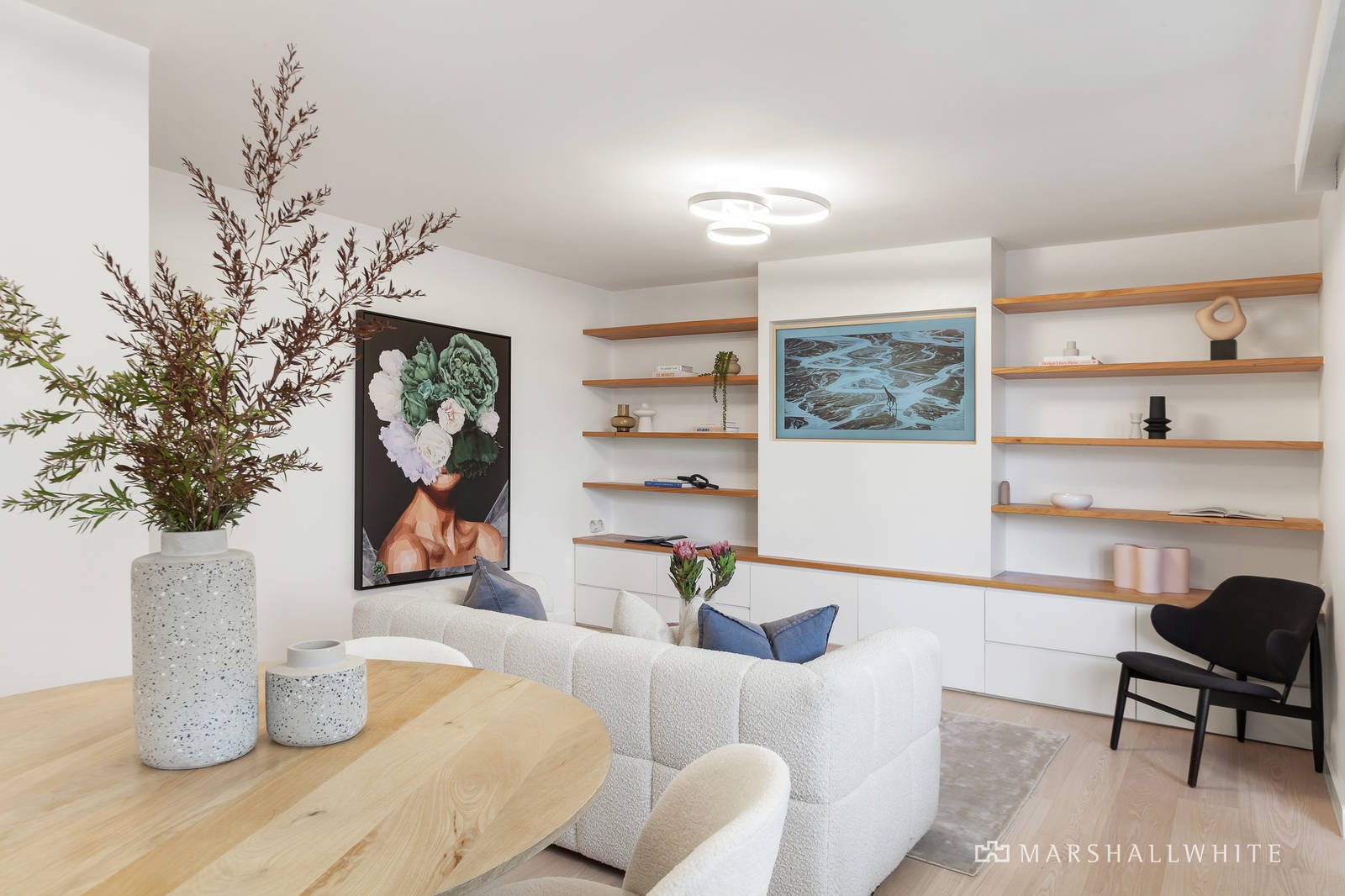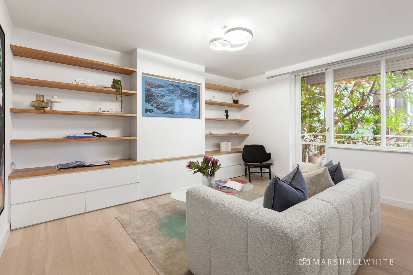 Set in a boutique 1960's garden complex in South Yarra's Domain precinct, this bespoke apartment has been fully renovated with designer flair to convey a low-maintenance living environment of sublime luxury. Showcasing an impeccable transformation to create unparalleled style, every detail has been carefully considered, from the high-quality finishes to the thoughtful layout, resulting in a residence that exudes a contemporary and chic ambiance. Appointed with designer finishes, underscored by European Ash timber floors and freshly painted throughout, the open-plan living/dining area featuring custom joinery and leafy outlooks is complemented by a striking stone-topped kitchen flaunting, Miele appliances (integrated fridge/freezer and semi-integrated dishwasher), double sink and servery opening. 2 comfortable bedrooms are fitted with BIRs and underfloor heating and share a luxe fully-tiled bathroom finished with large shower featuring both rain head and handheld shower head, custom marble vanity and corner freestanding bath, while split system heating/AC and covered car space add further allure to owner-occupiers and investors. Positioned in a leafy cul-de-sac surrounded by parklands, and moments to the Yarra River Trails, limitless dining and entertainment options, tram, bus and South Yarra station.