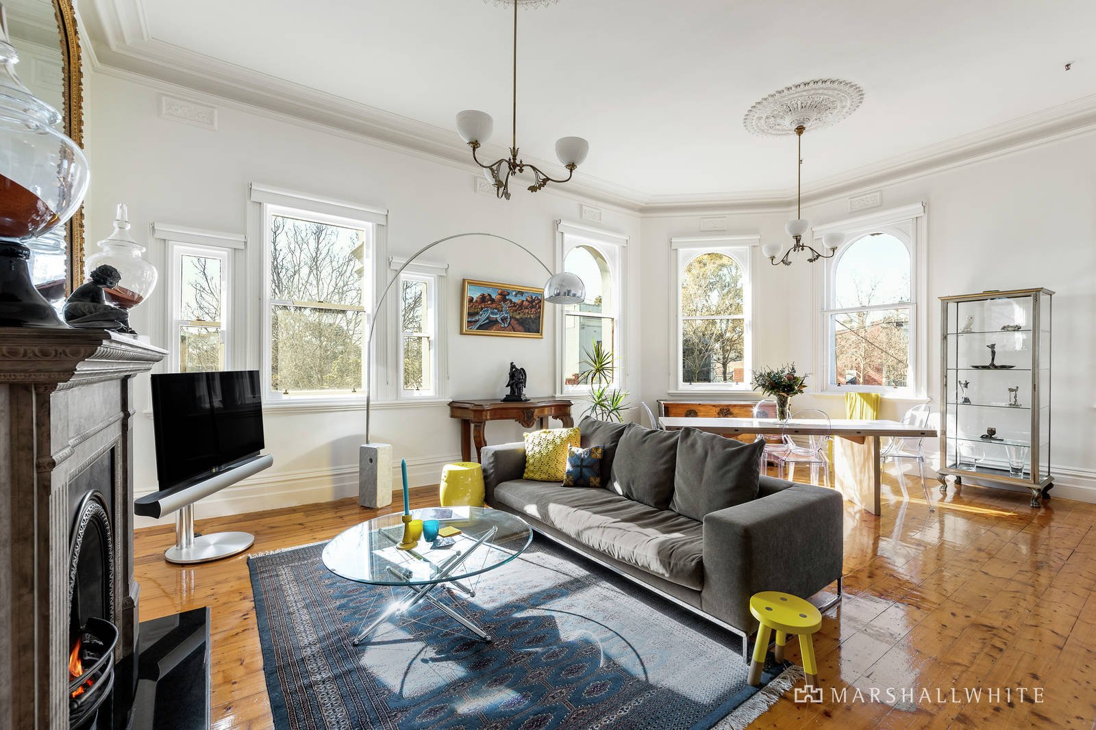 Step inside the black and white tiled entrance foyer with its tranquil fountain and experience the immediate sense of past grandeur which precedes this superb apartment. Showcasing classic Victorian elegance and attributes including arched windows, high ceilings with roses, cornices and open fireplaces combined with immaculate design, presentation and the spacious proportions typical of its era. Situated on the north-eastern corner of the building the interior and arched balconies are flooded with natural light and winter sunshine. With the accommodation featuring three bedrooms, or two plus a study, two luxurious fully-tiled bathrooms, concealed laundry plus a beautifully appointed kitchen equipped with Dekton stone bench-tops, prestige Miele appliances, Franke sink and wide timber flooring; leading to an expansive living and dining room with ample space to entertain. Other features and appointments include video intercom entry, high end imported European fixtures and fittings, Magnetite double glazing, R/C air conditioner (living), ample storage including attic plus an auto gate and one car space on title.